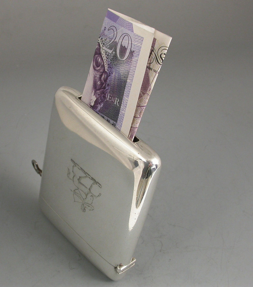 An unusual George V silver Secret Ballot Box, made in the form of a large rectangular card case but with spring loaded cover opened with a lock and separate key, the opposite end with s spring loaded flap to allow the insertion of a card or a vote.