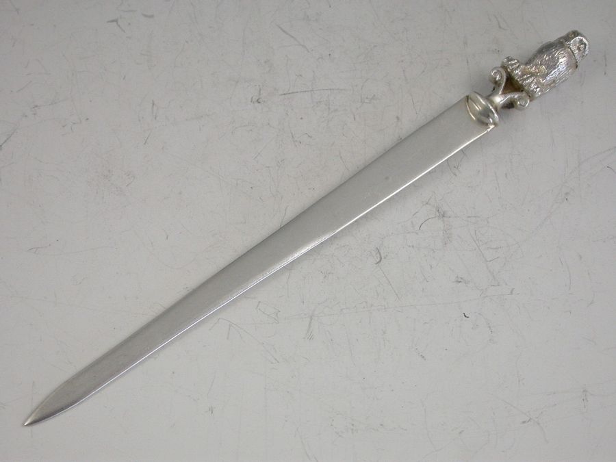 A good 20th century silver Paper Knife, the terminal formed as a cast owl perched on a pedestal.