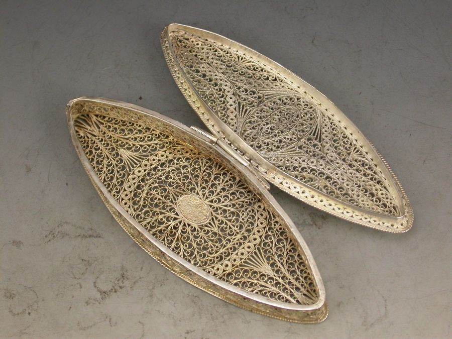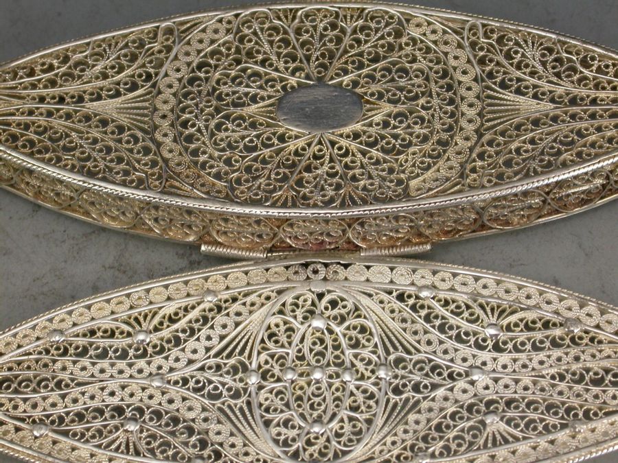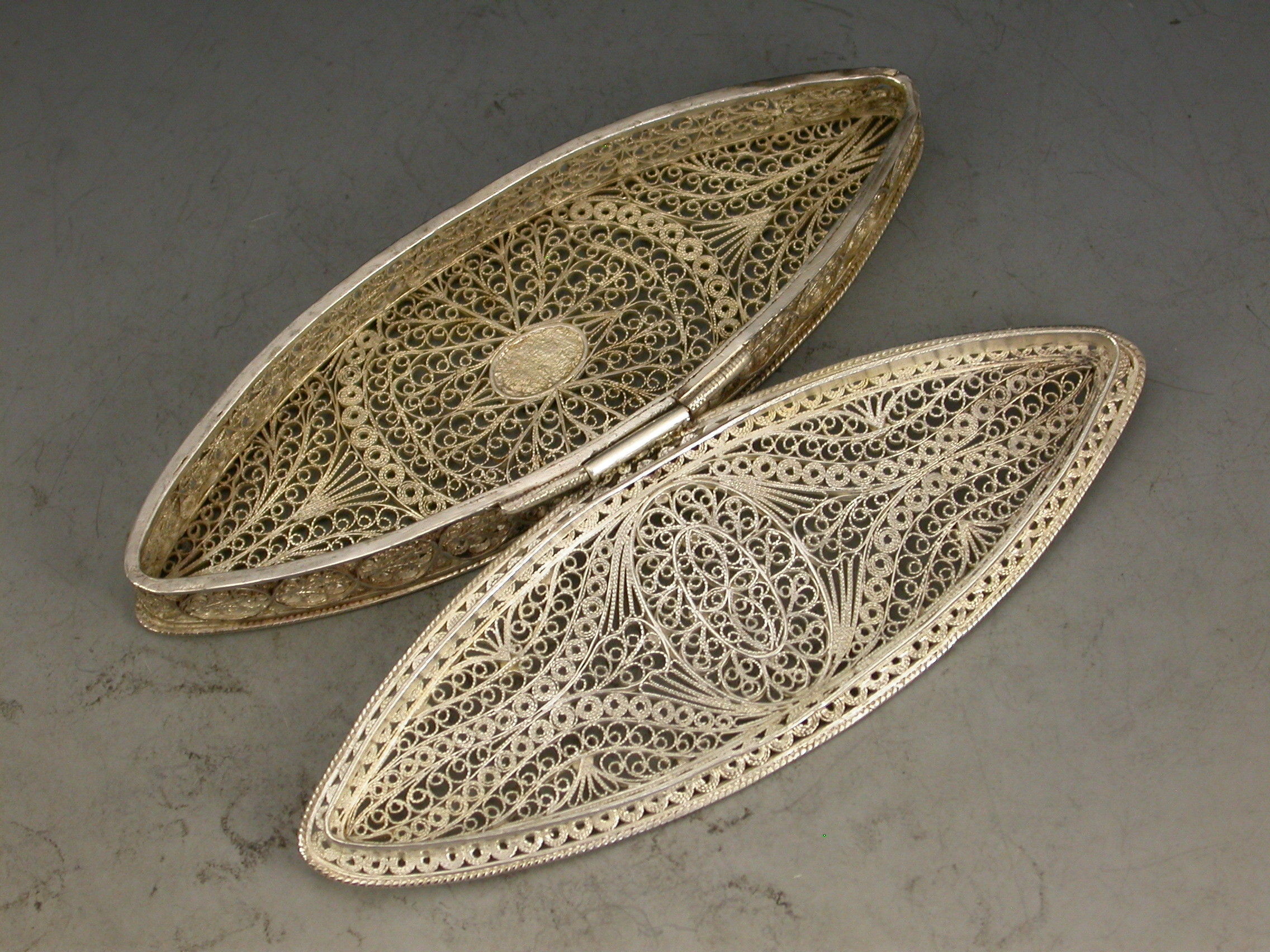 Georgian Silver Filigree Navette Shaped Toothpick Box