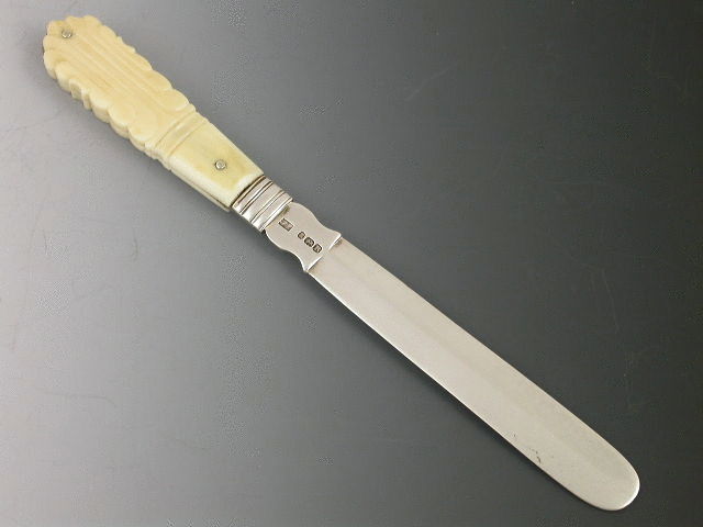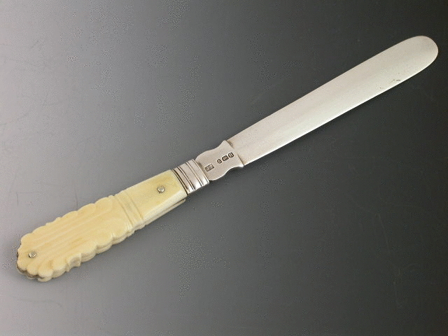 A rare George III silver Tongue Depressor with carved ivory or bone handle, bevelled silver blade.