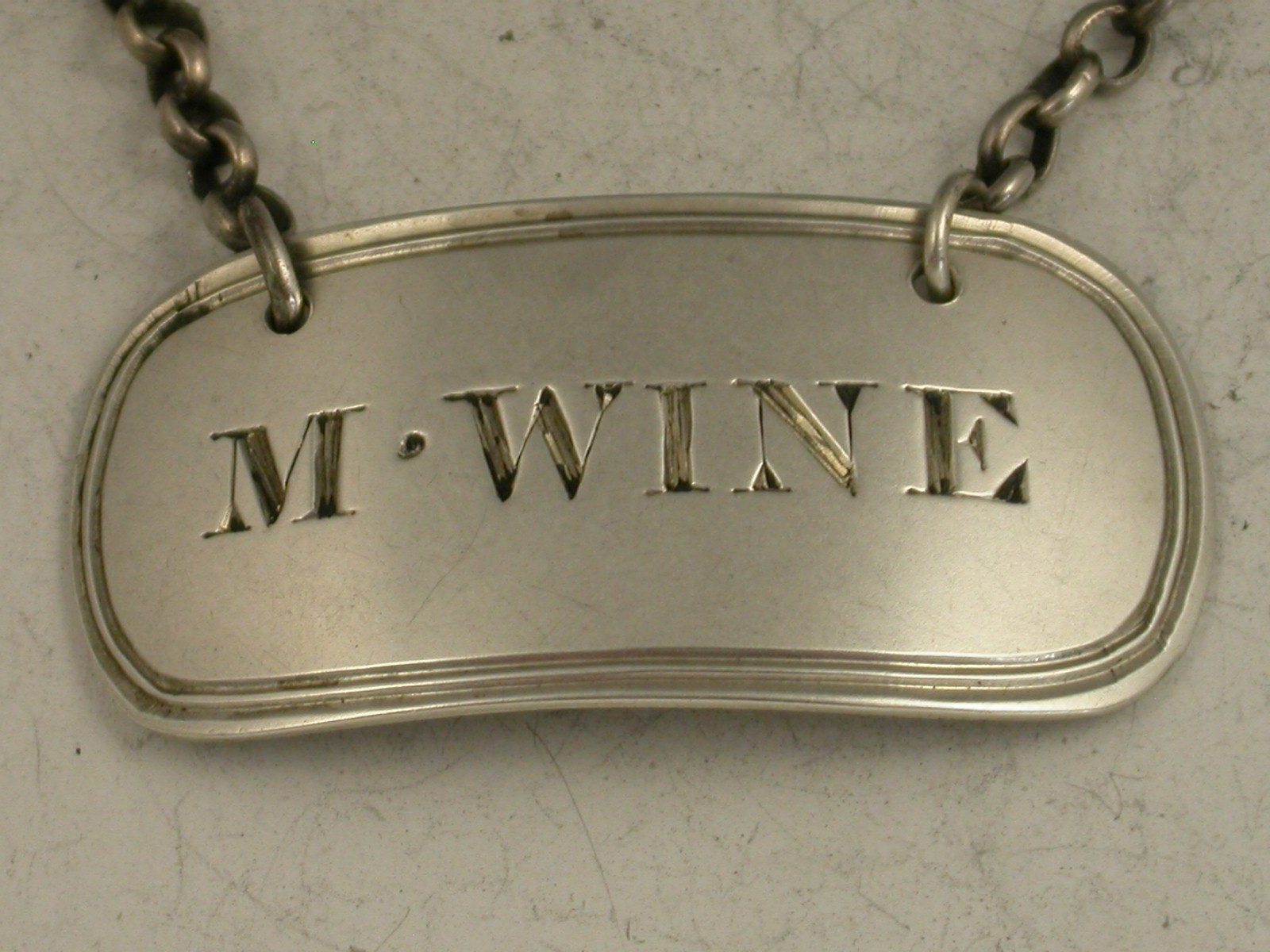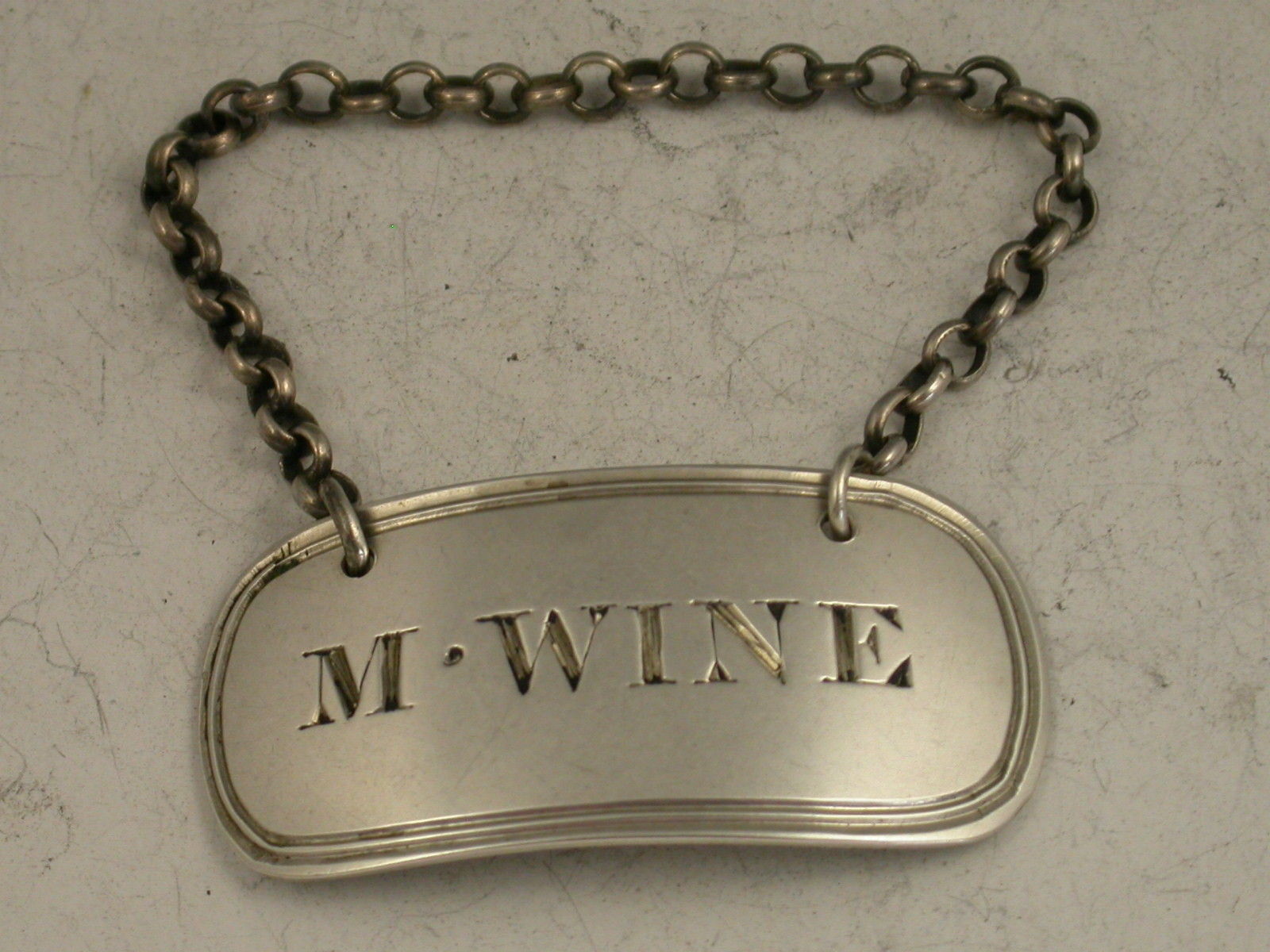 A rare Georgian silver Wine Label of rounded rectangualr form with double thread border, incised for M * Wine, a rare title probably for Madeira.