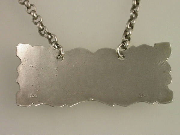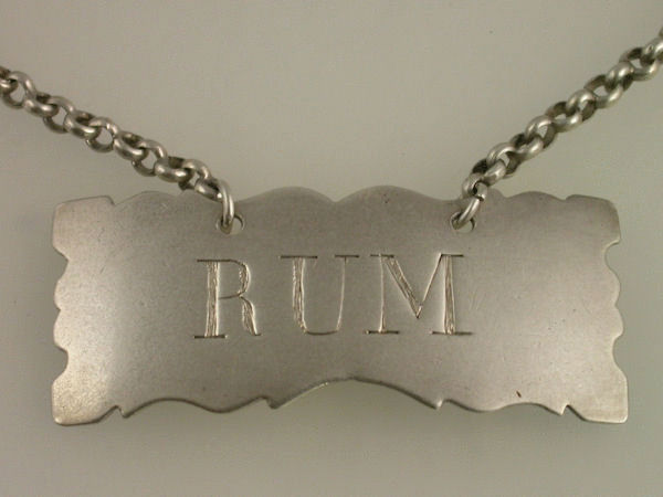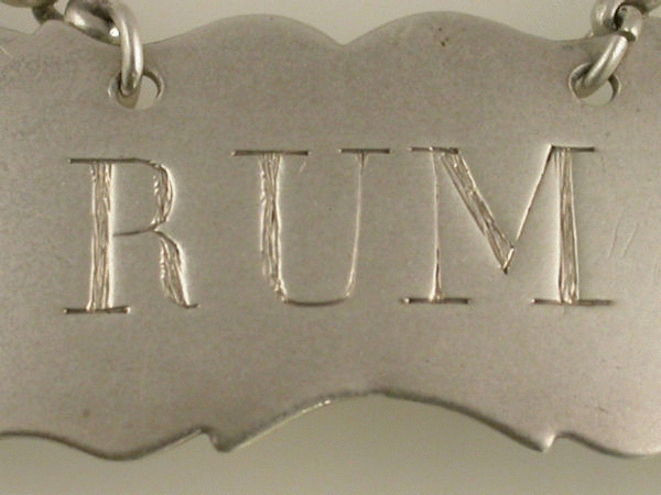 An unusual and untraced Georgian silver Wine Label of shaped rectangular form with serrated border, incised for RUM.