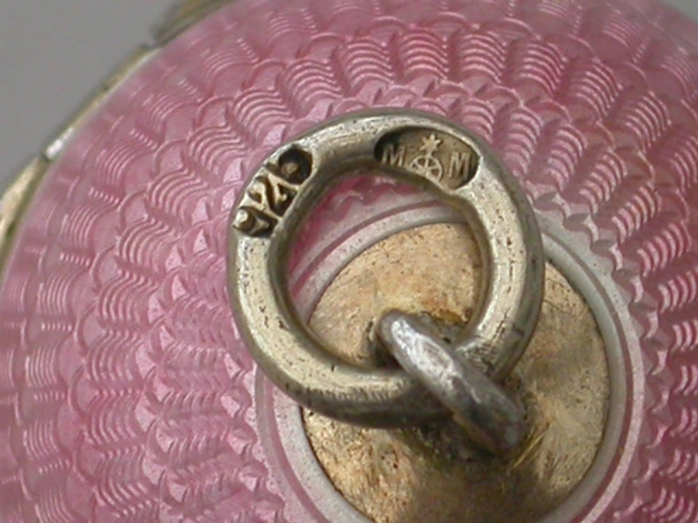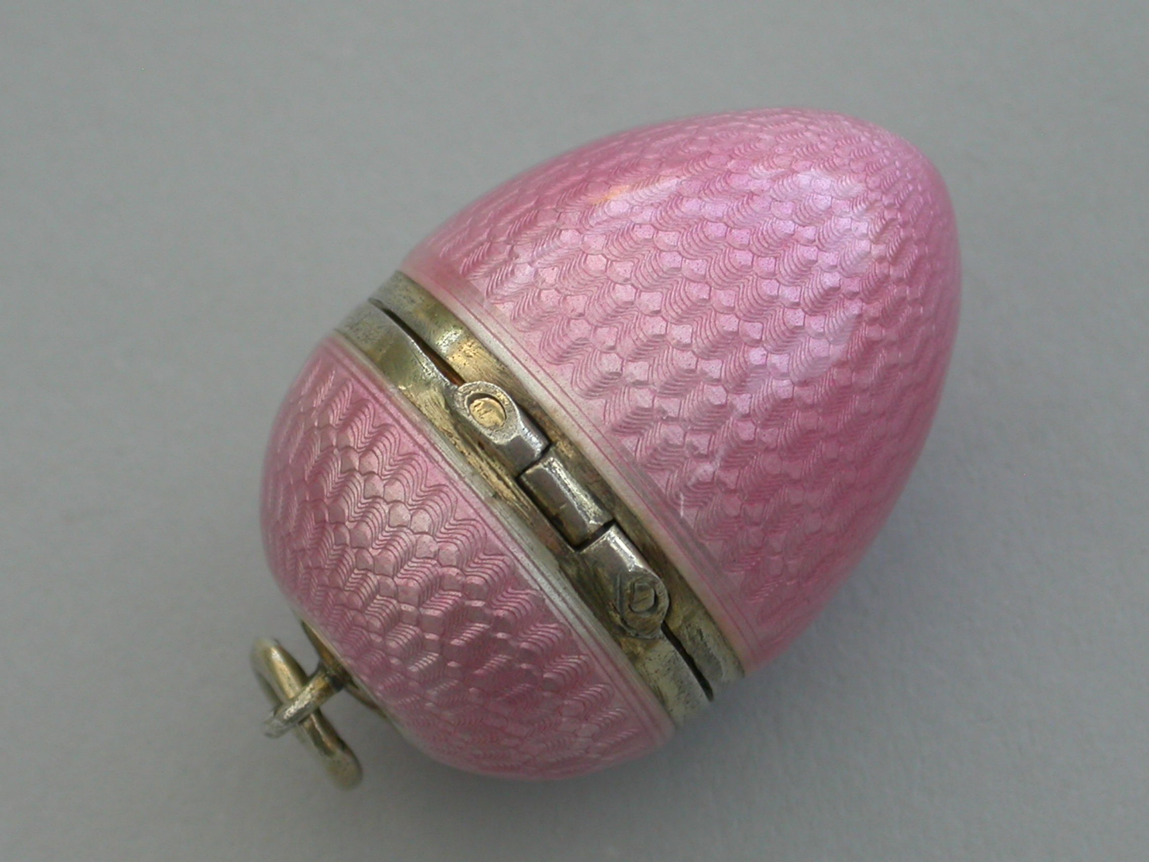 German Silver & Pink Guilloche Enamel Egg