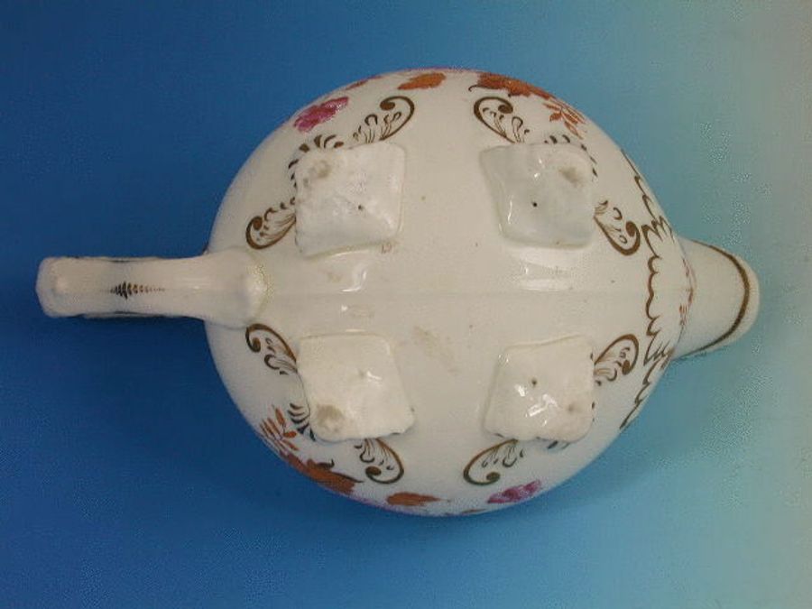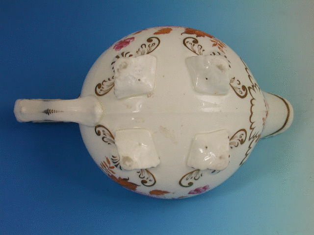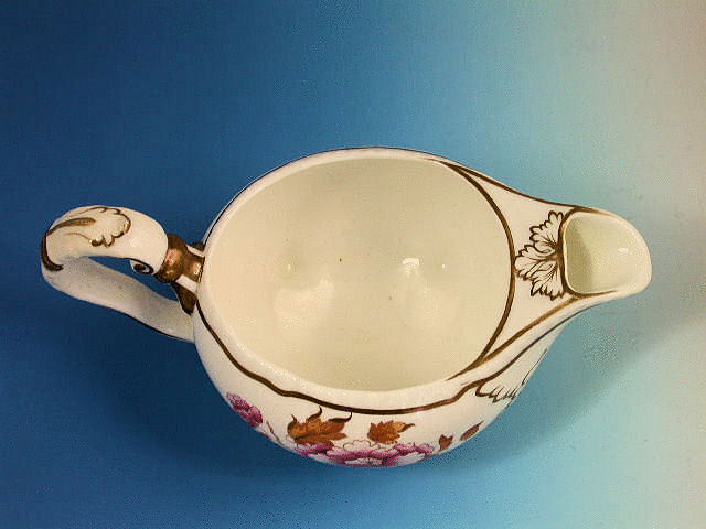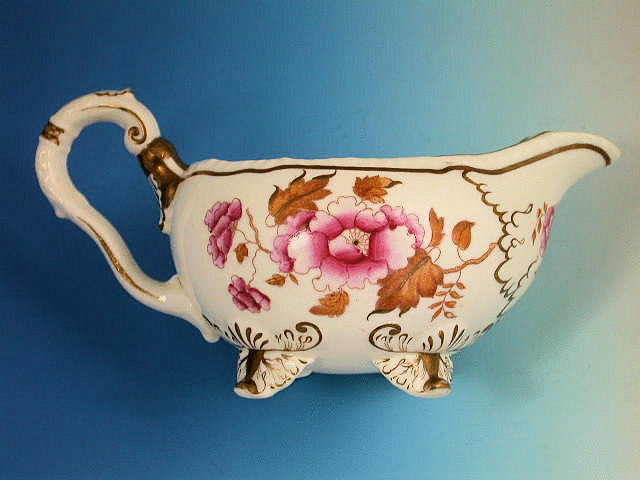 A fine H & R Daniel moulded Cream Boat standing on four leaf scroll feet, double scroll handle, decorated in an Oriental manner with trailing rose sprays within gilt enriched acanthus leaf outlines.