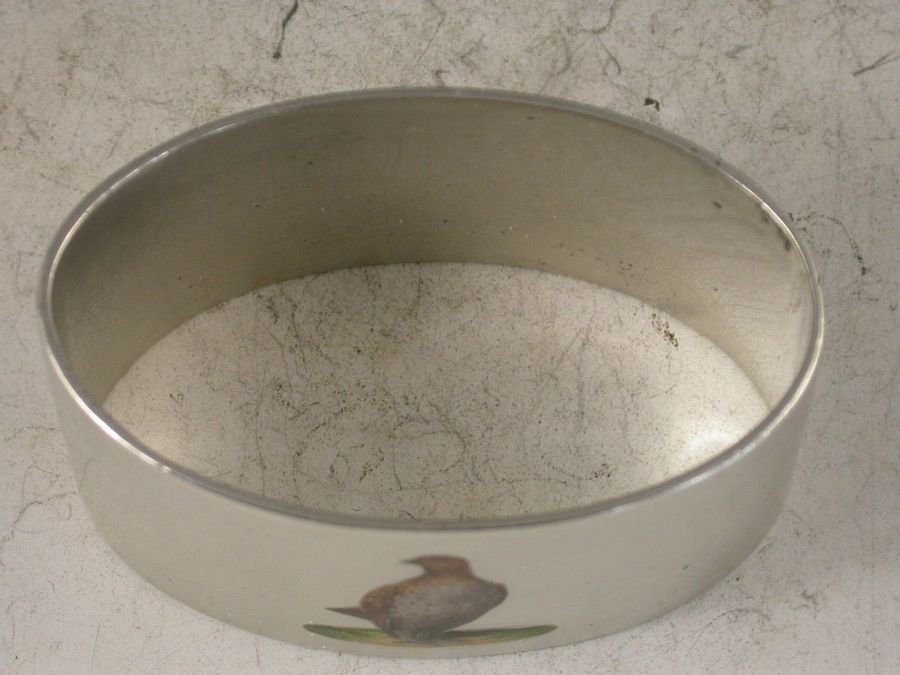 A fine quality George V oval silver Napkin ring of good gauge, inset with an enamel portrait of a Grouse.