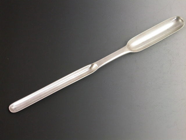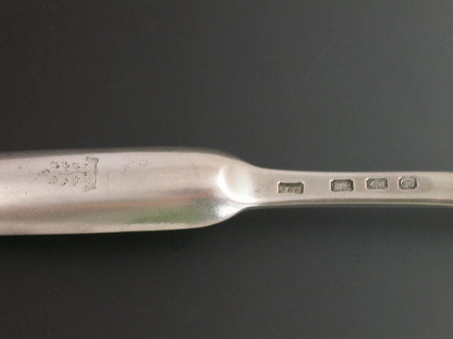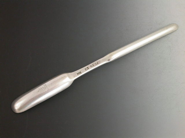 A George III Irish silver Marrow Scoop, the bowl engraved with a crest of an oak branch issuing out of a Coronet.