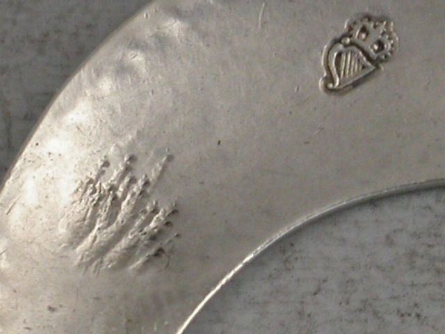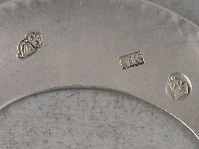 By J K of Dublin, c1785 (pre 1787 Harp and Hibernia marks). The unattributed maker J K in a serrated punch is probably John Kavanagh or James Keating.