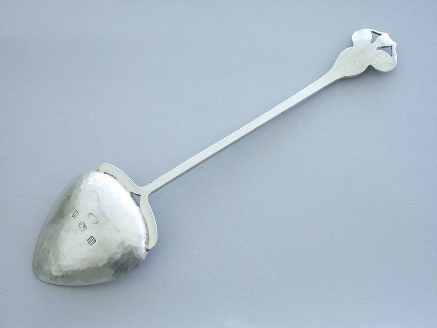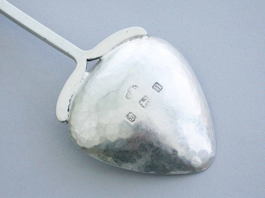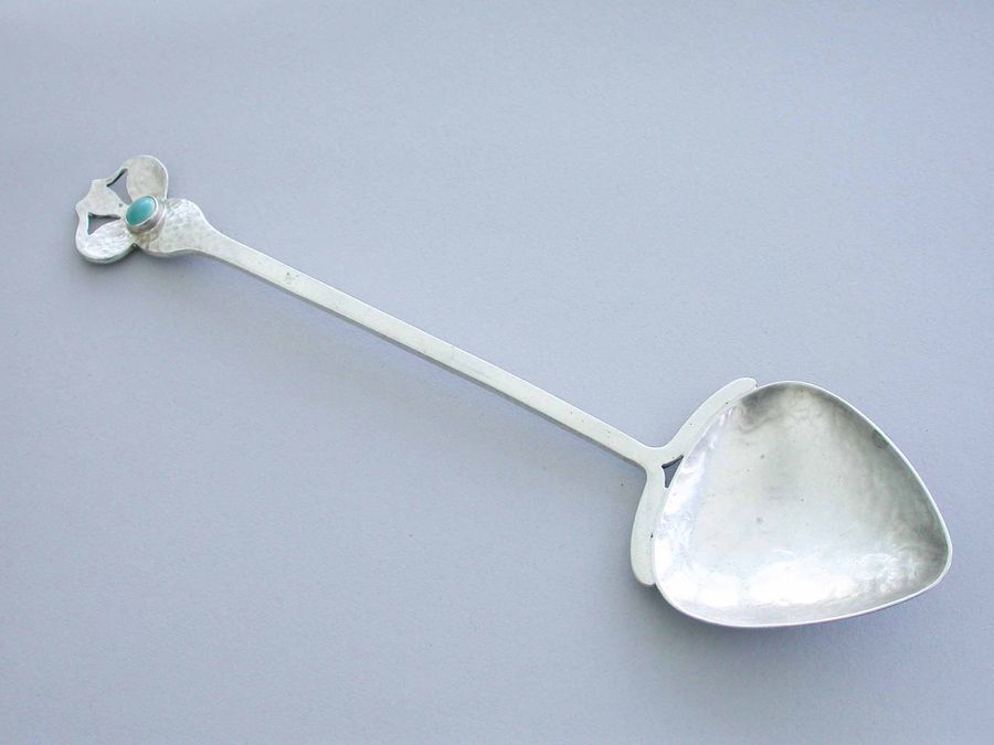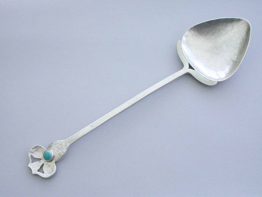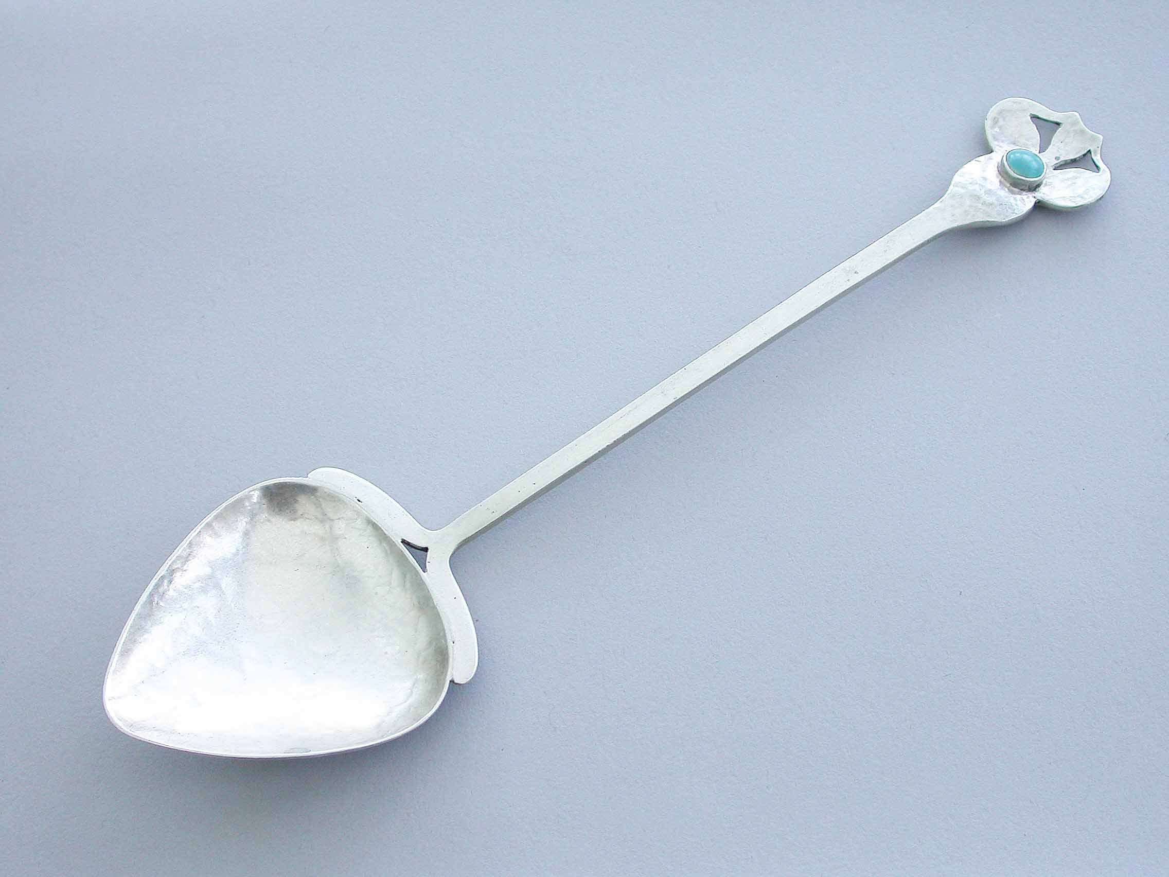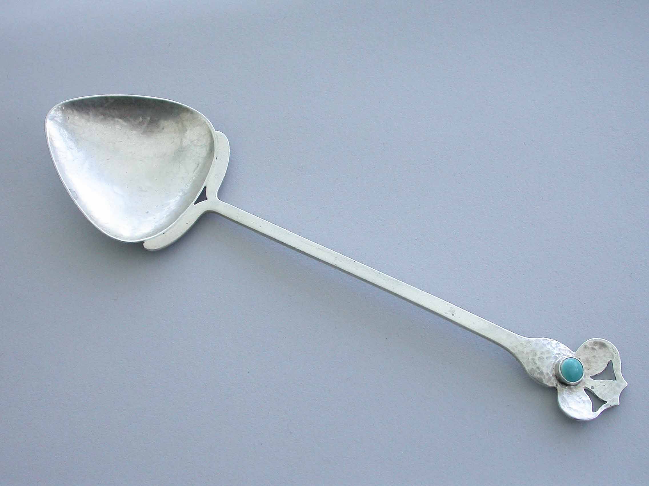 Large Arts & Crafts Hammered Silver Spoon with Cabochon Ruskin Stone