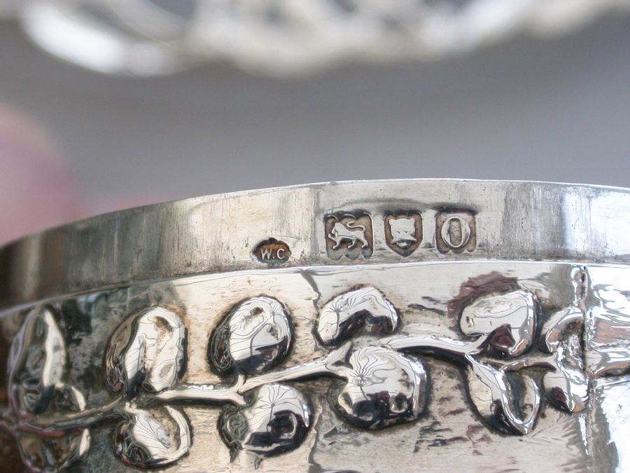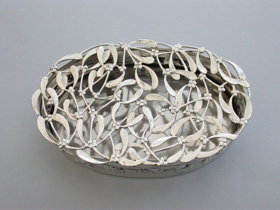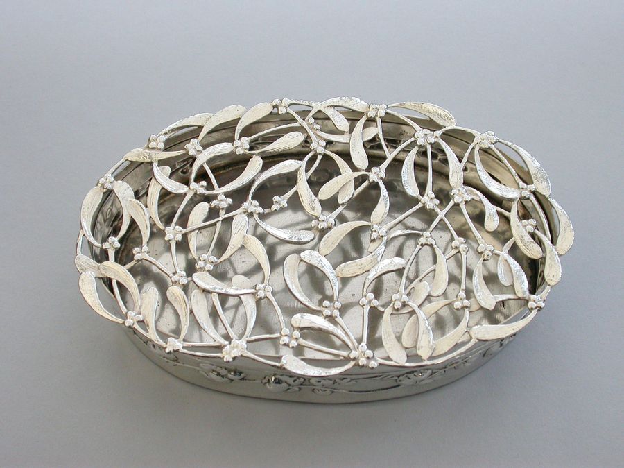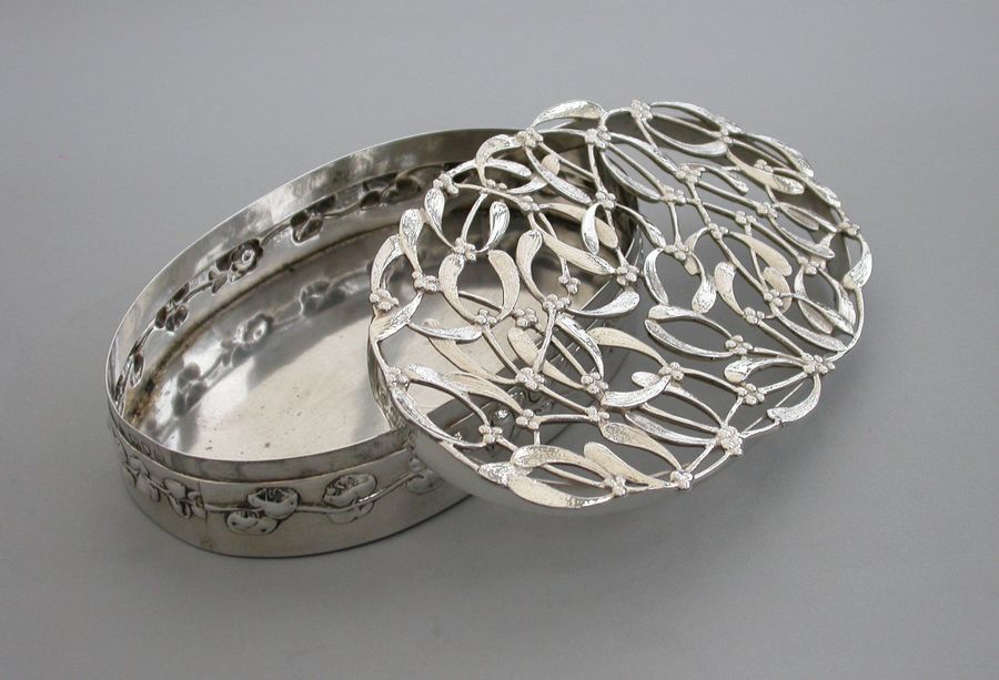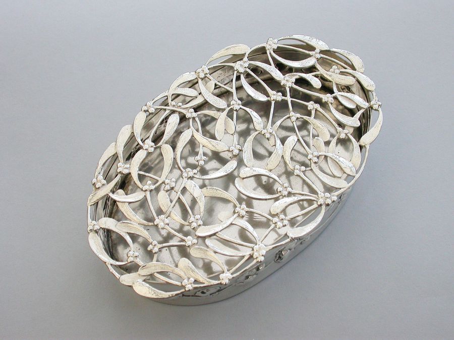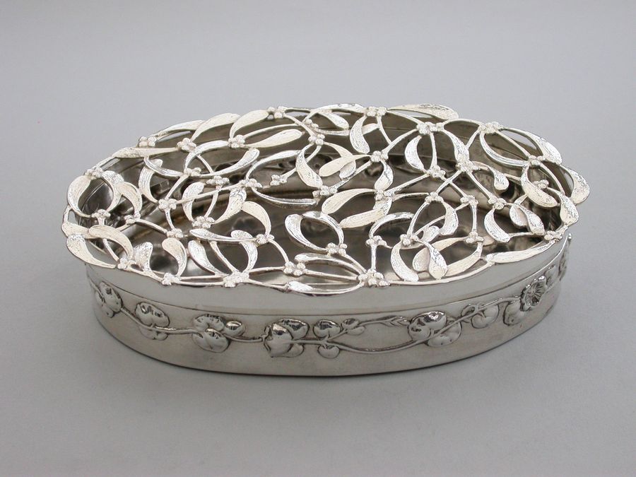 Large Edwardian Art Nouveau Silver Christmas Mistletoe Pot Pourri Box