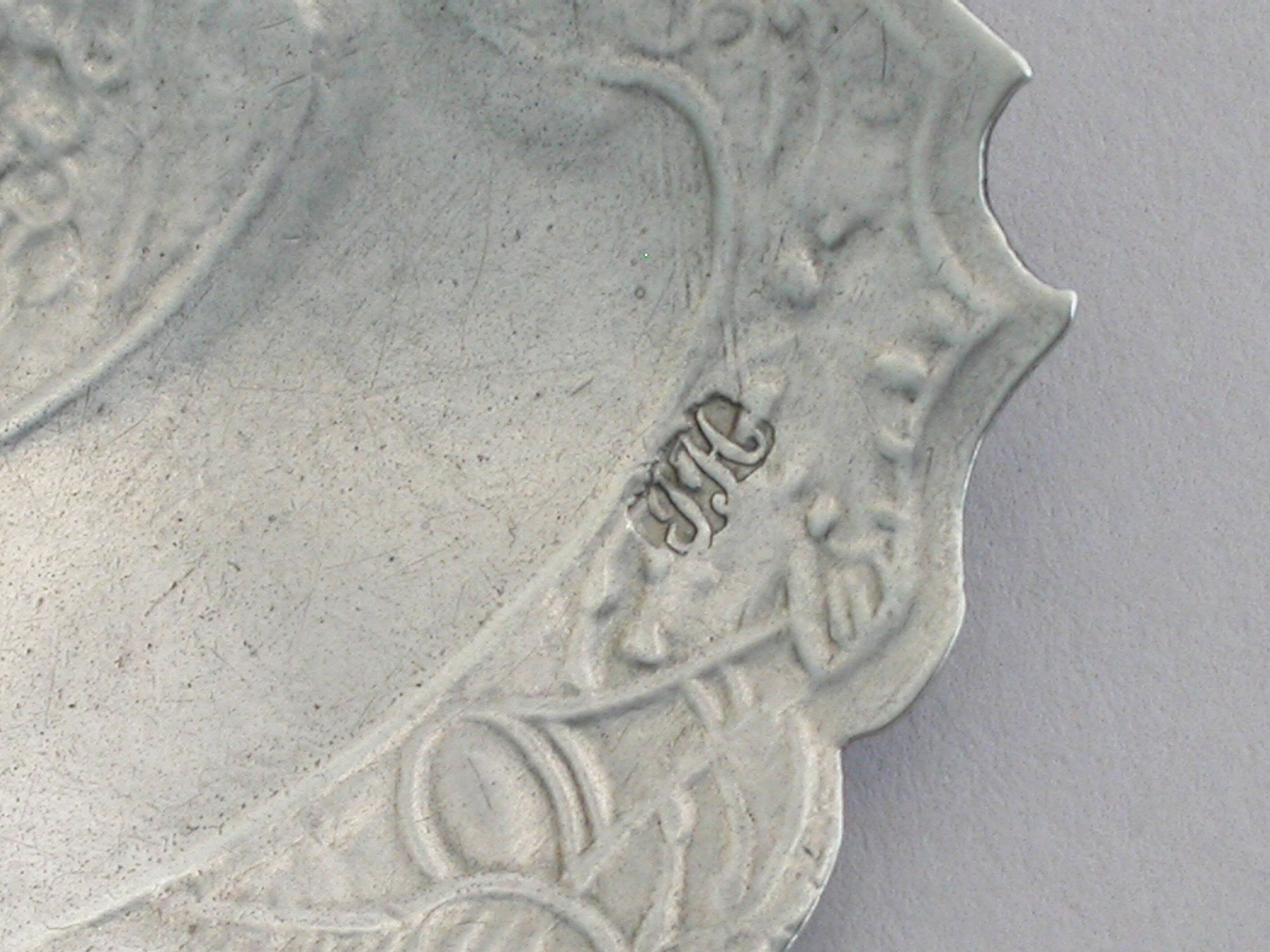 gauge of the silver is slightly thin and light so that the chasing is apparent on the back of the label.