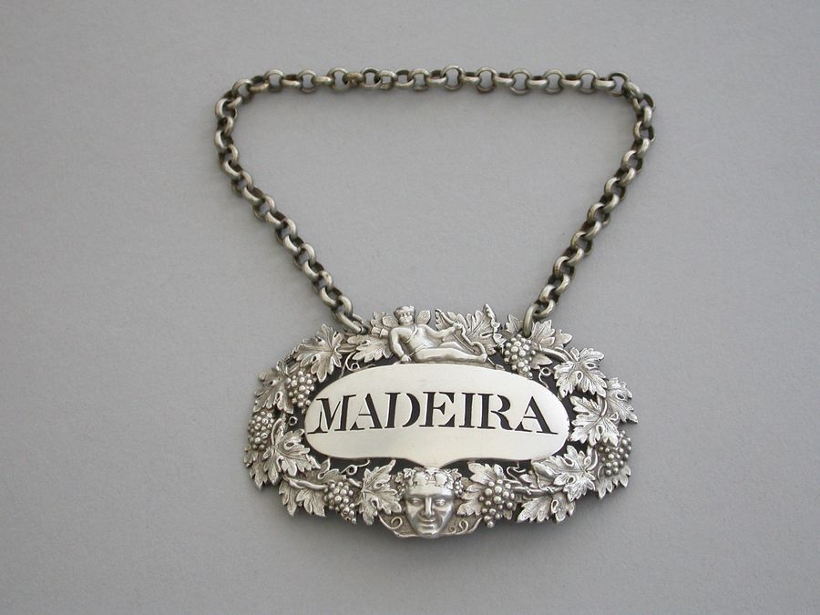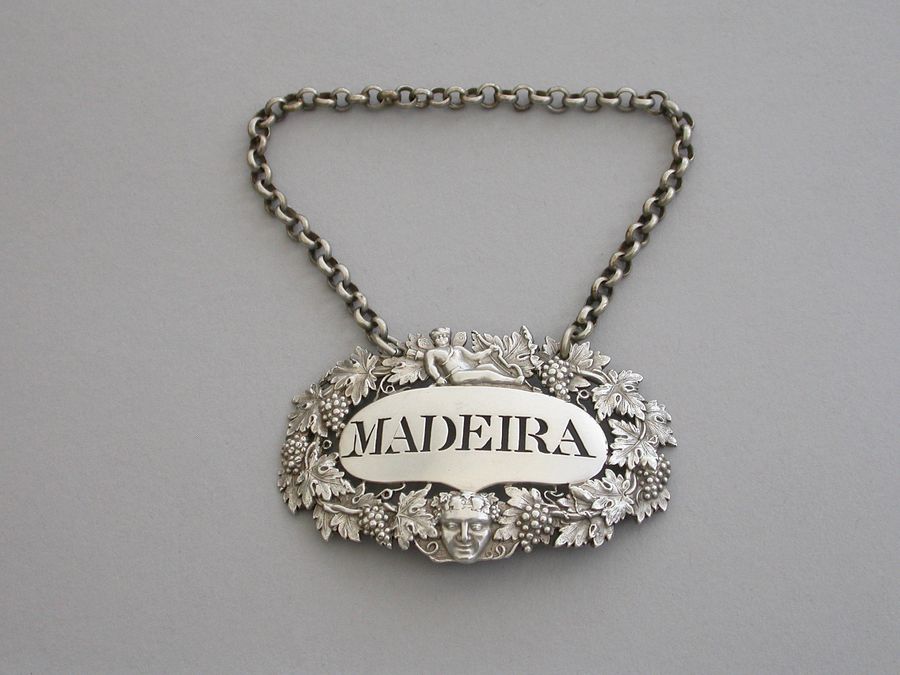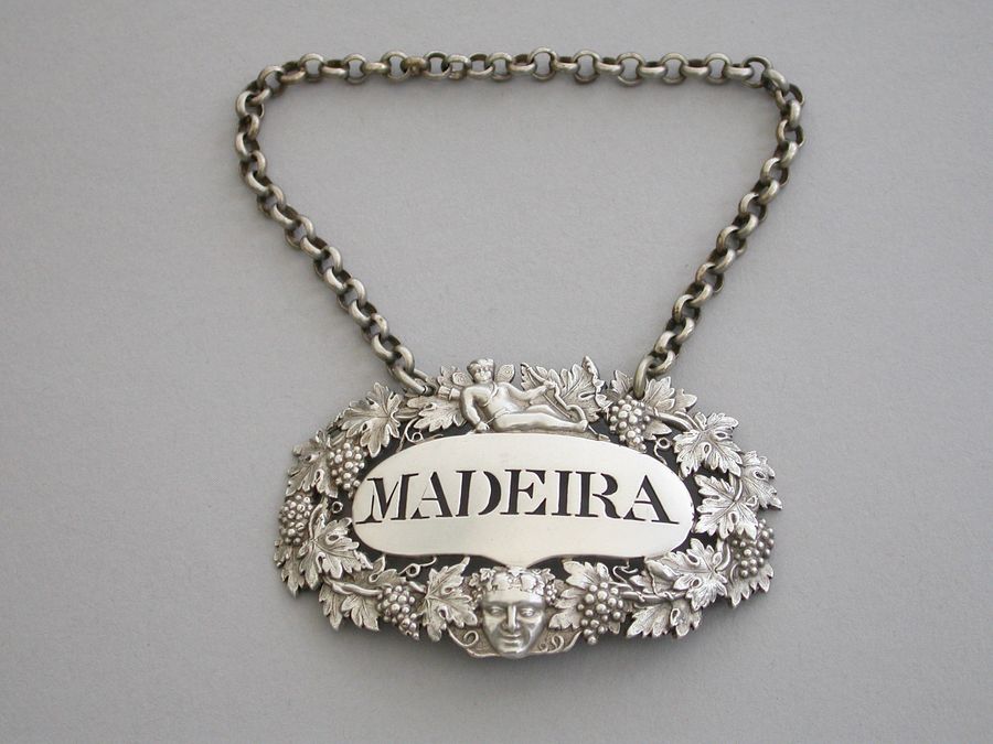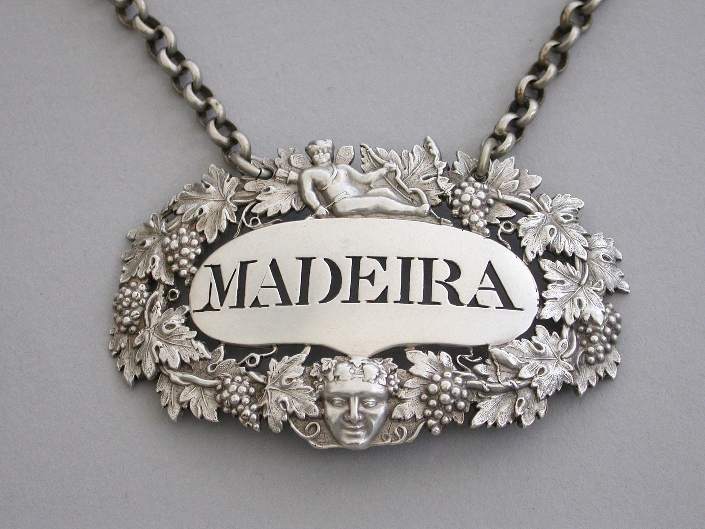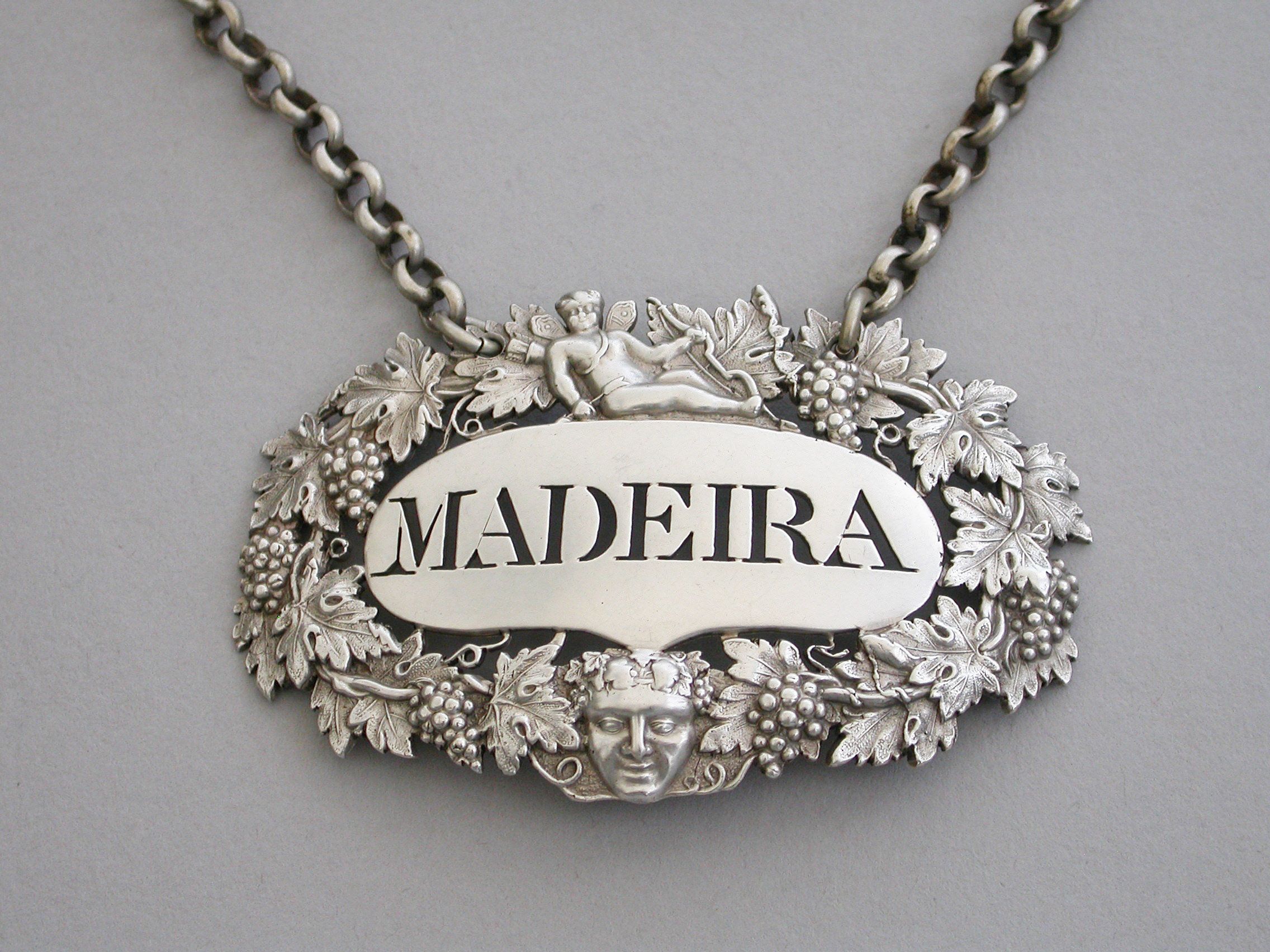 Large George III Cast Silver Cupid & Bacchus Wine Label 'Madeira'