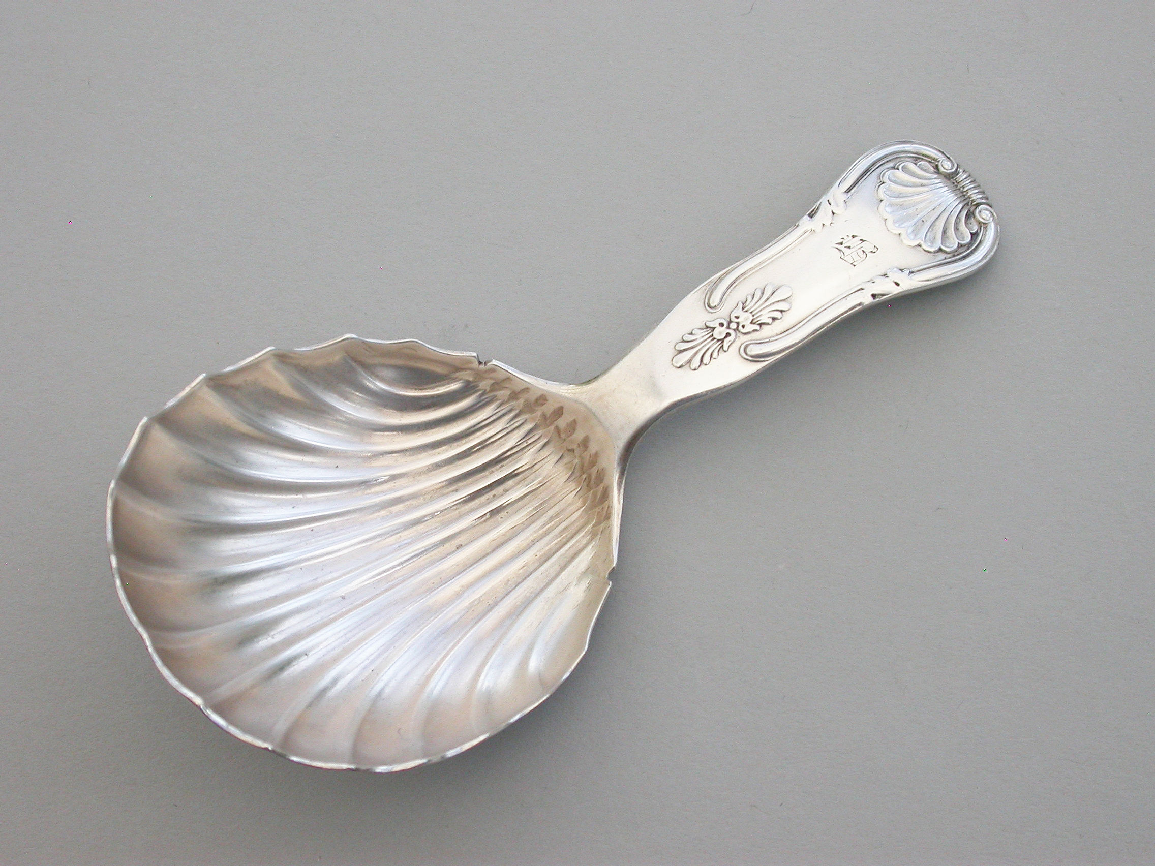 A good large George IV Scottish silver Caddy Spoon with single-struck Kings pattern handle and fluted oval bowl.