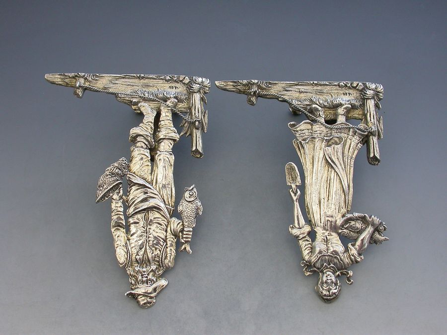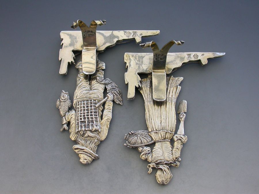 Large Pair Victorian German Silver Menu Stands Fisherman & Fisherwomen