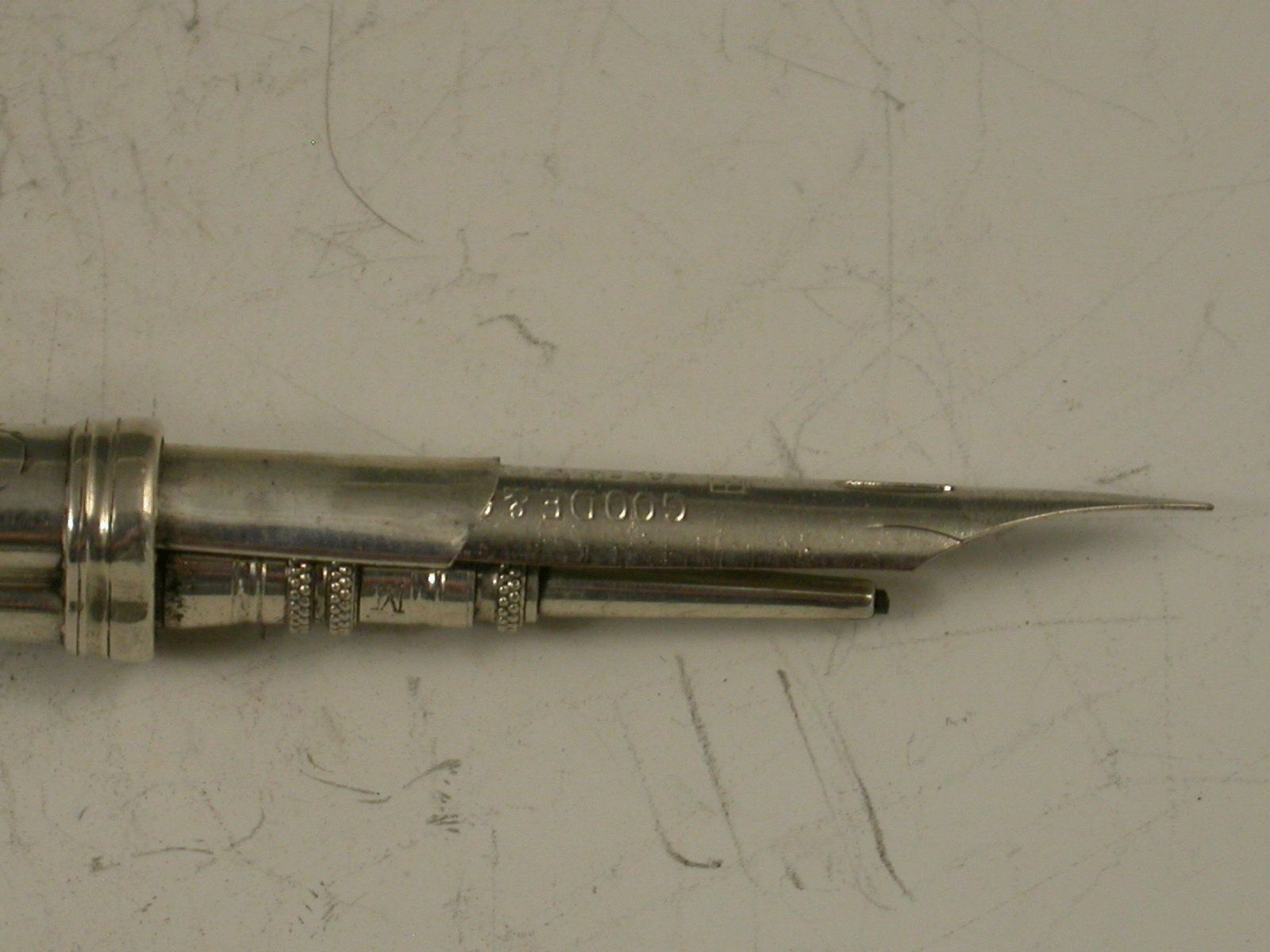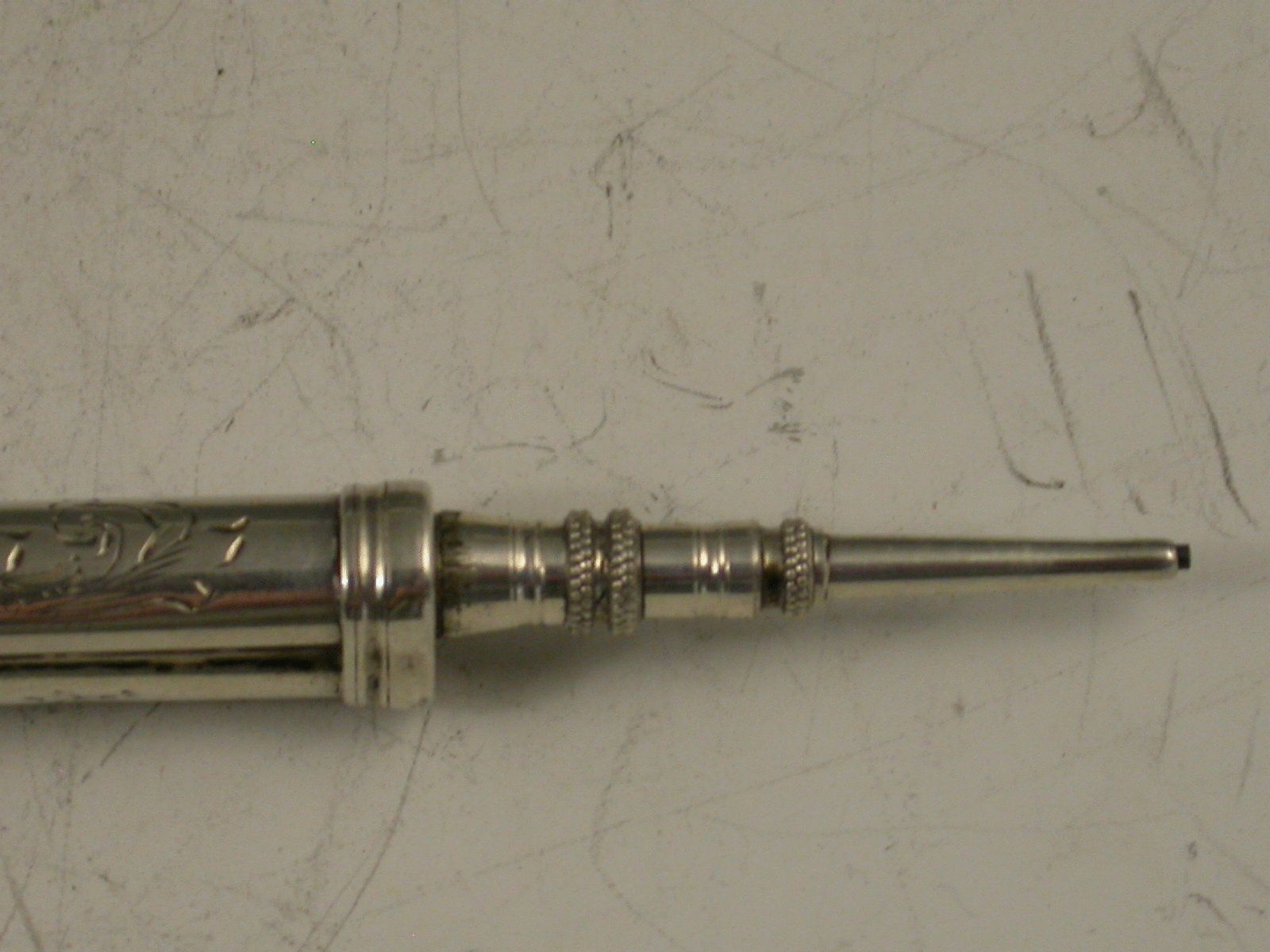 Large Victorian Antique Silver Combination Sliding Dip Pen & Propelling Pencil 'Crest of Elvin'