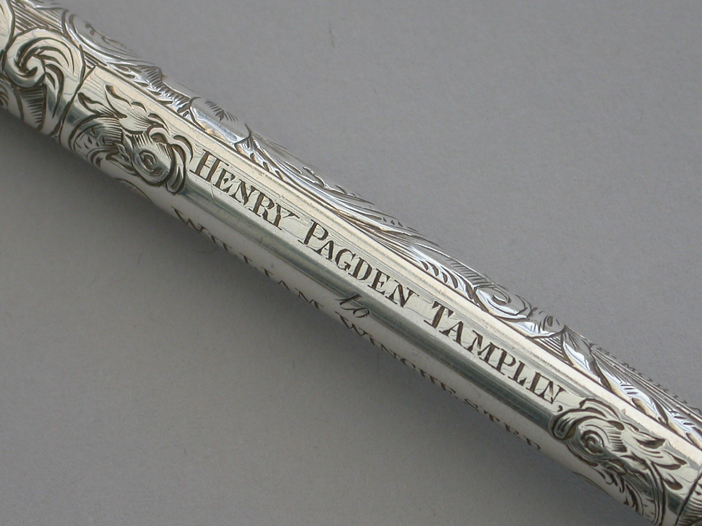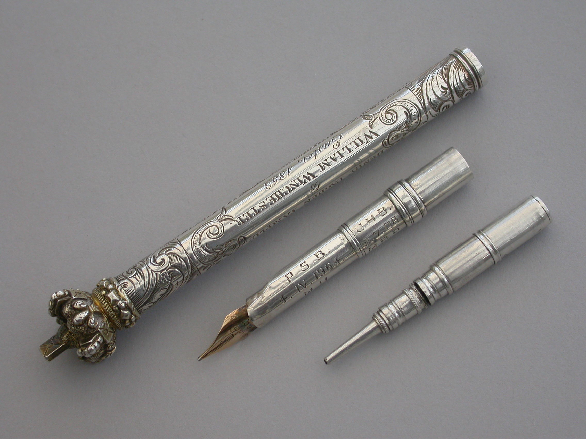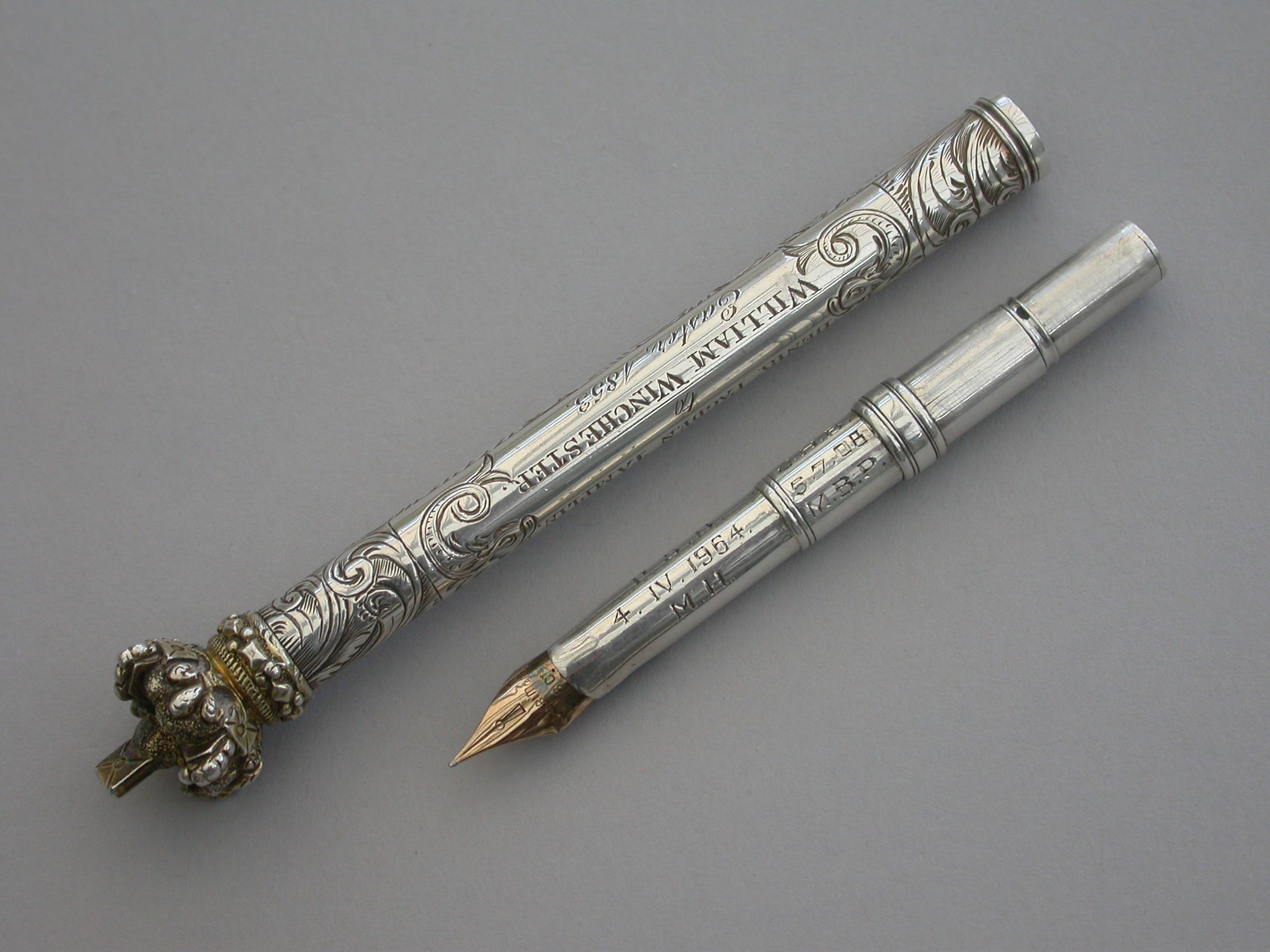 The nib holder with later presentation inscription.