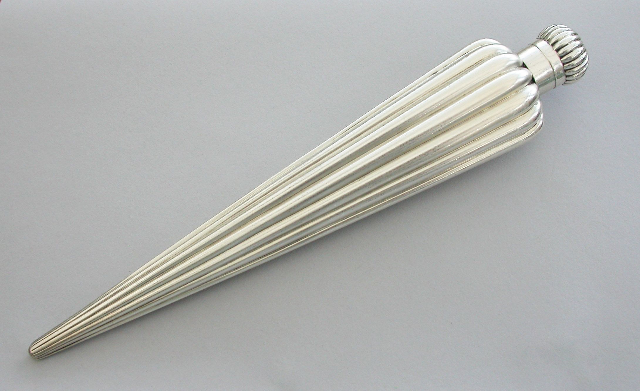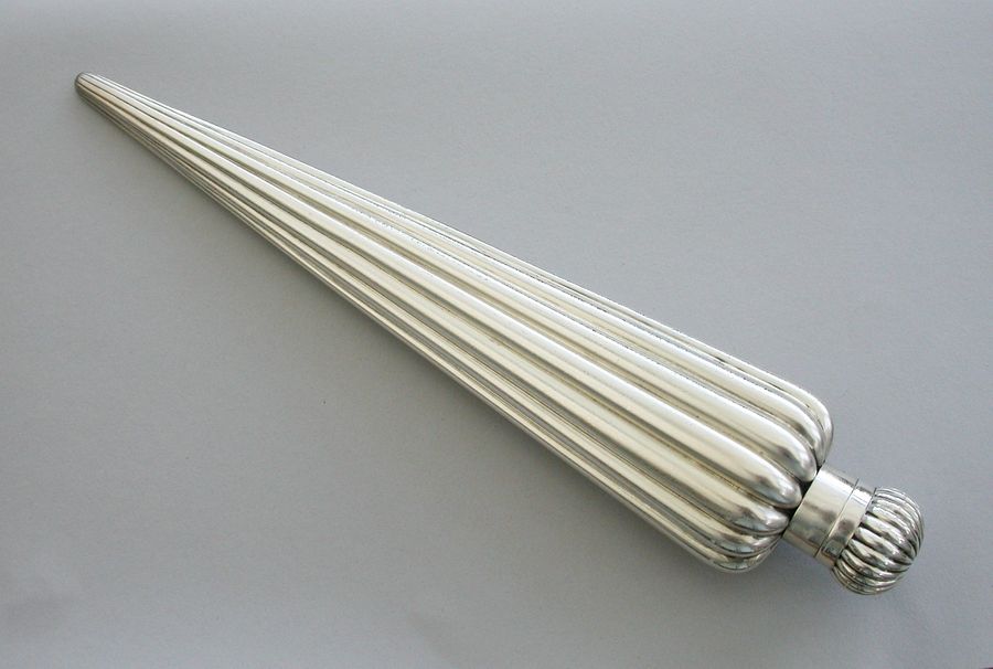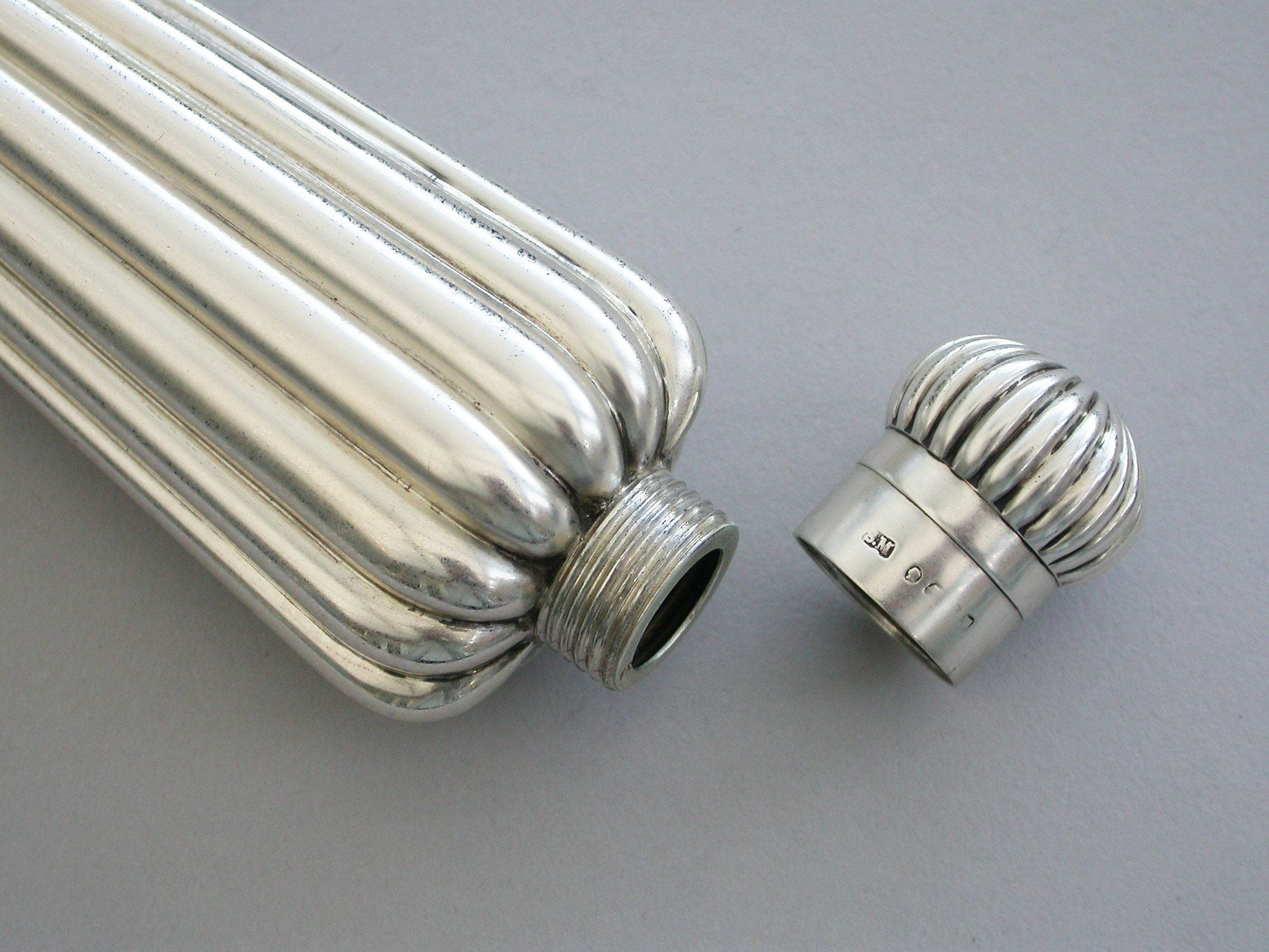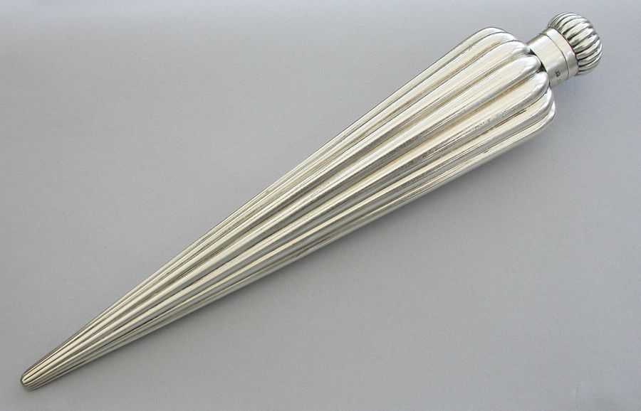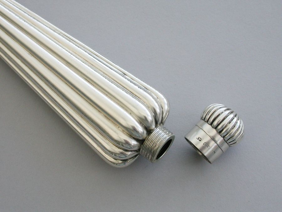 A large Victorian silver Perfume Flask with fluted icicle shaped body, the screw-off lid with domed fluted cap.