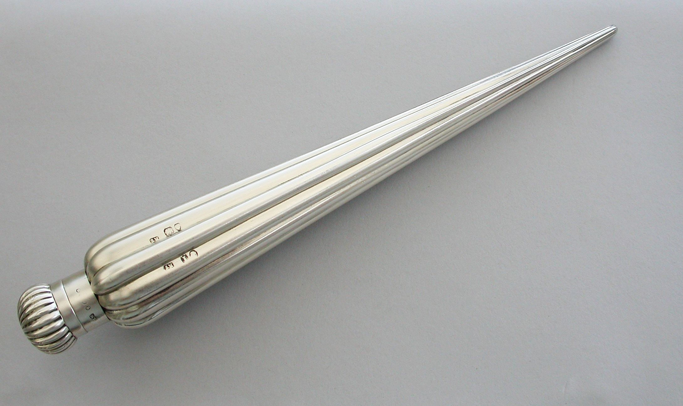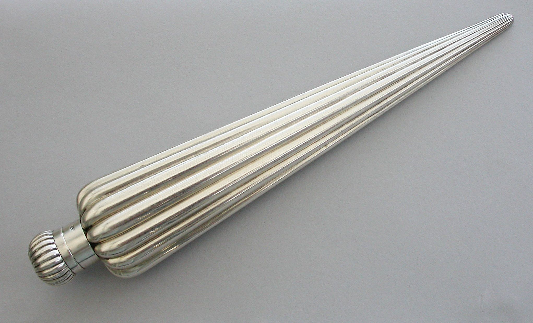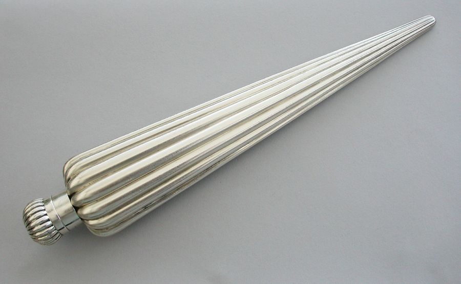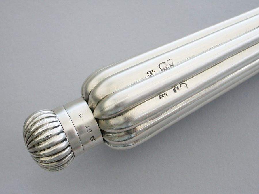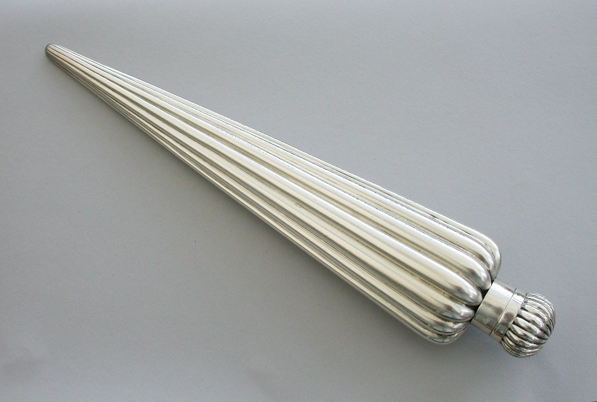 A large Victorian silver Perfume Flask with fluted icicle shaped body, the screw-off lid with domed fluted cap.