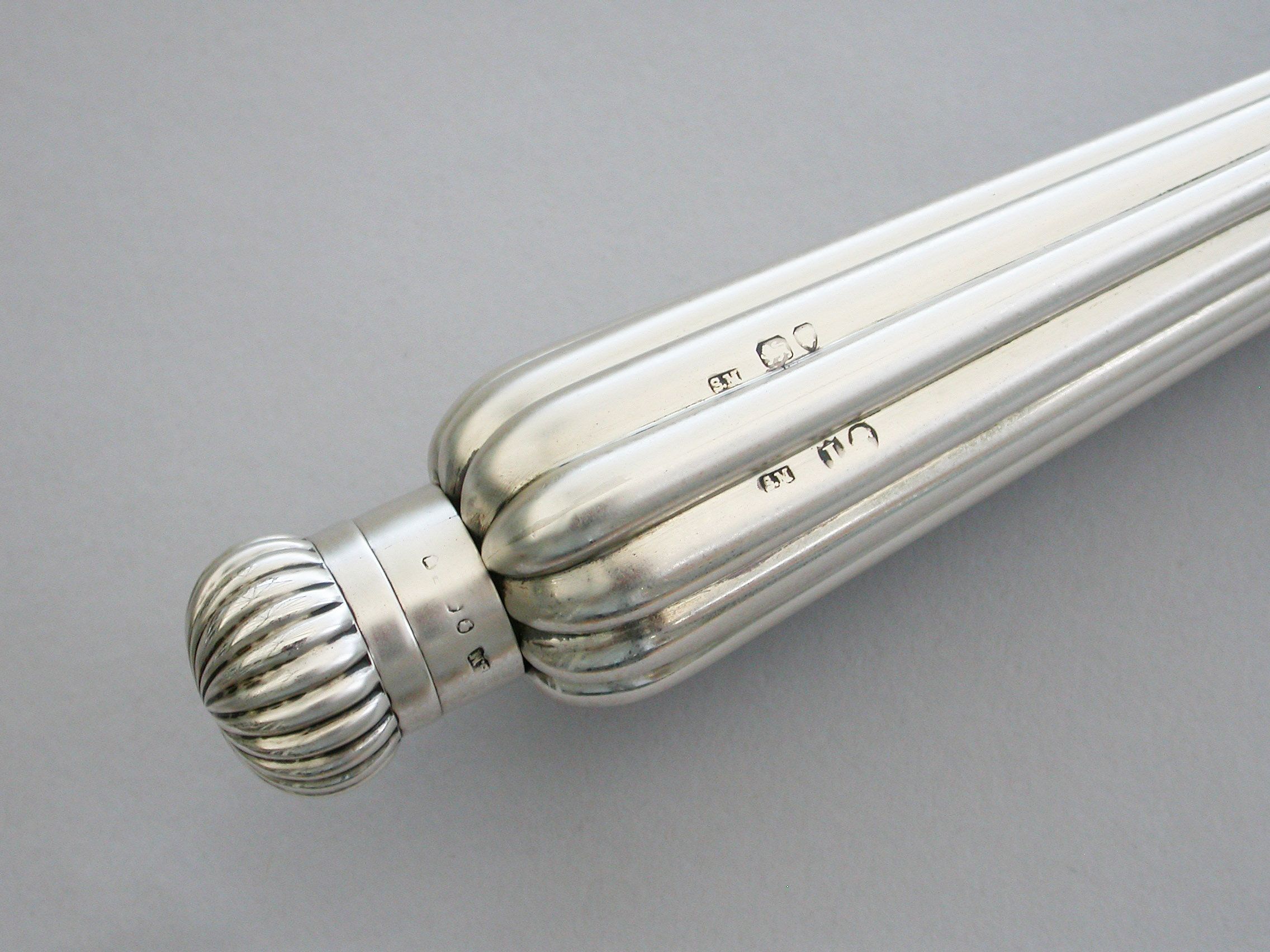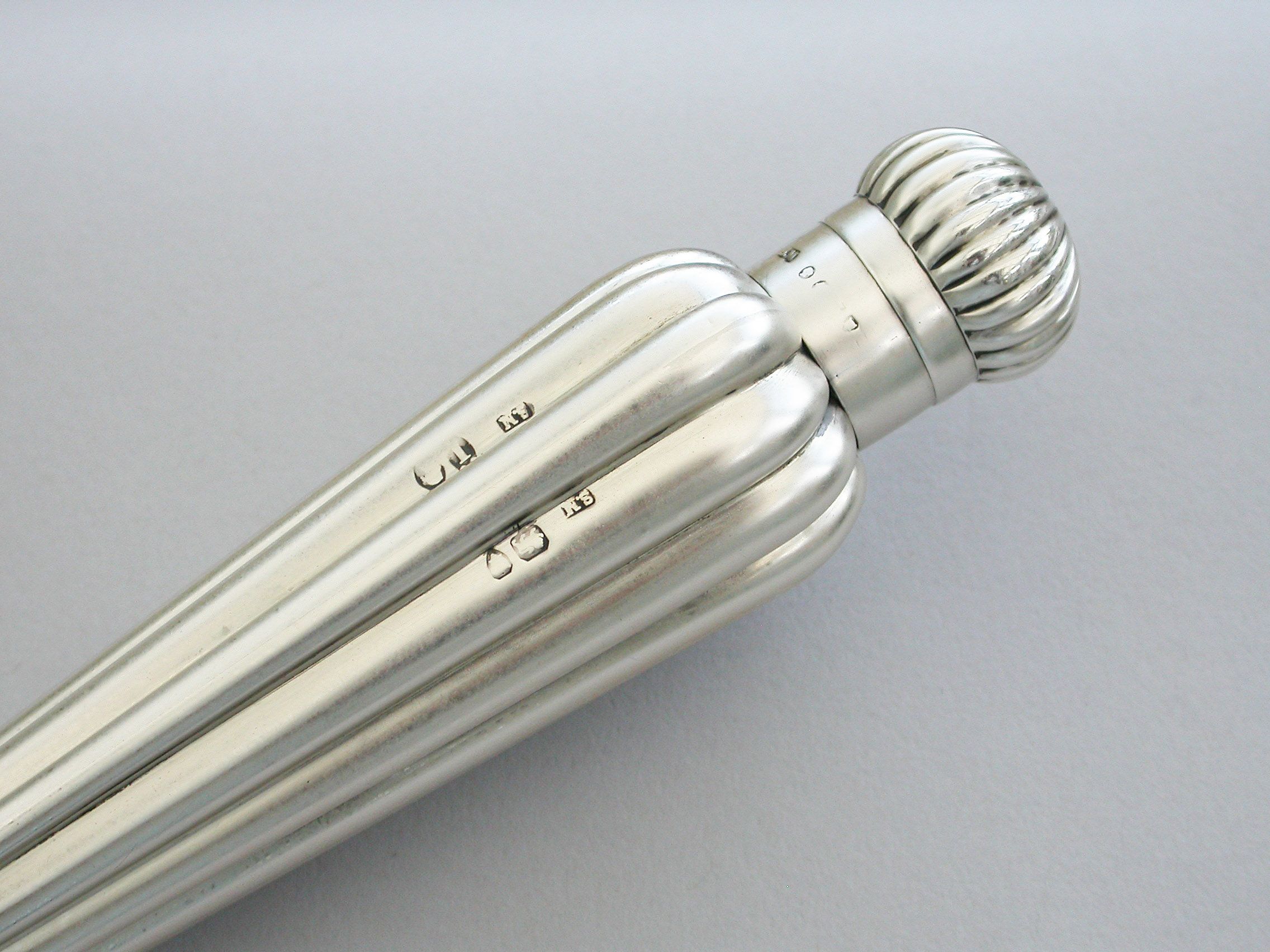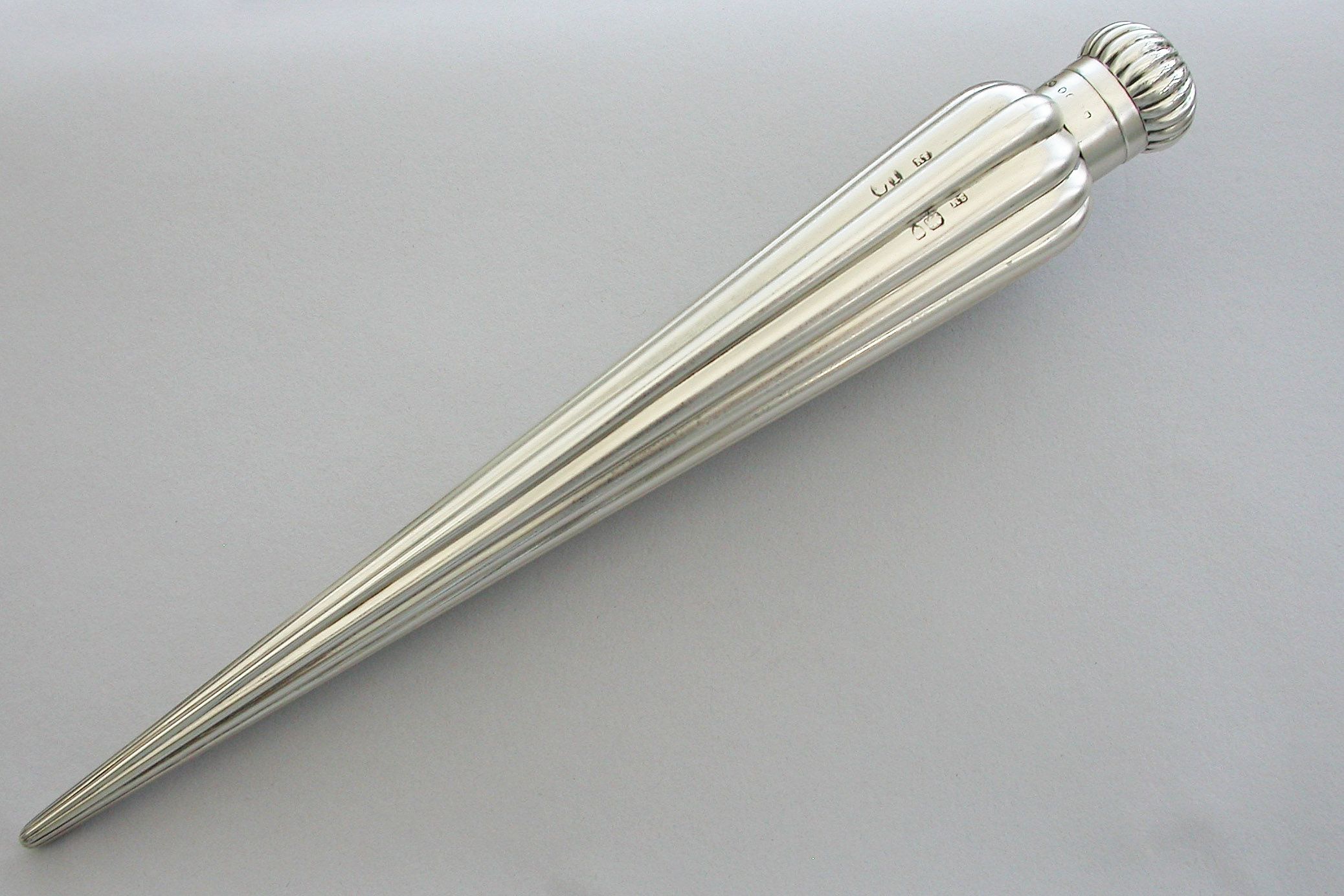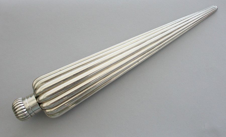 A large Victorian silver Perfume Flask with fluted icicle shaped body, the screw-off lid with domed fluted cap.
