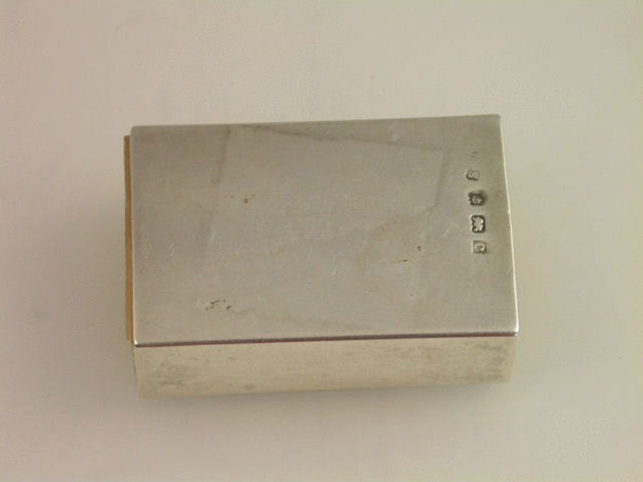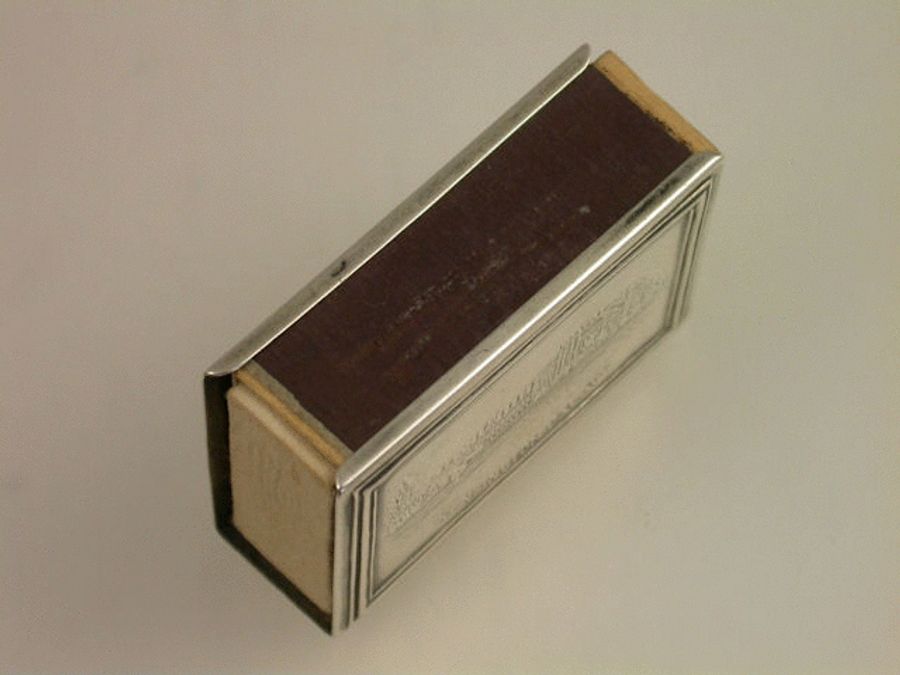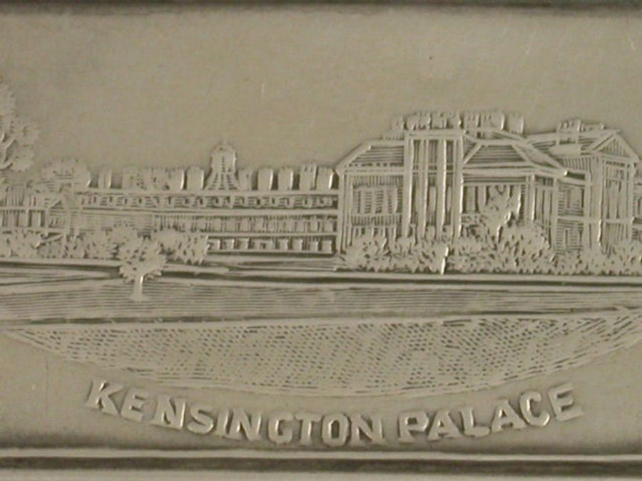 A rare early Edwardian silver “Castle Top” Matchbox Cover of plain sprung rectangular form, the cover with stamped and raised view depicting Kensington Palace, with reeded picture frame border.