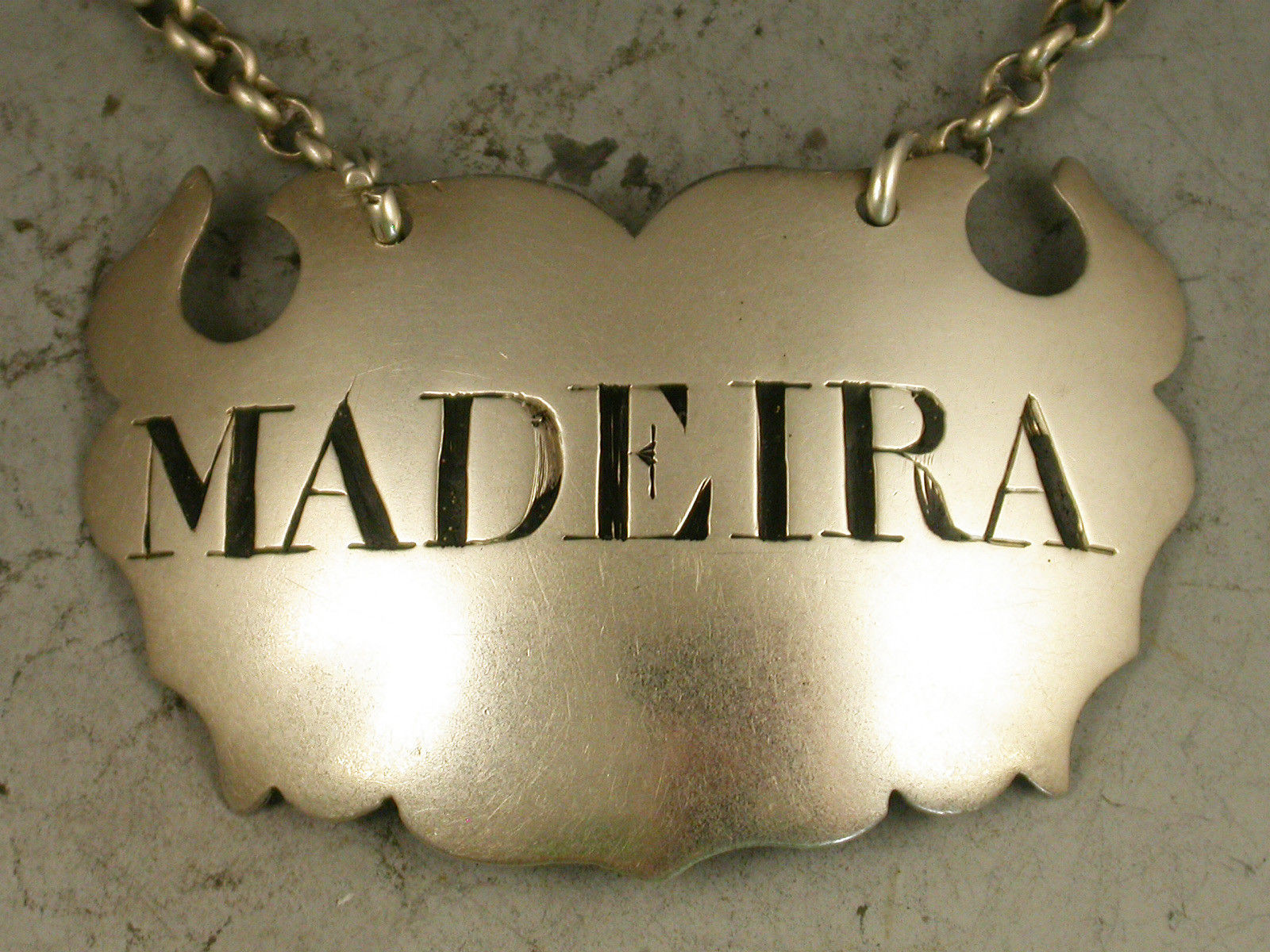 A good George II / George III silver Wine Label of plain escutcheon form and slightly unusual conformation at the base, incised for Madeira.