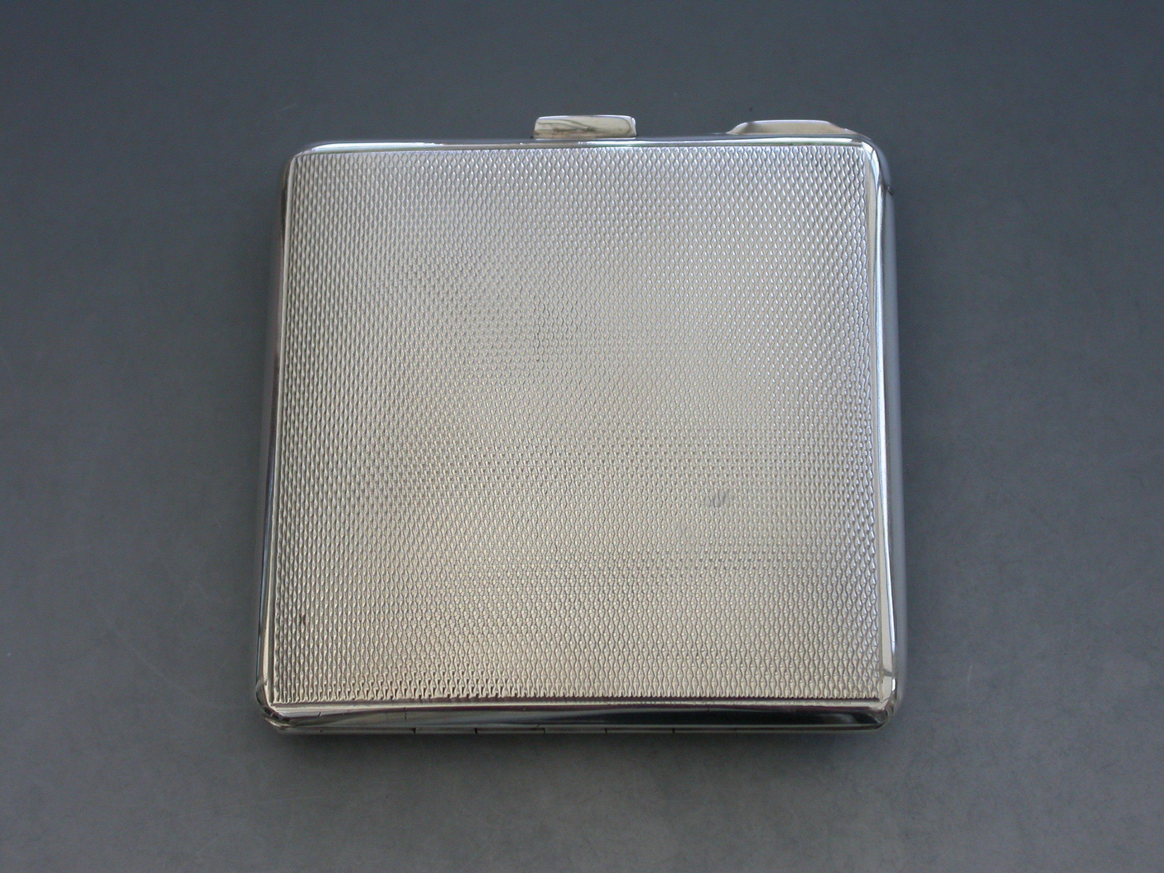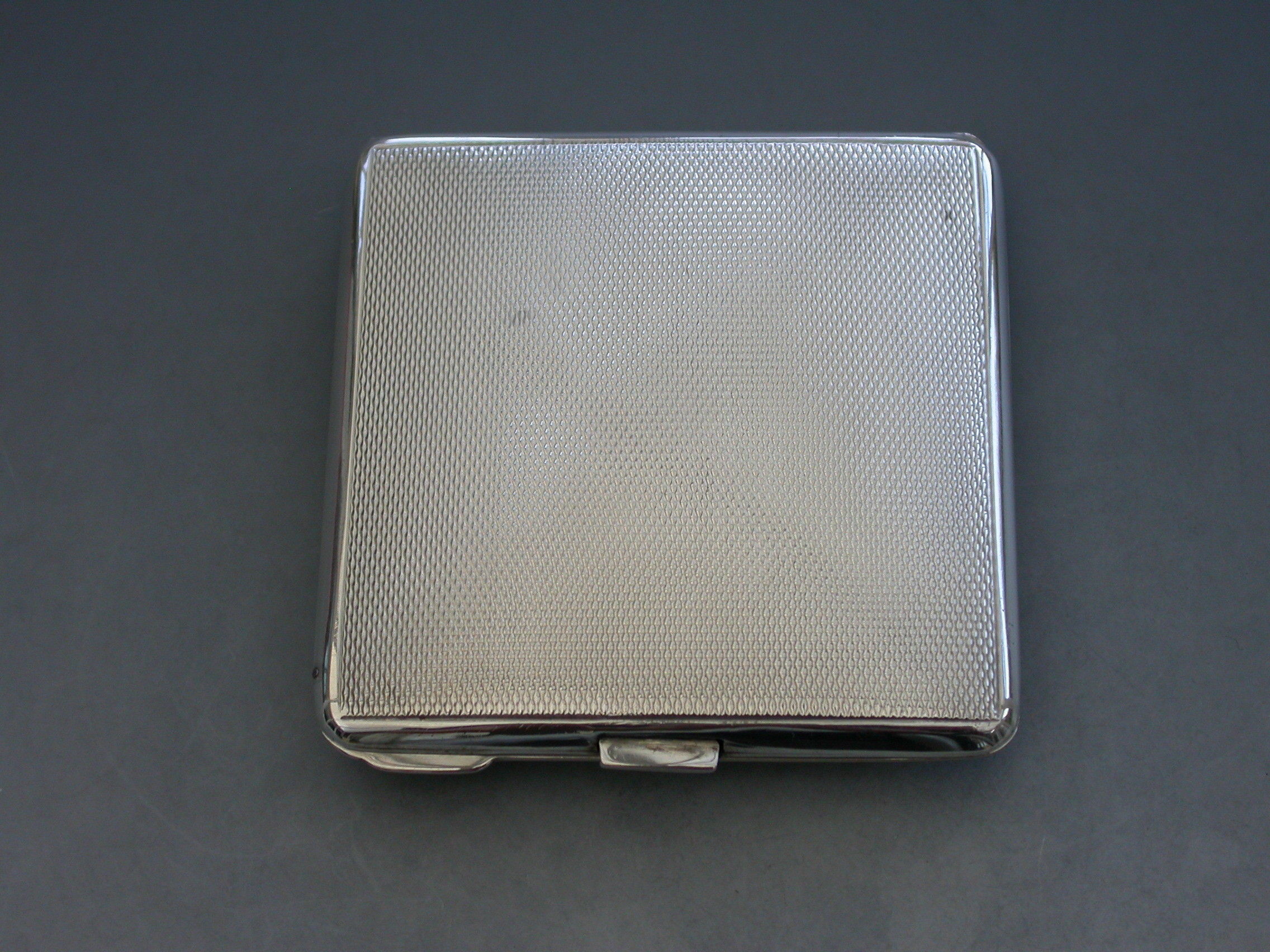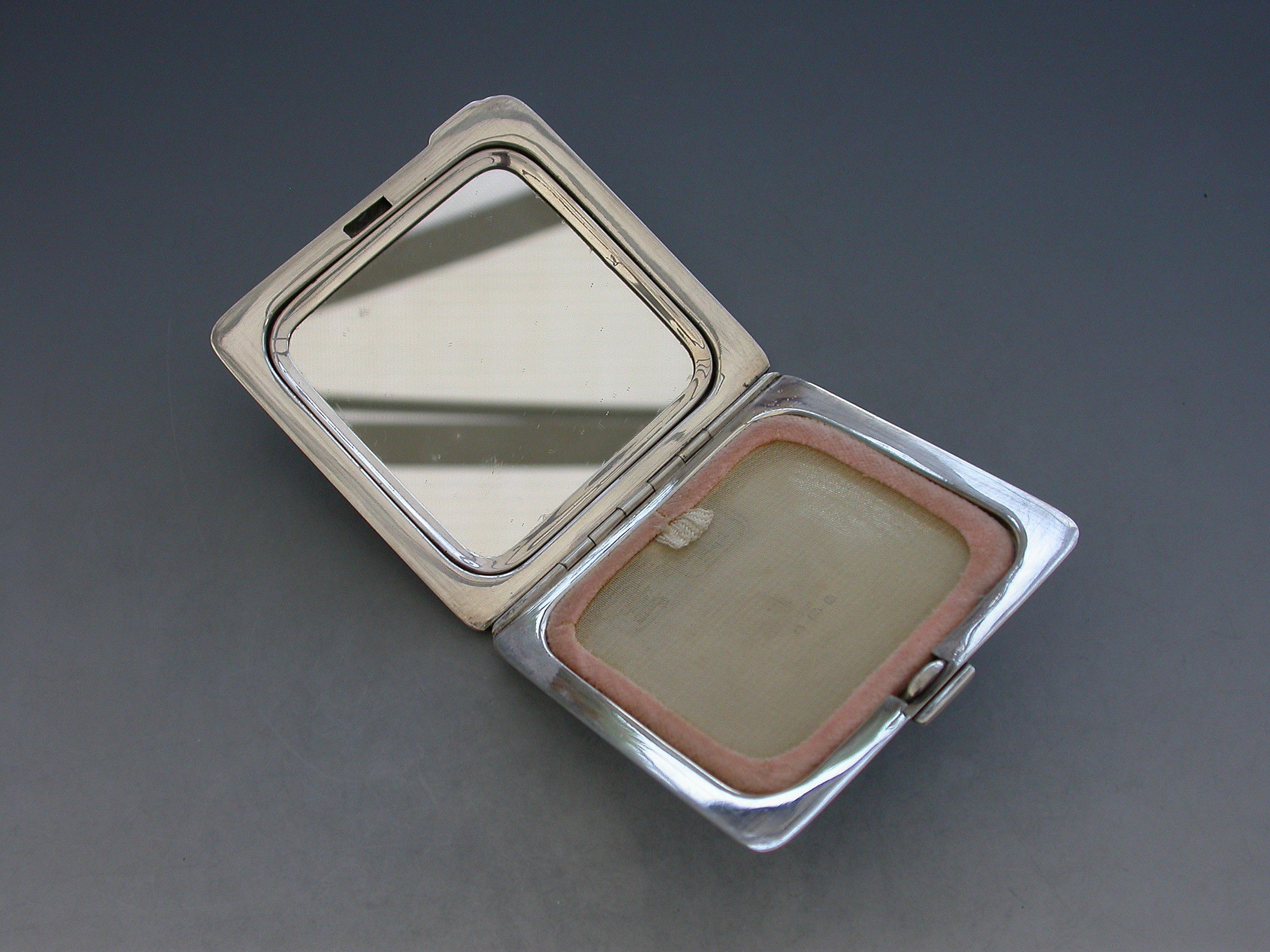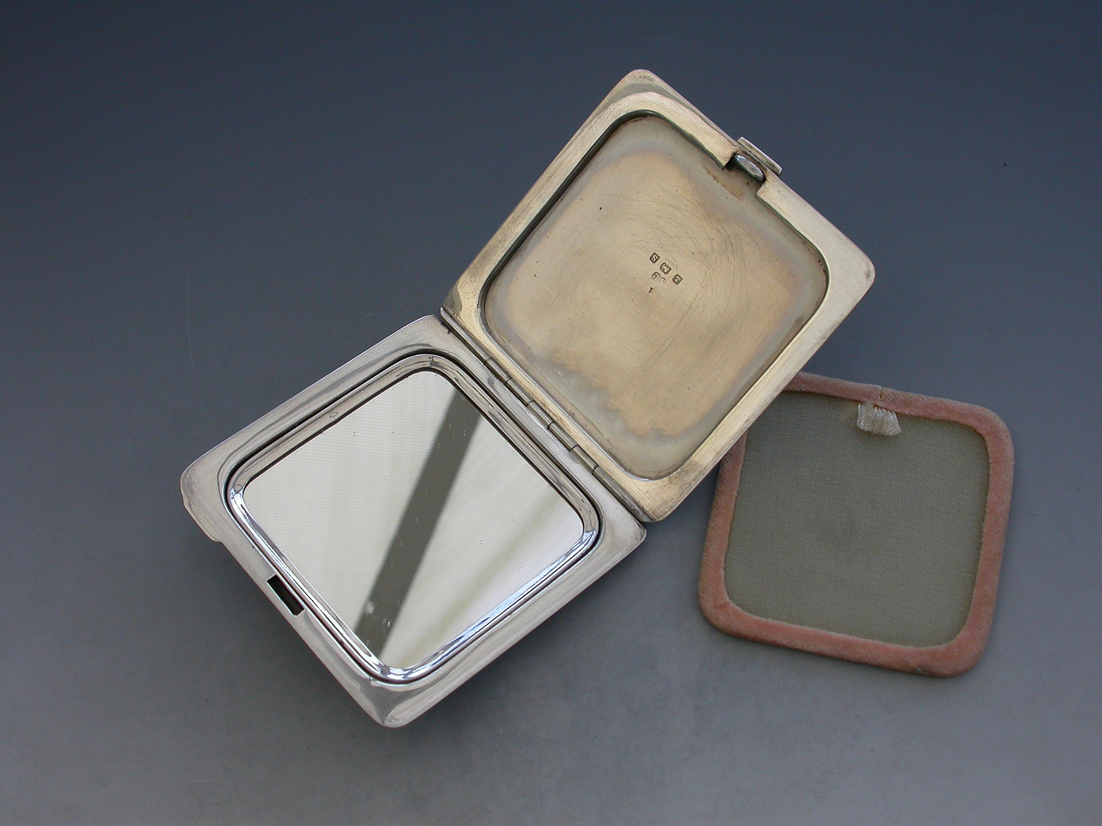 A good quality mid 20th century silver and enamel Compact of square form, the cover with finely painted enamel Kingfisher. Engine turned base and interior mirror and powder compartment.
