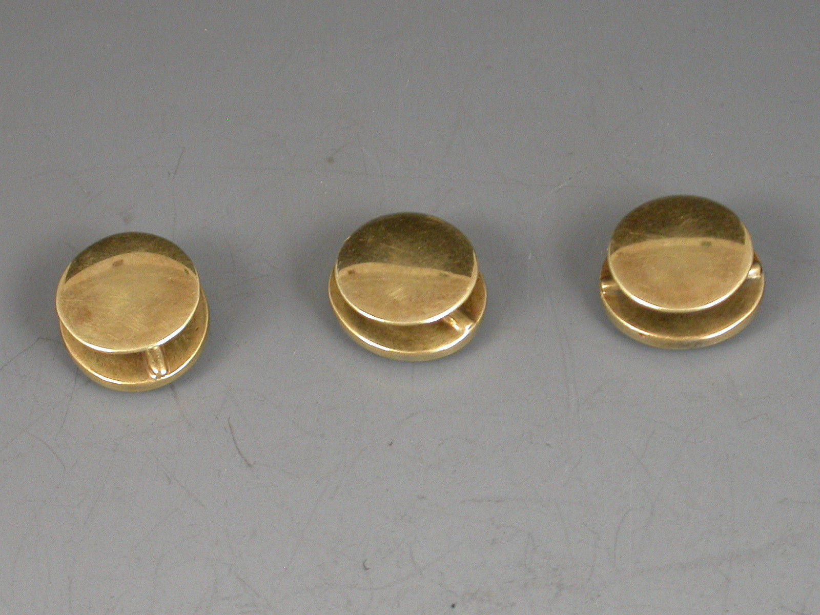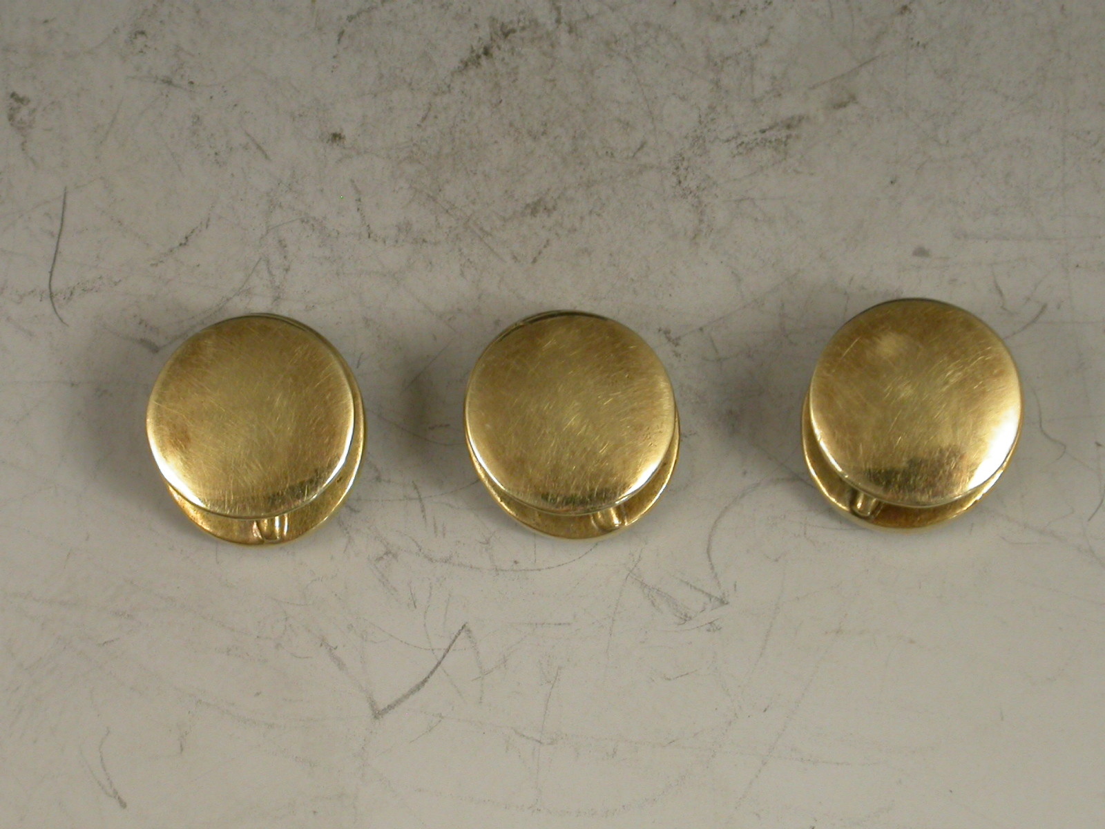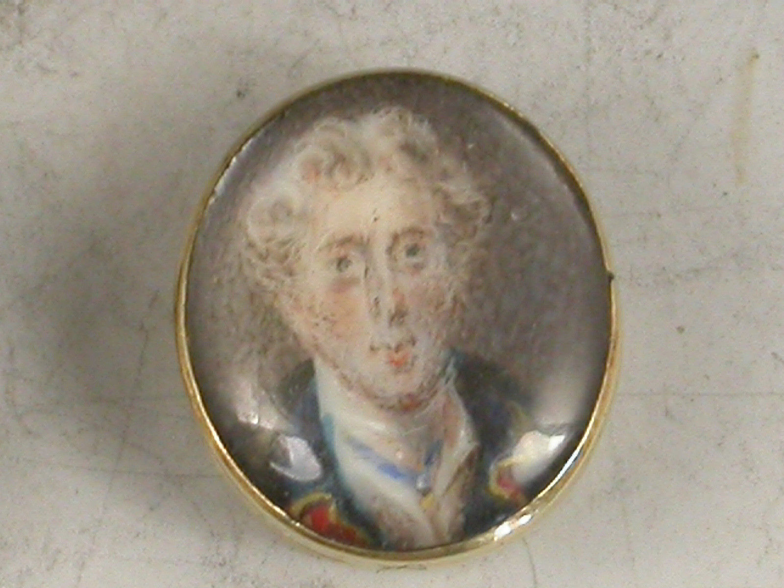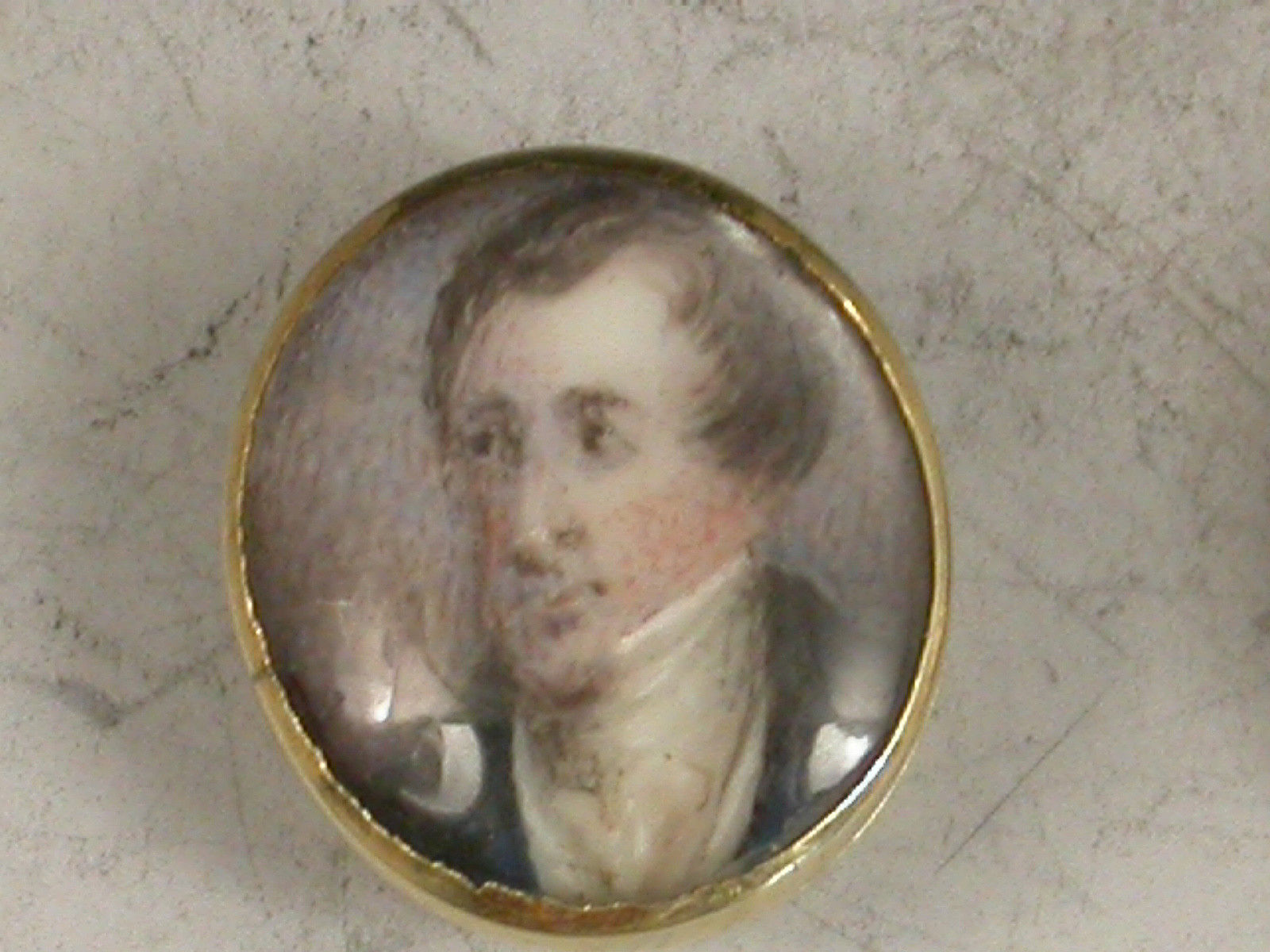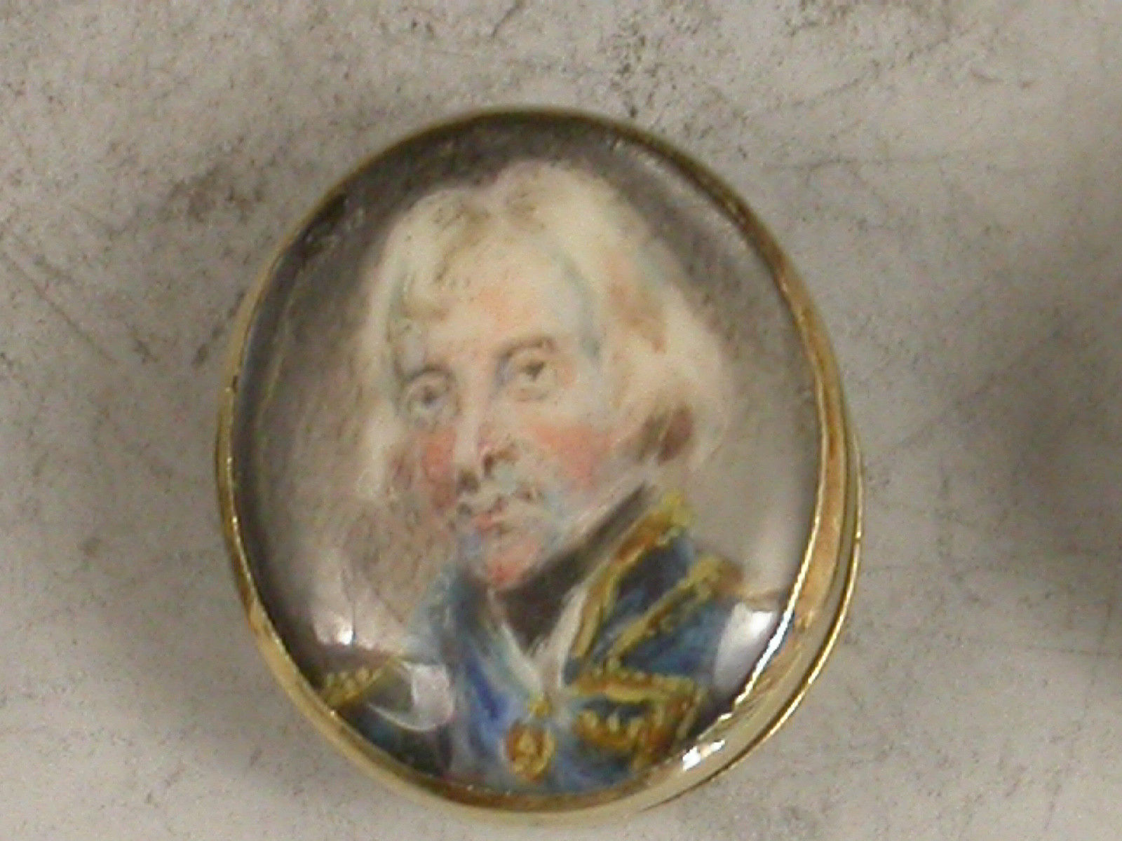 An unusual set of three early 19th century gold Studs each one inset with a miniature painting of a gentleman (under glass), one depicting Viscount Horatio Nelson, the other two unidentified, possibly Captains Duff and Cooke who also died at the Battle of Trafalgar in 1805.