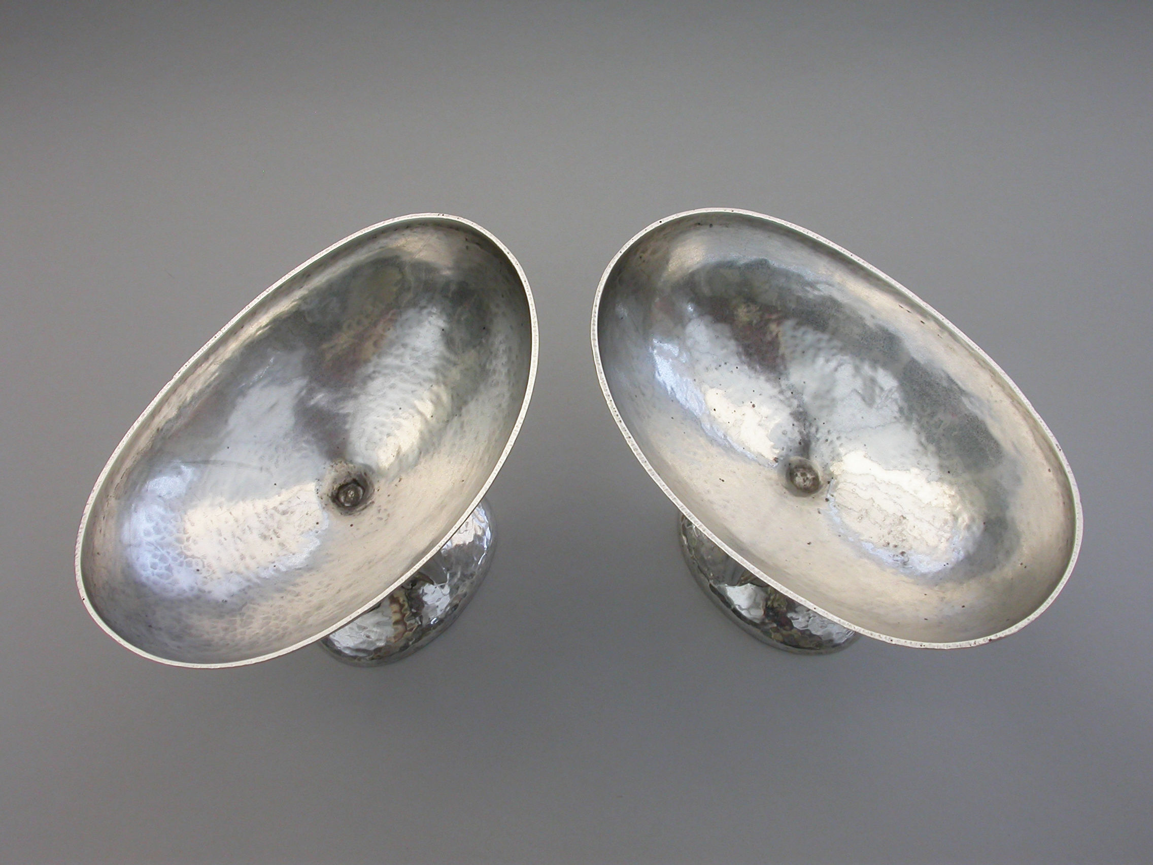 Pair Arts & Crafts Hammered Silver Bowls