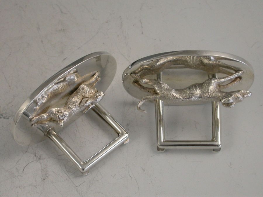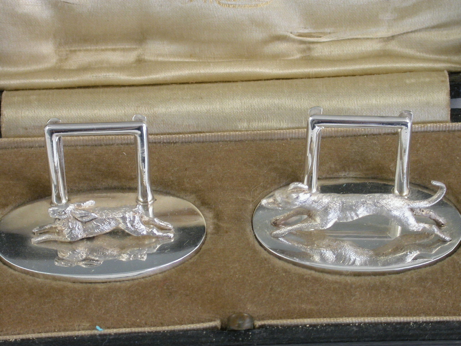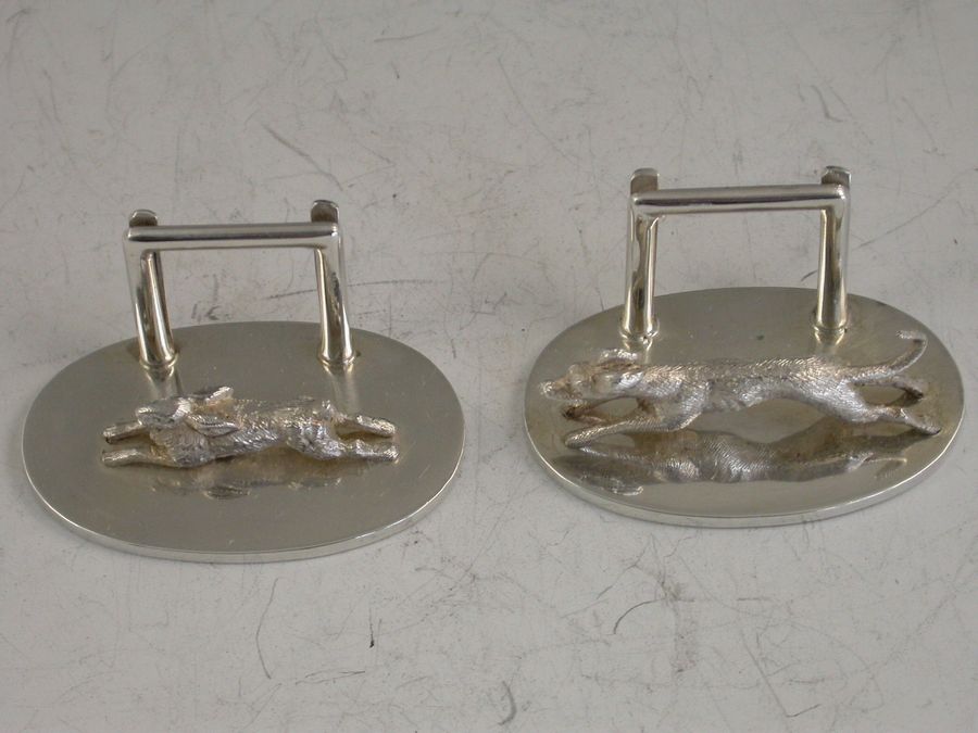 Pair Cased George V Hare & Hound Menu Holders