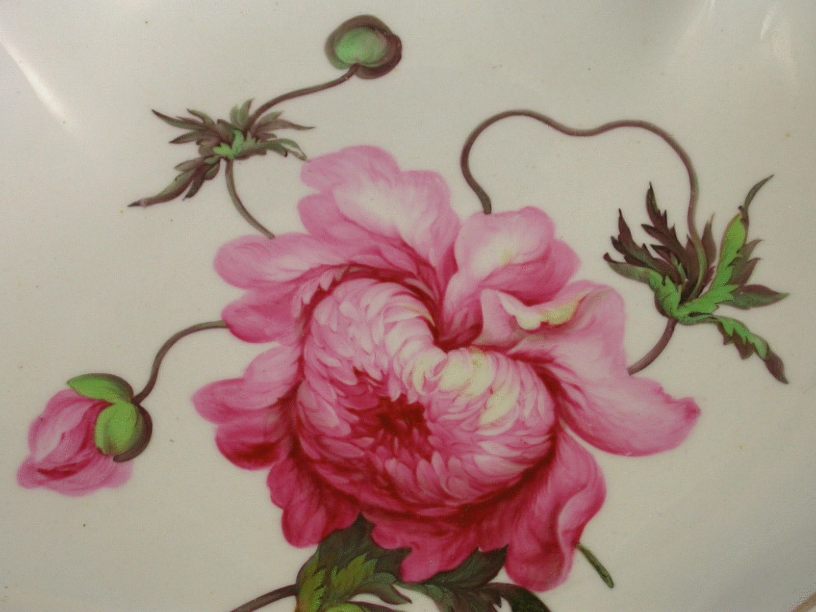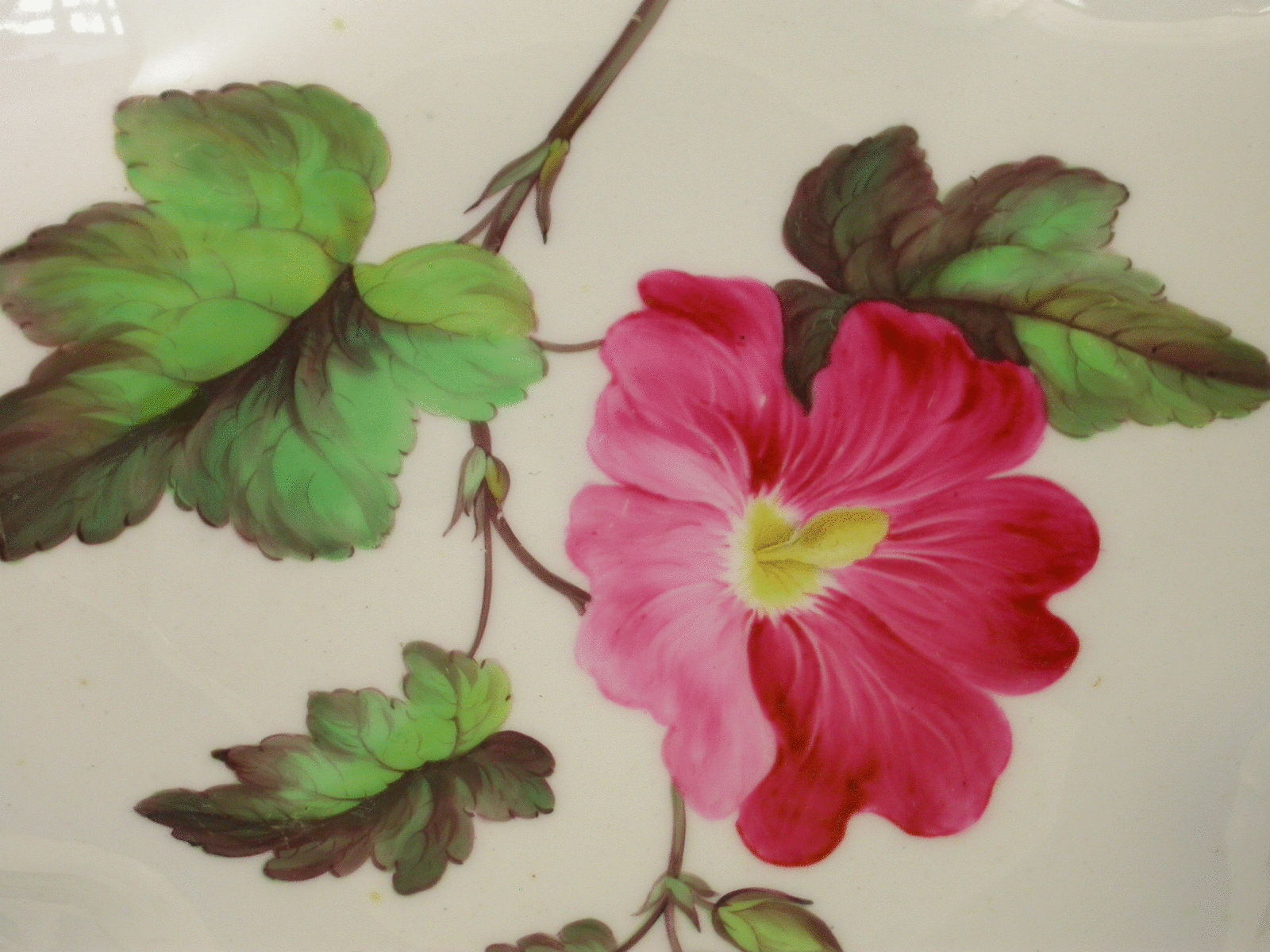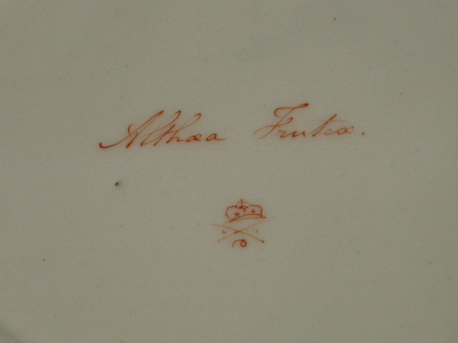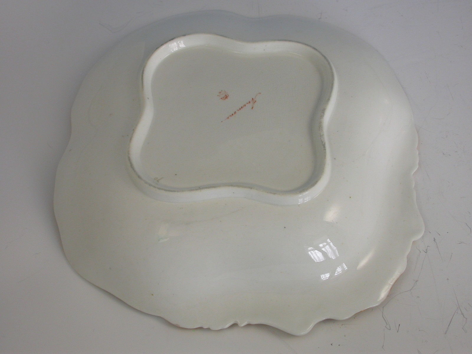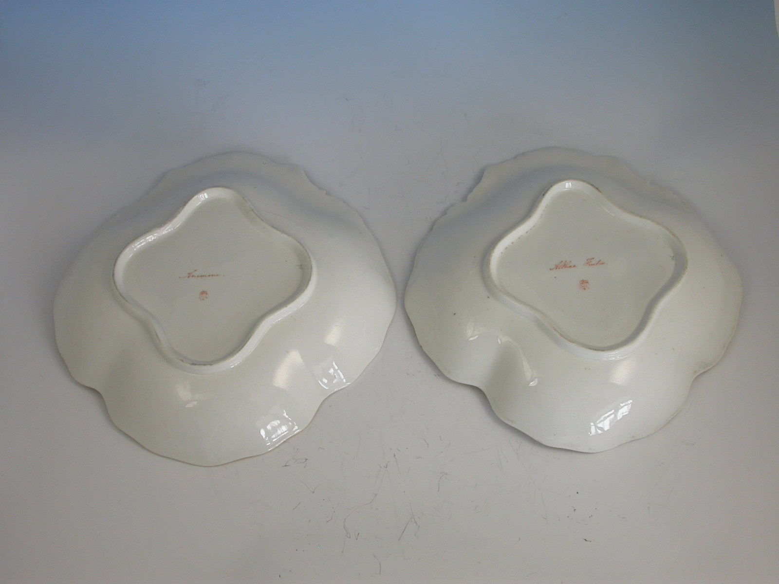 A good pair of Derby shell shaped Dishes with gilt borders and highlights, one painted with Anemone the other with Althea Fintex.