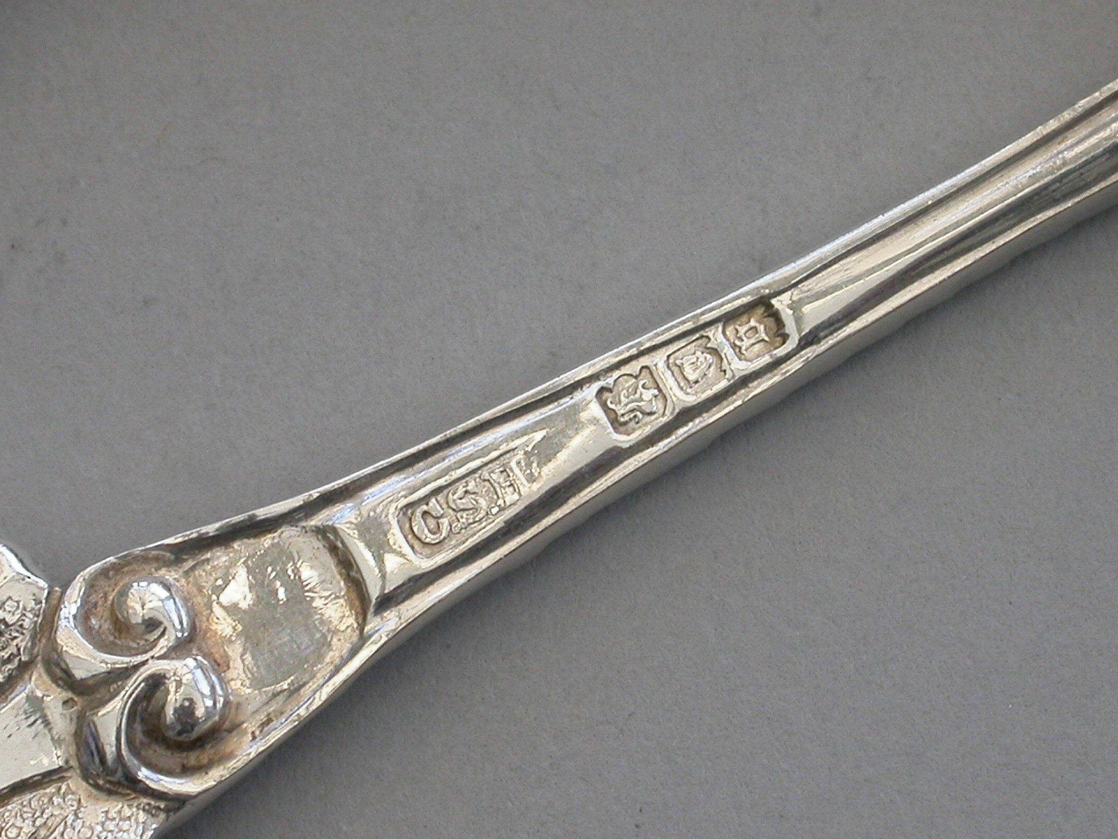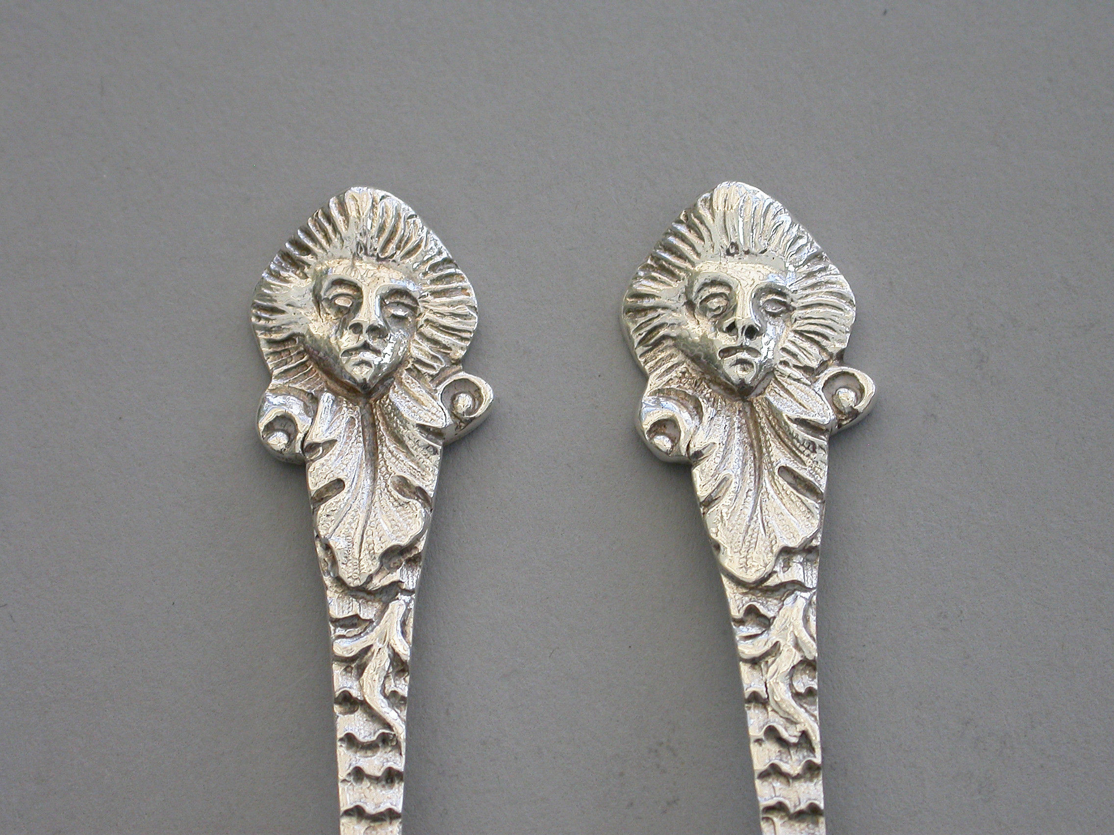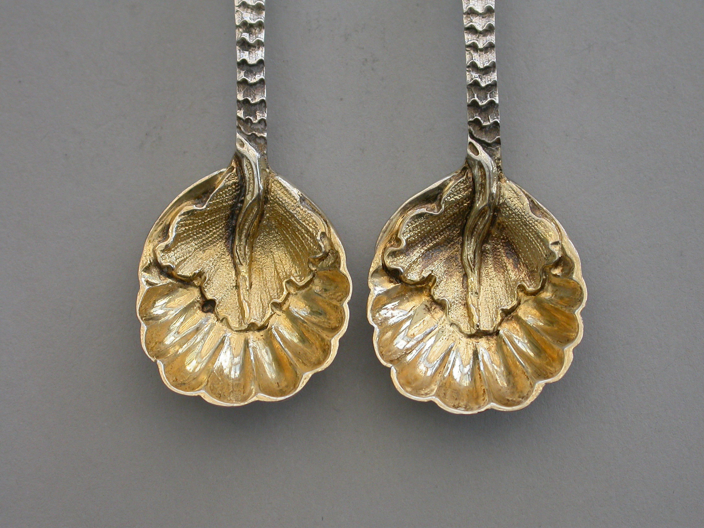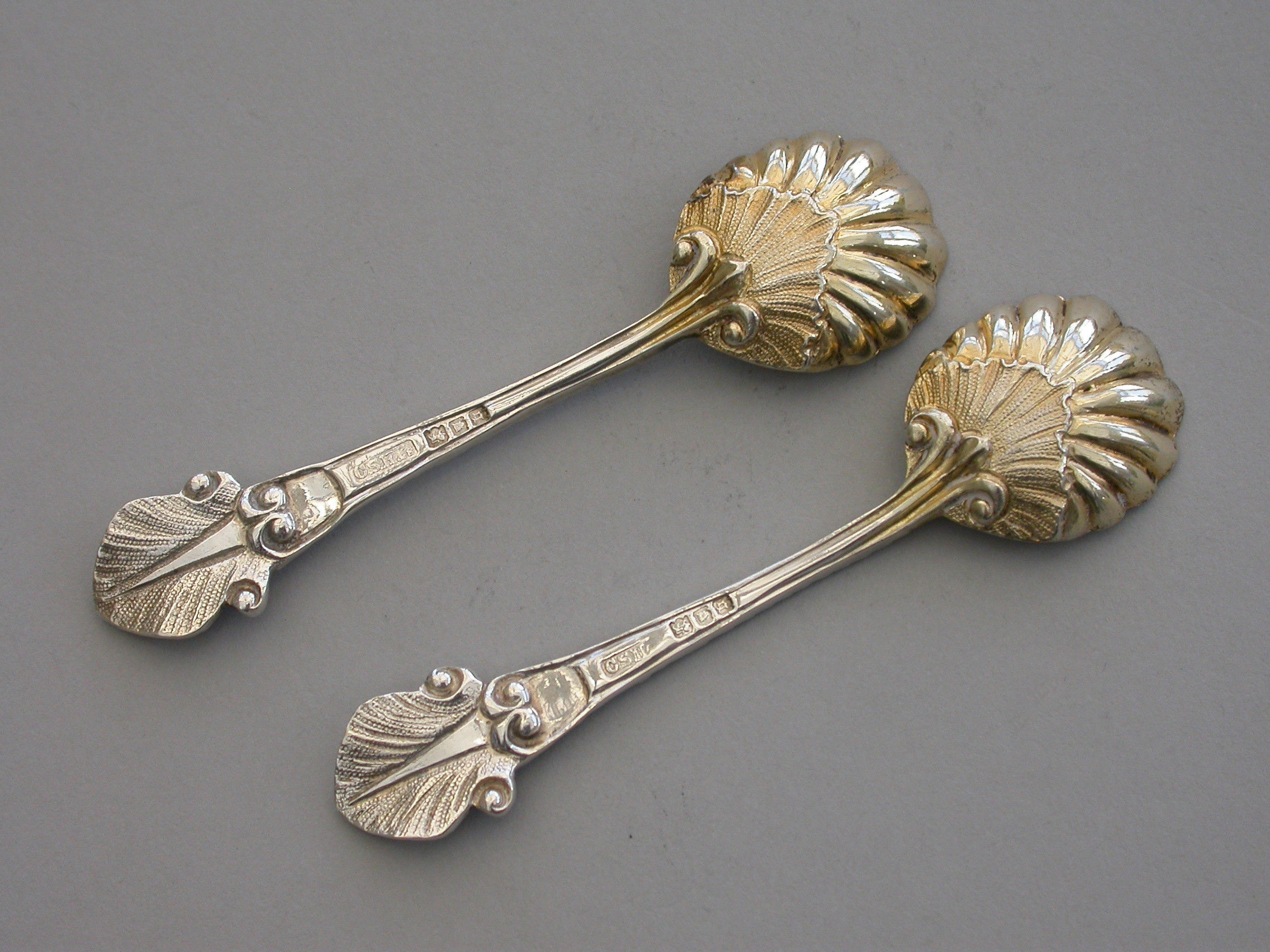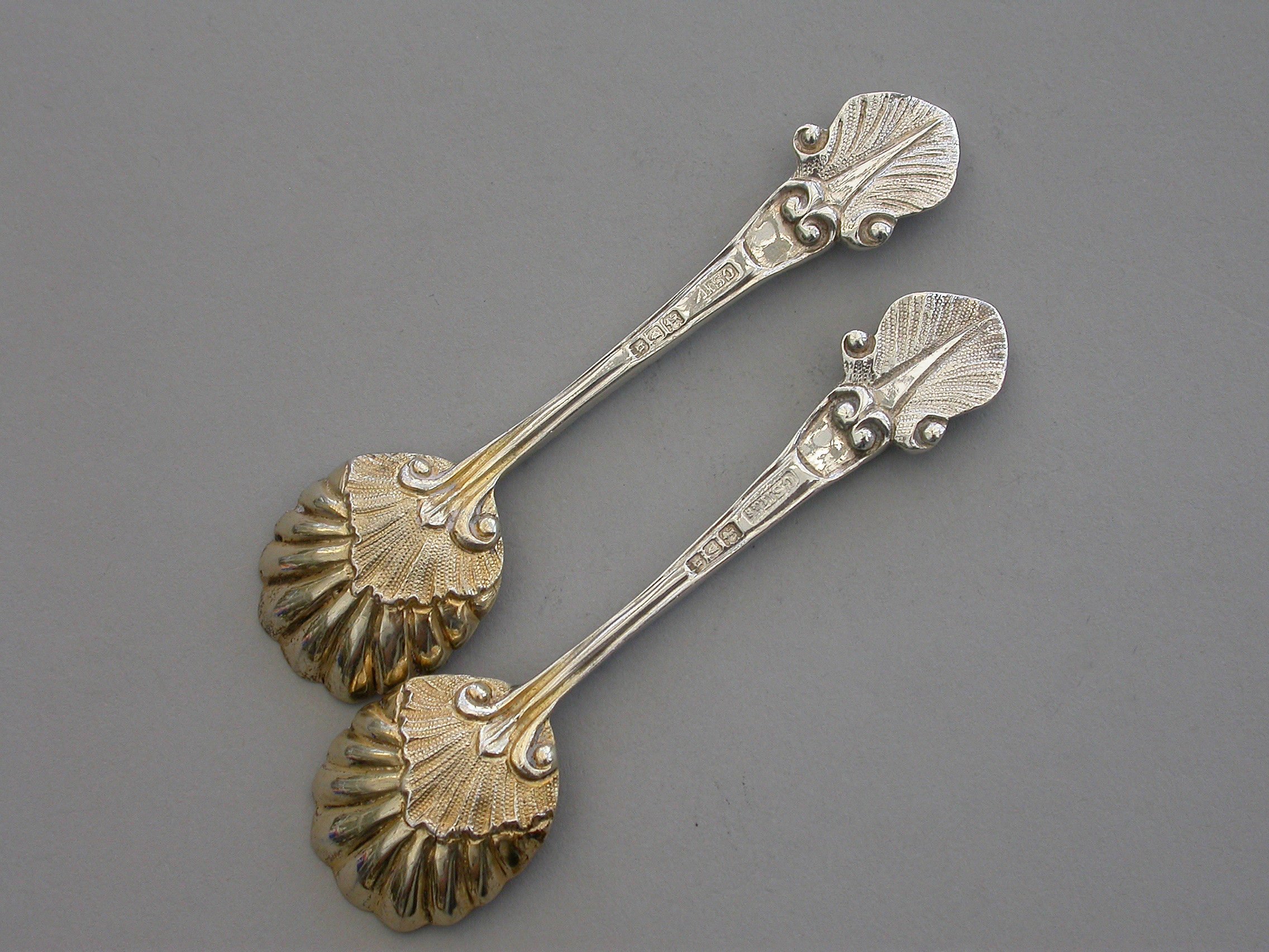 Pair Early 20th Century Rococo Silver Salt Spoons