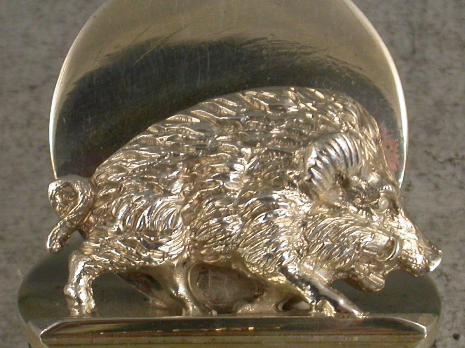Pair Edward VIII Cast Silver 'Running Boar' Menu Holders