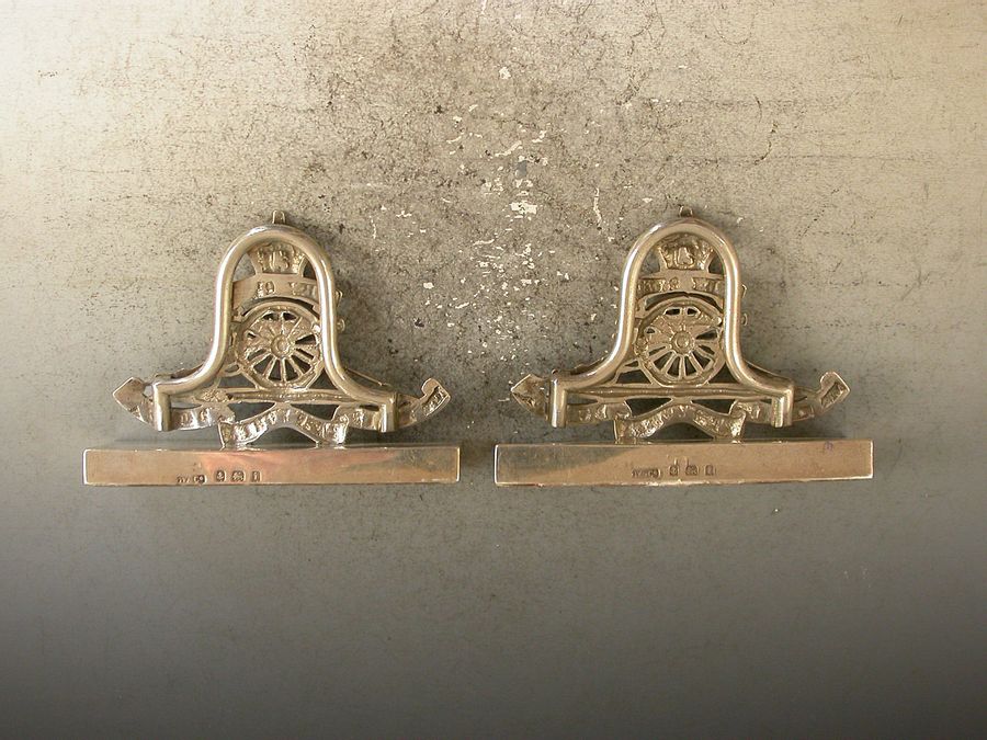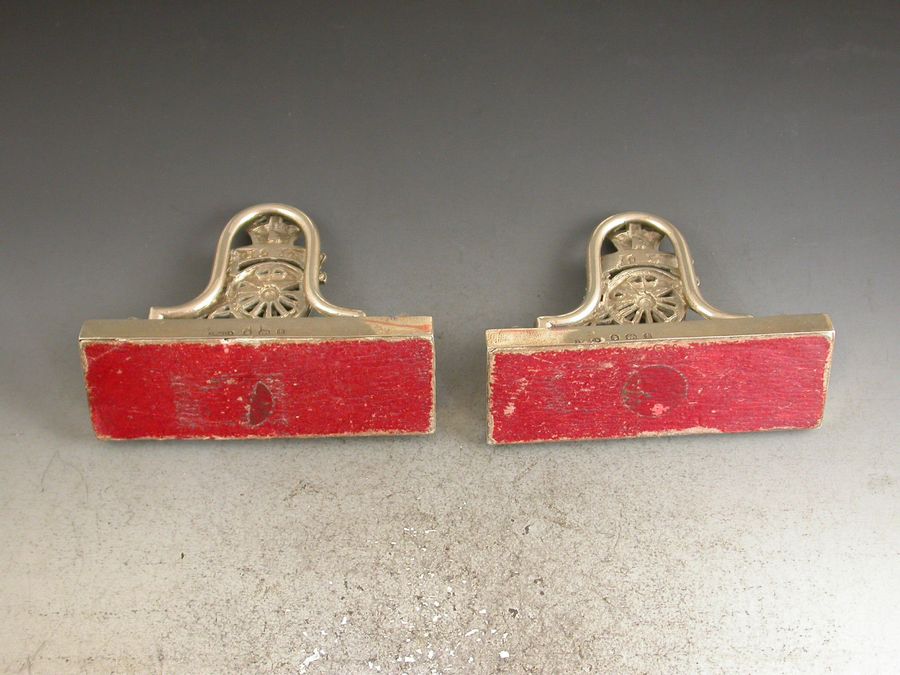 Pair Edwardian Silver Royal Artilary Badge Menu Holders