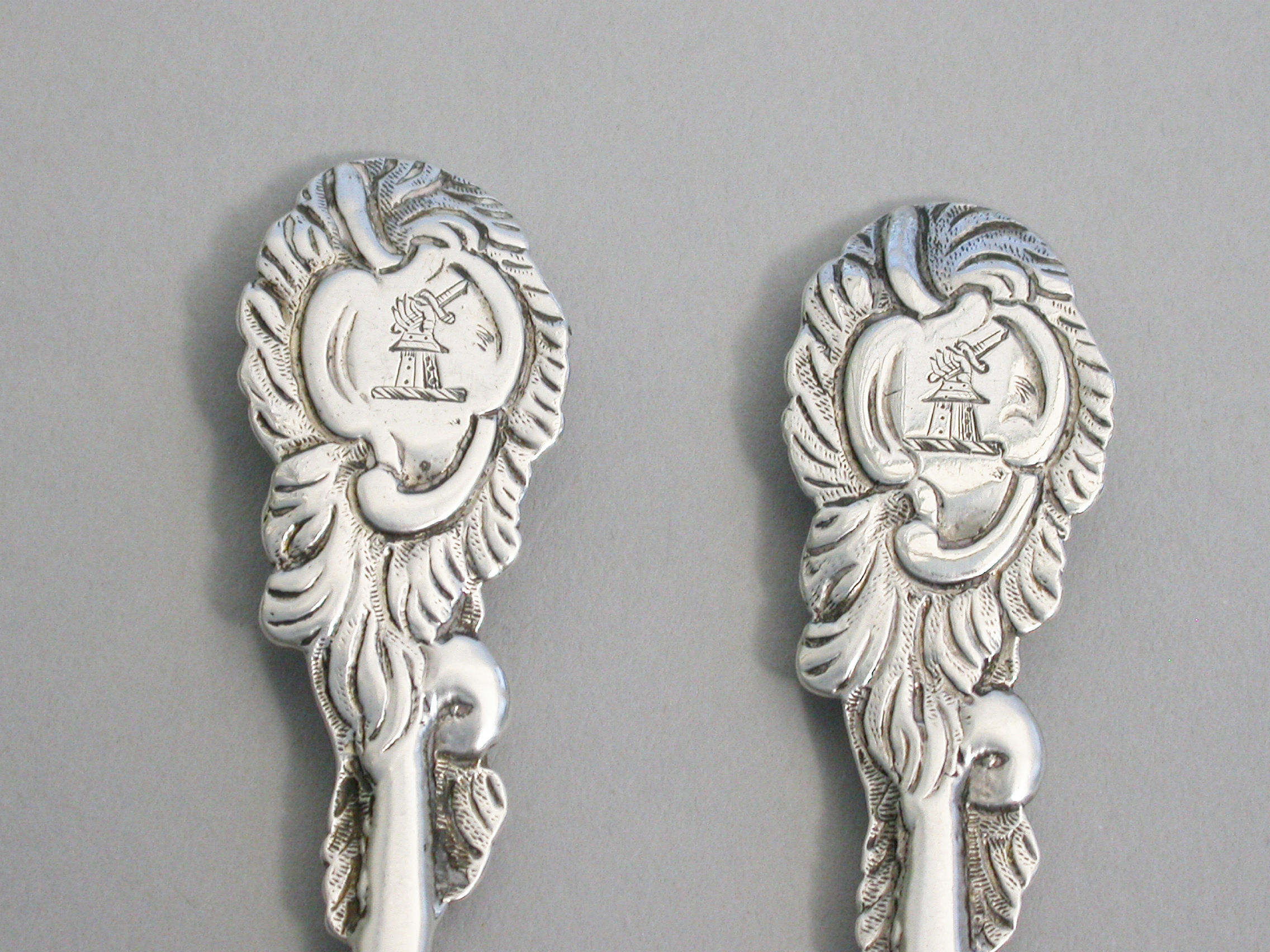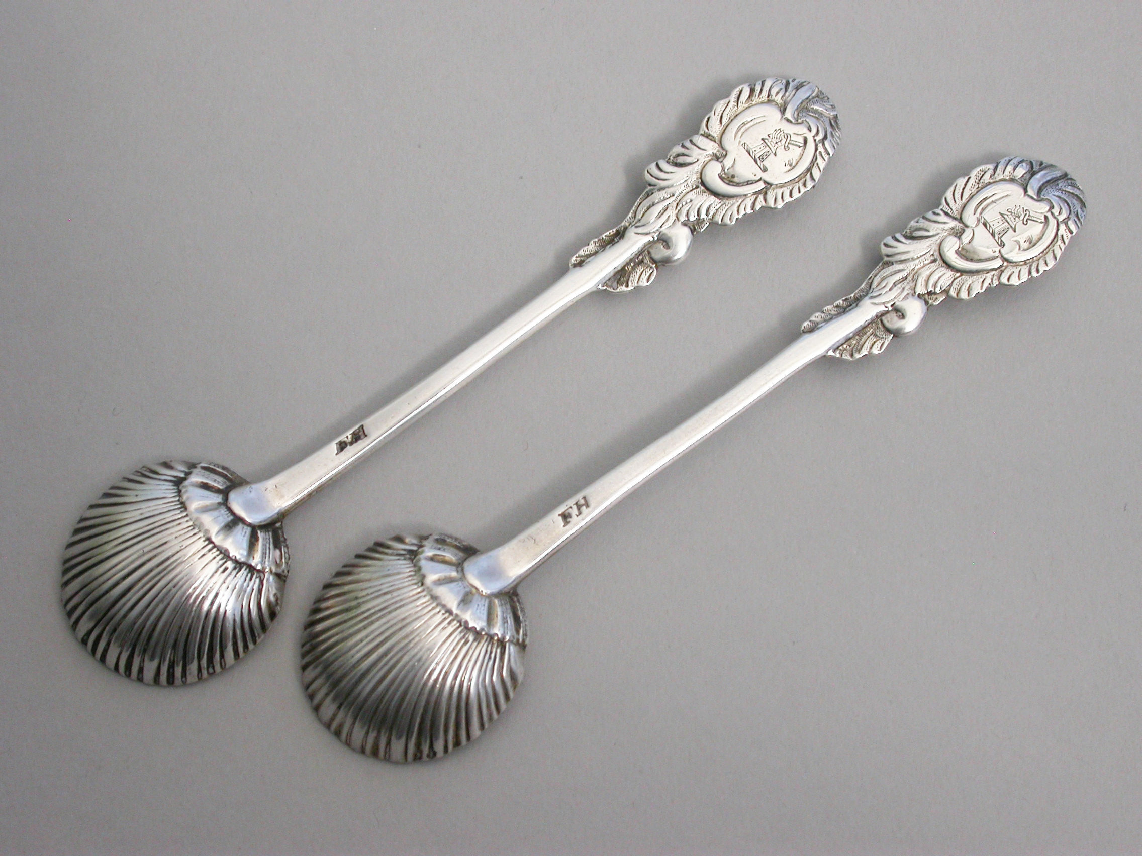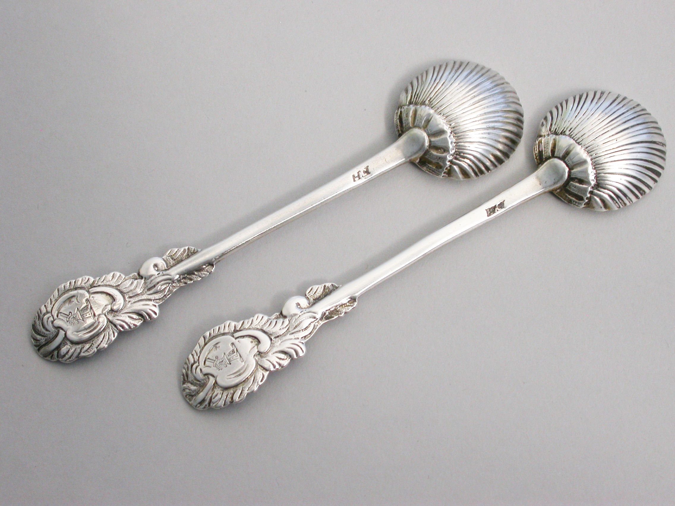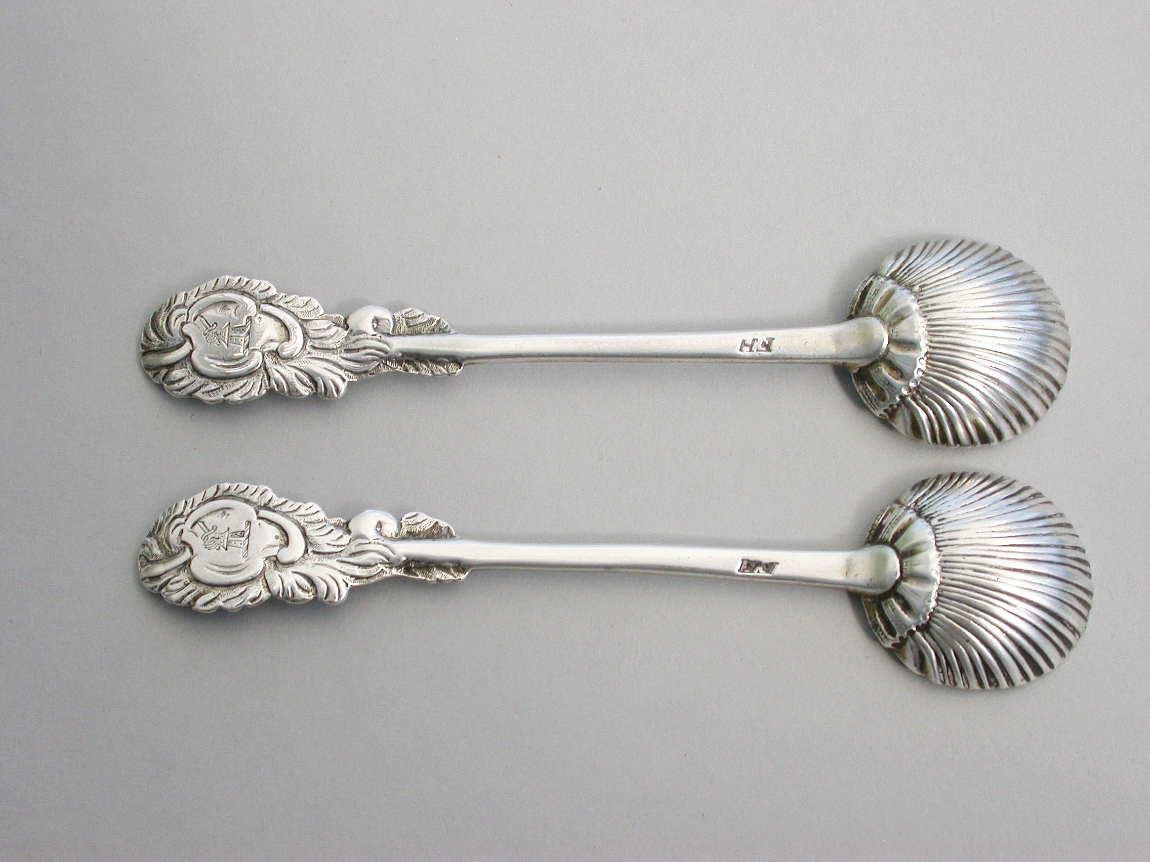 Pair George II Cast Naturalistic Silver Salt Spoons