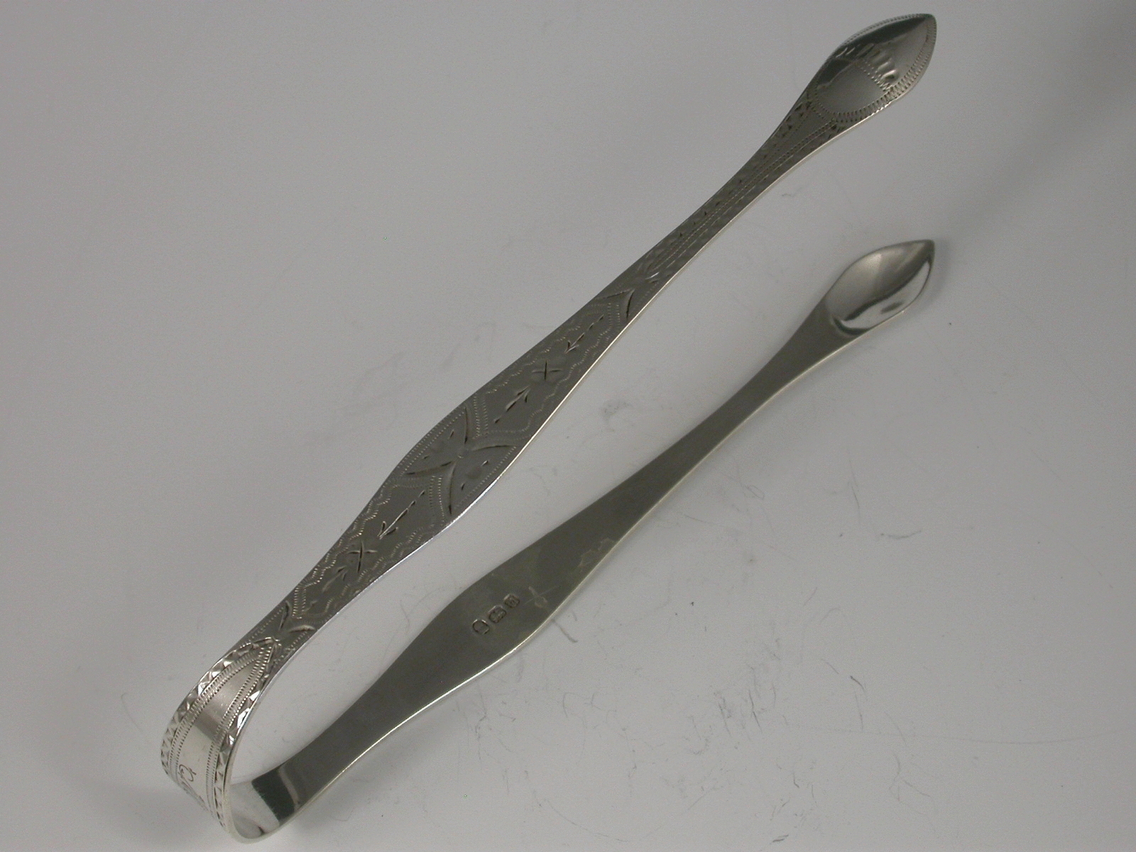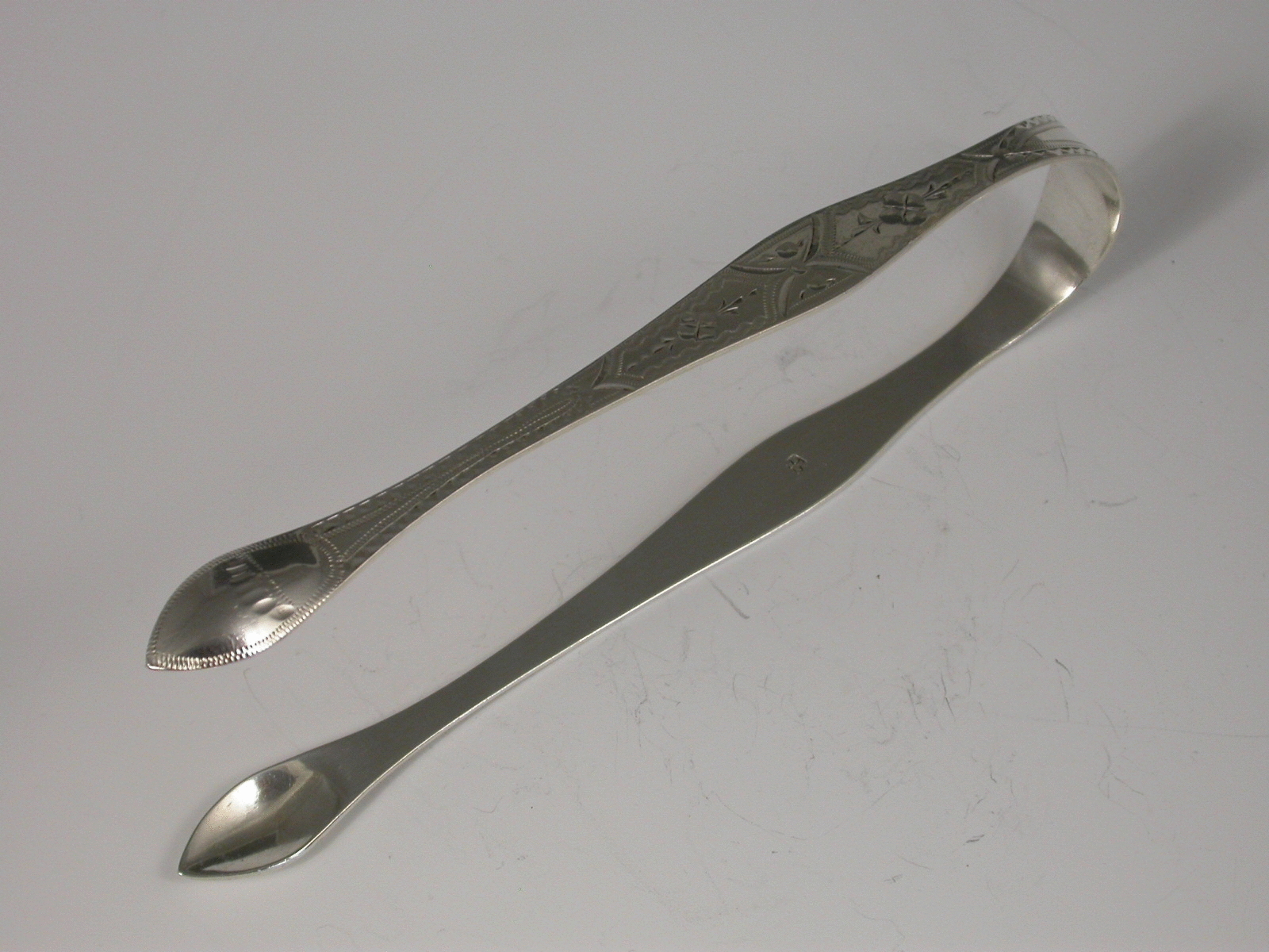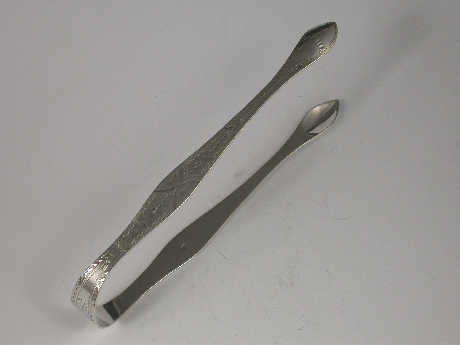 Pair George III Antique Silver Bright Cut Engraved Sugar Tongs