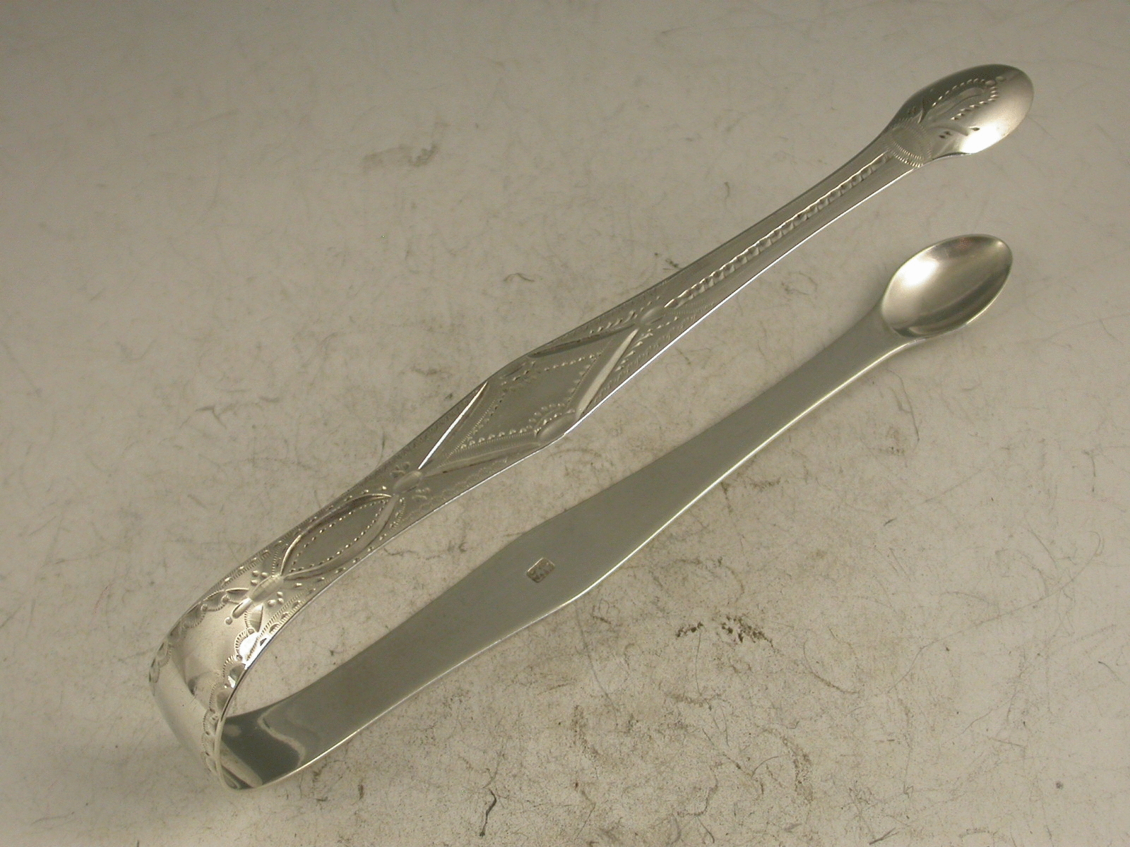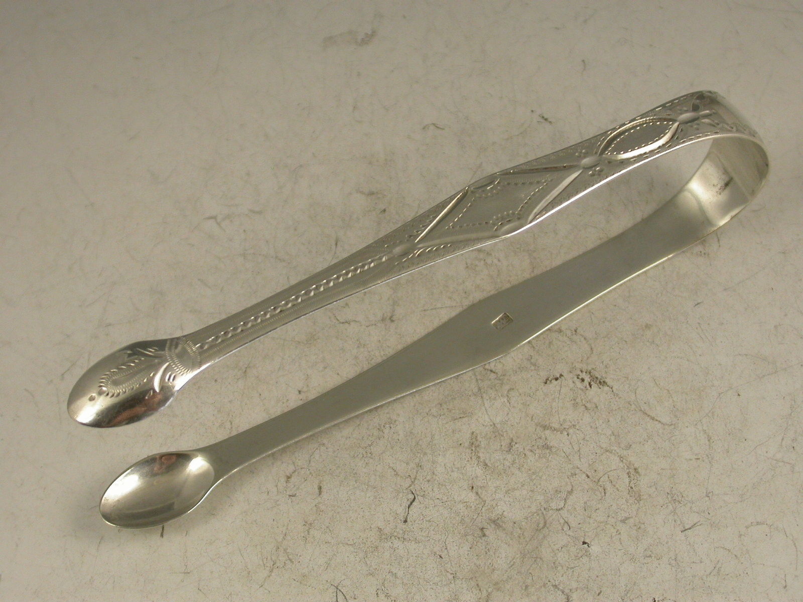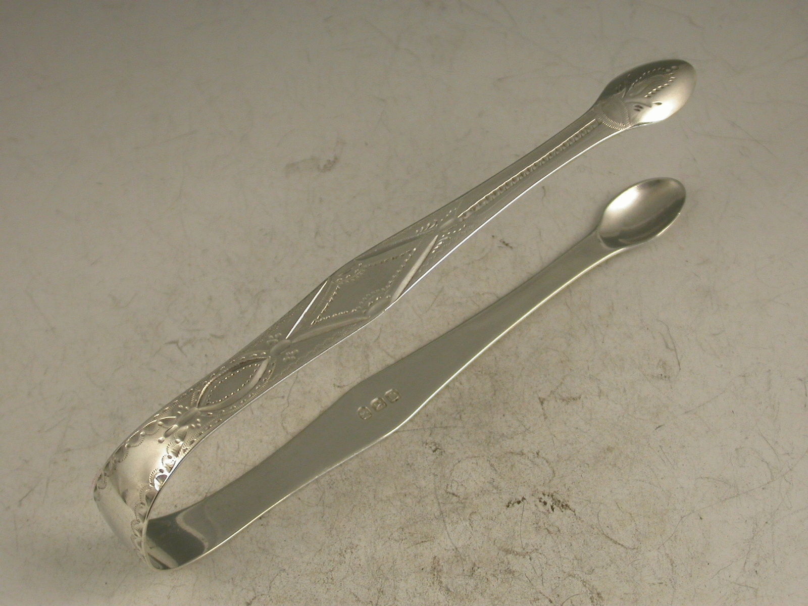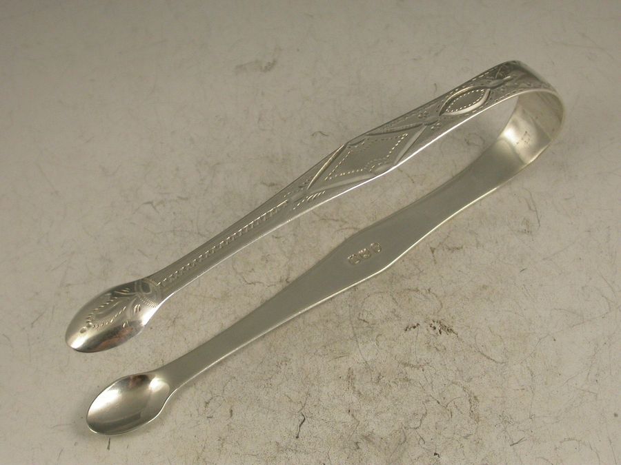 Pair George III Antique Silver Bright-Cut Engraved Sugar Tongs