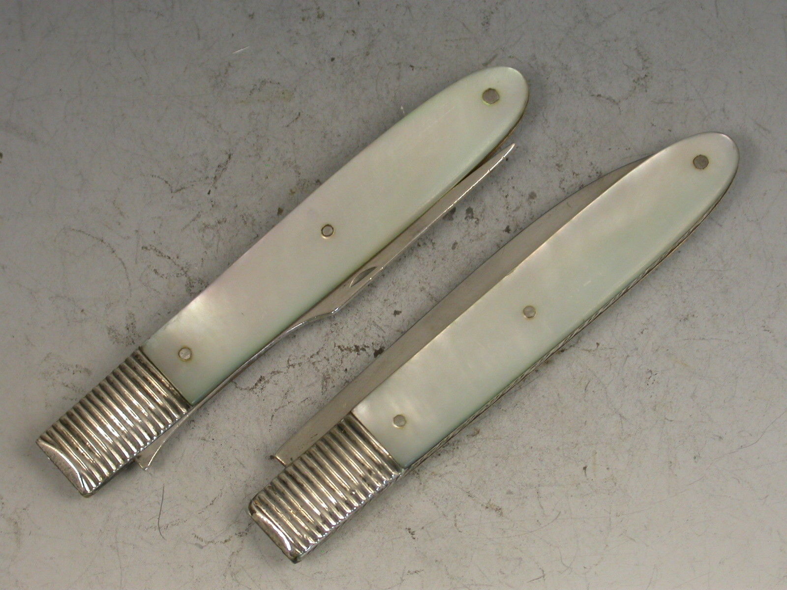 Pair George III Cased Silver & Mother of Pearl Folding Fruit Knife & Fork