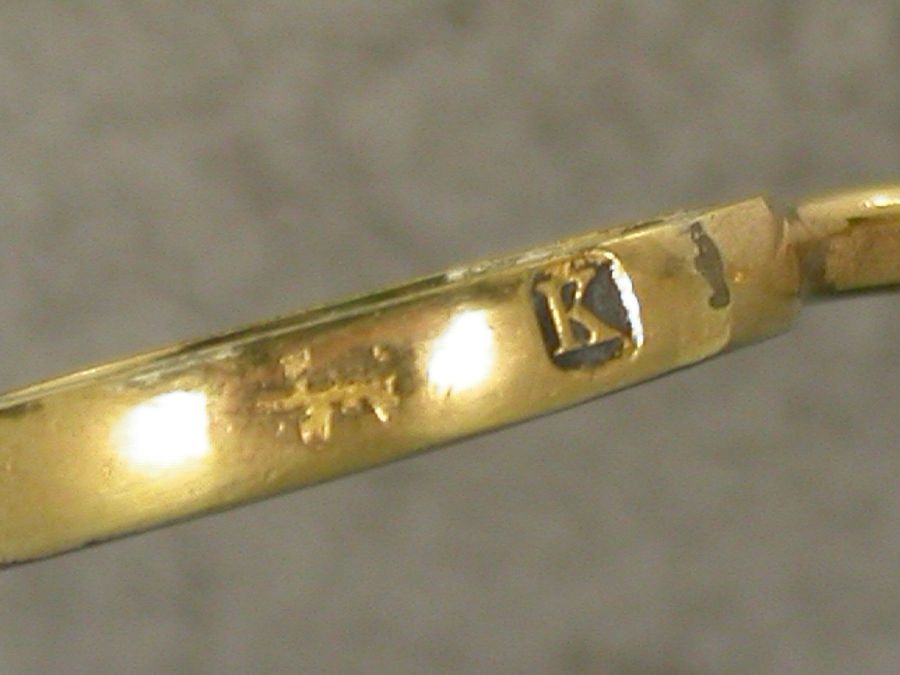 Pair George III Cast Antique Silver Gilt Stork Ribbon Threaders