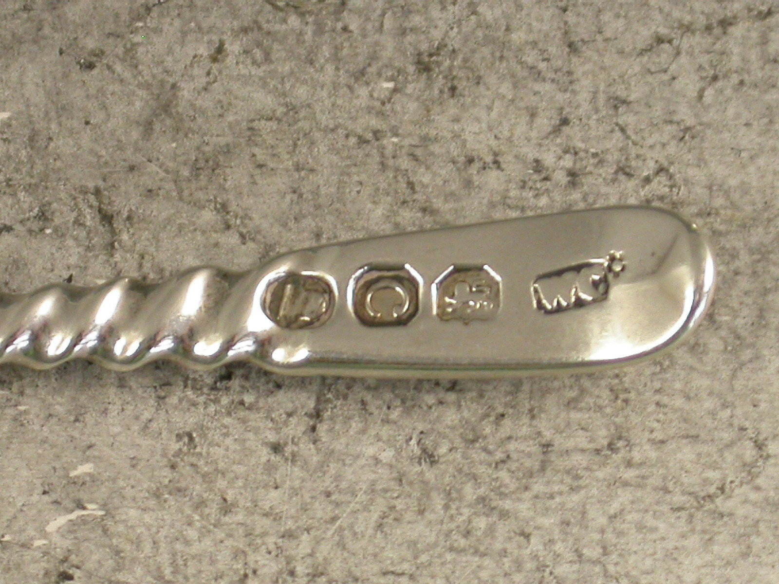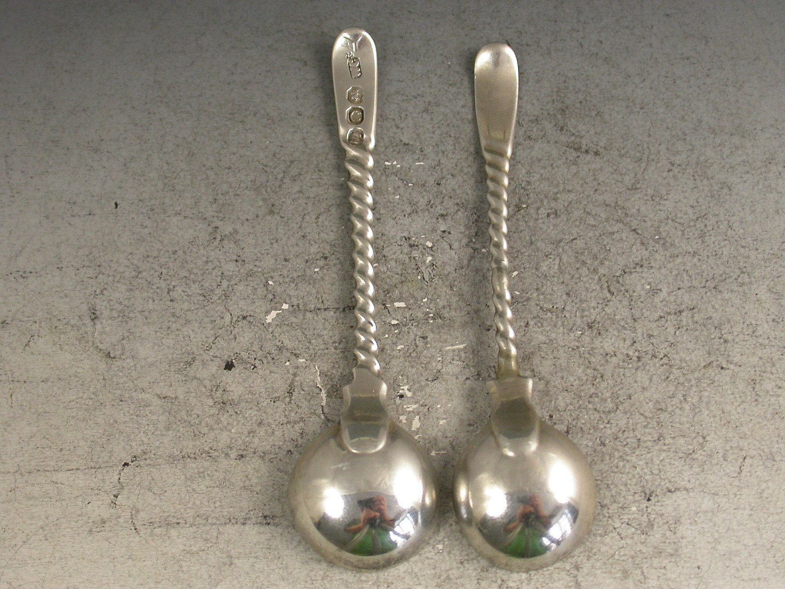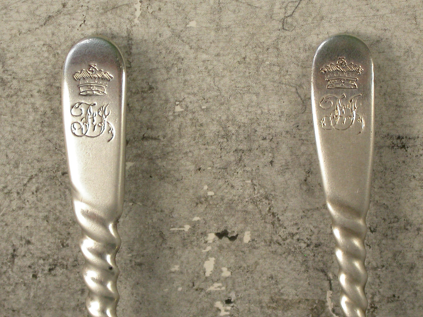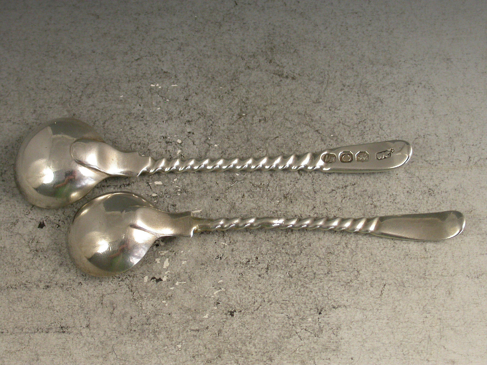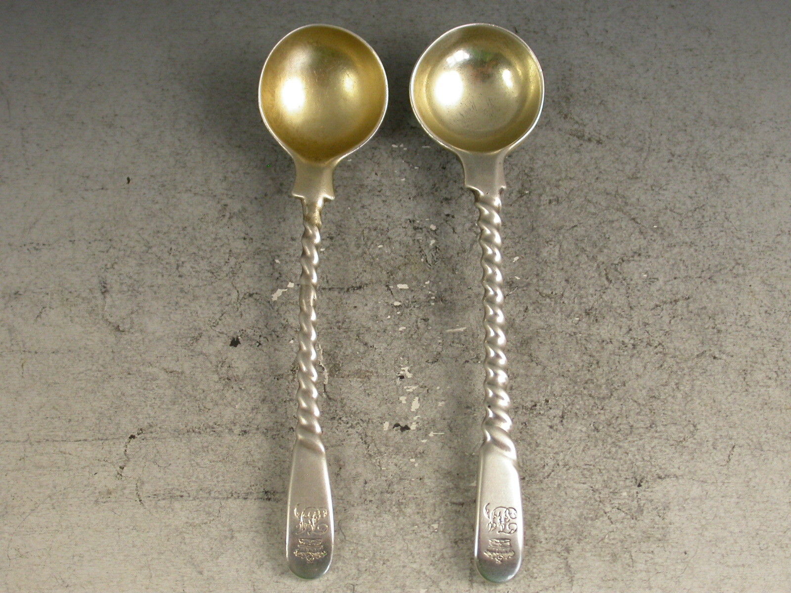 A pair of George III silver Salt Spoons with circular gilded bowls and barley-twist stems, the handles engraved with a Viscounts Coronet and cypher for Smith, Viscount Hambleden of County Buckingham (Ex The Hambleden Estate belonging to W.H.Smith).