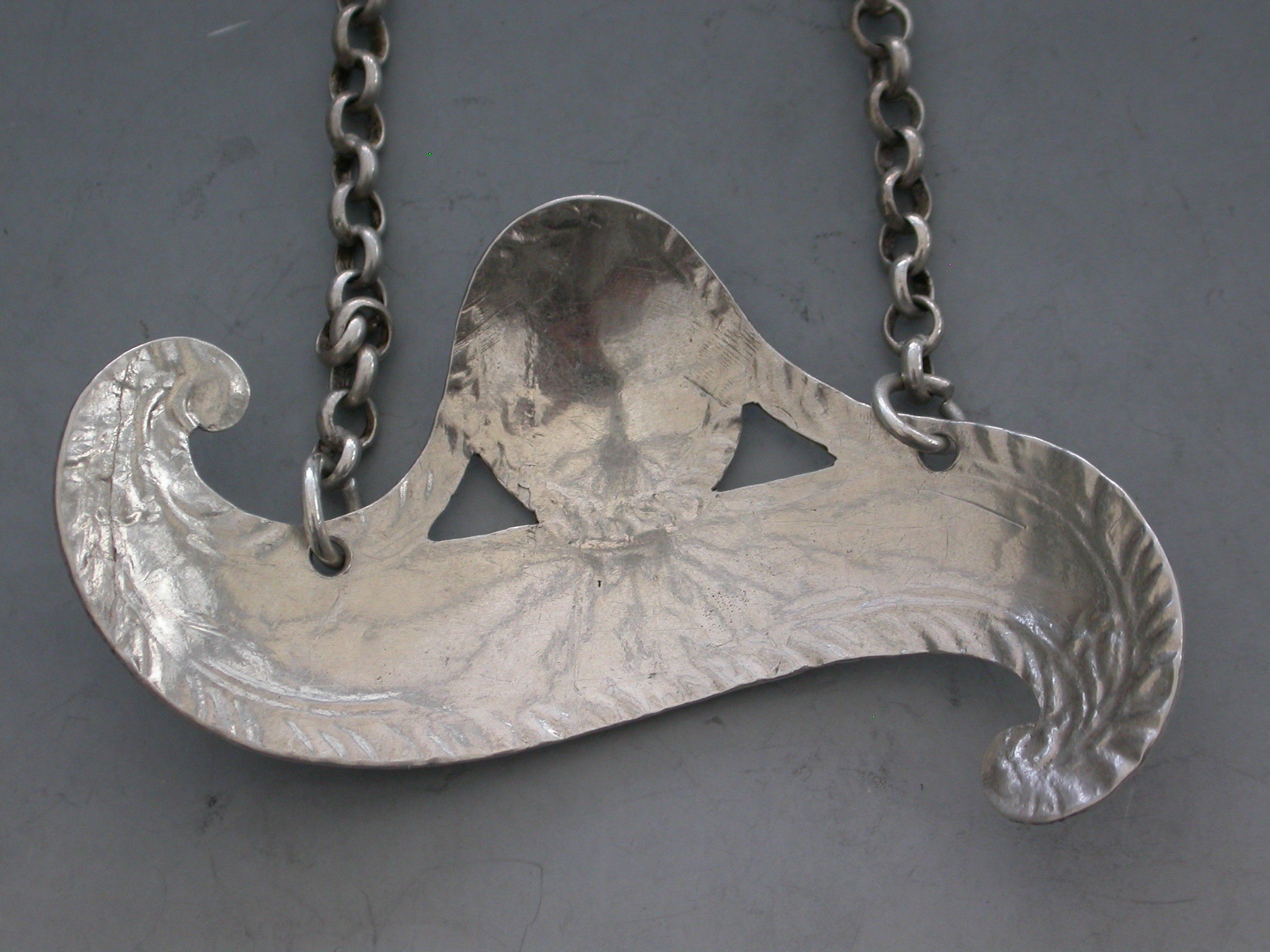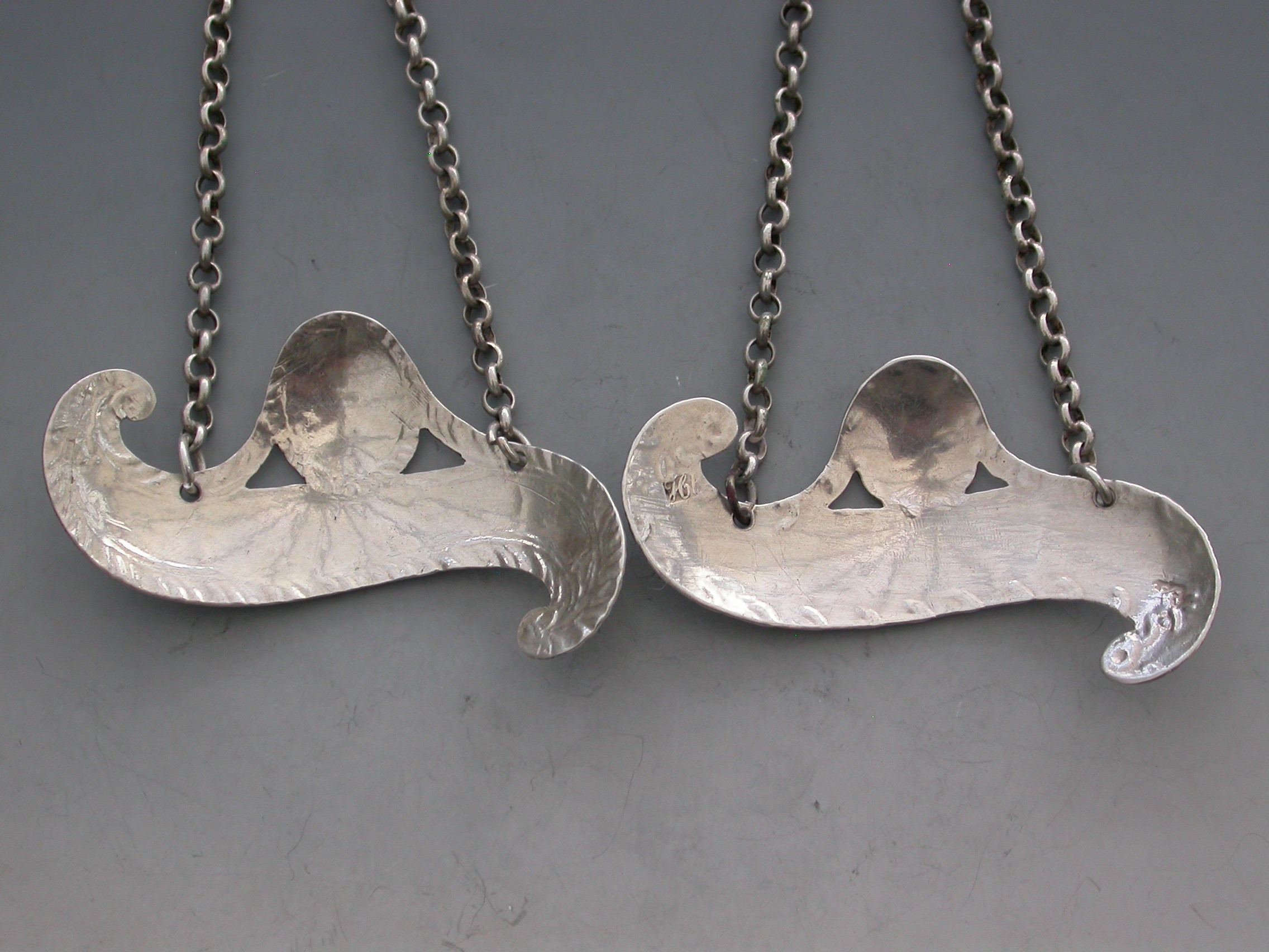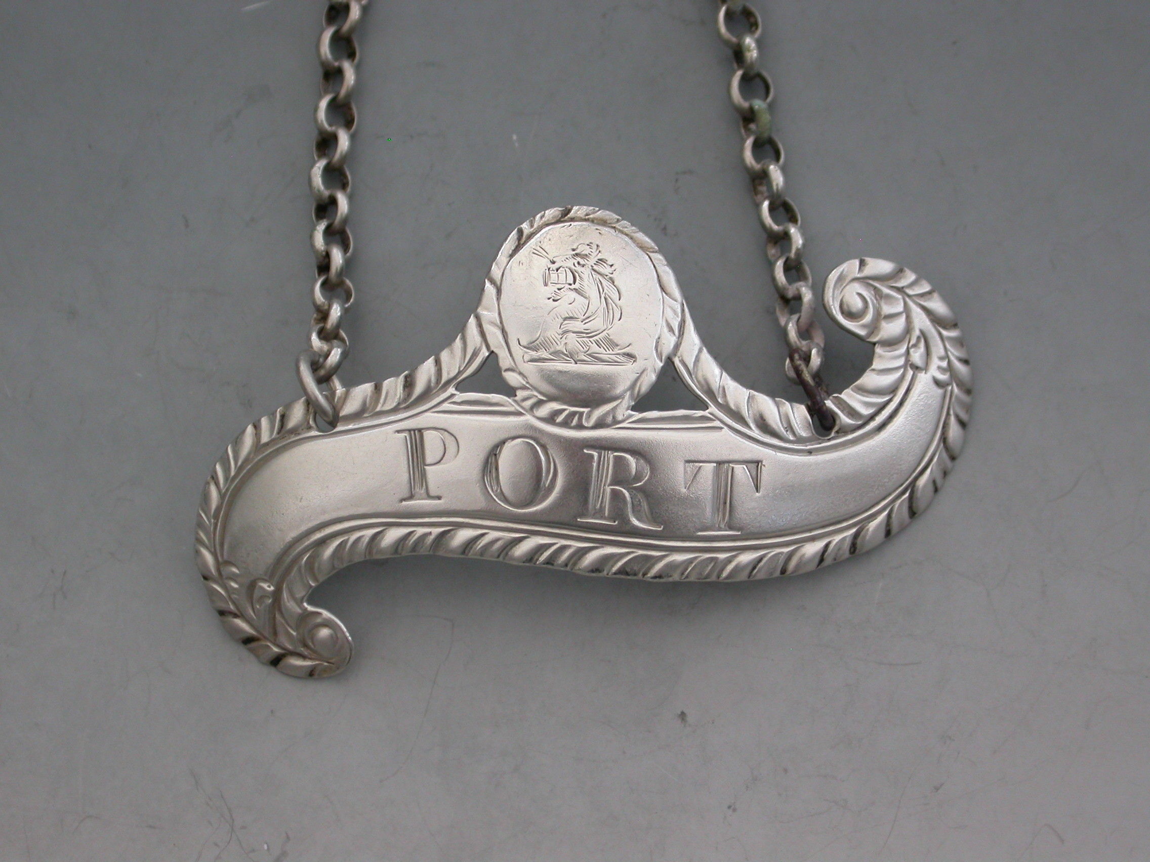 Pair George III Silver Scroll Wine Labels 'Sherry & Port' Crest of Eyton