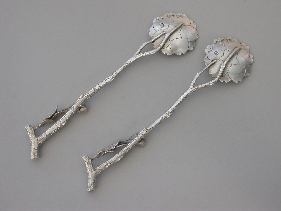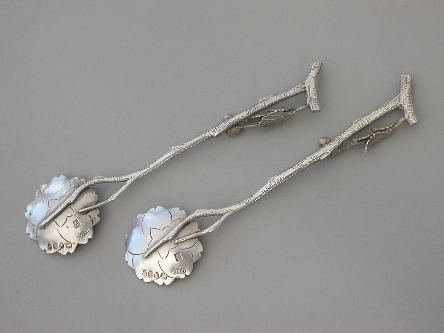 Pair Late 19th Century Imported Japanese Silver Naturalistic Teaspoons