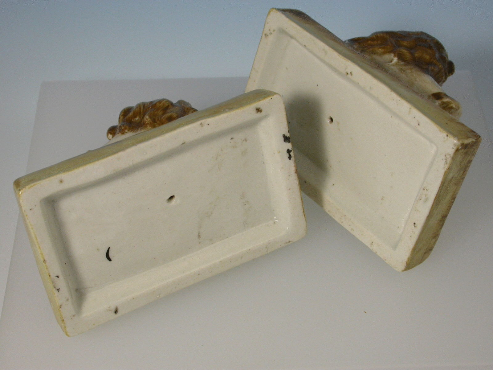 In good condition with no damage or repair, minor glaze crack to corner of one base.