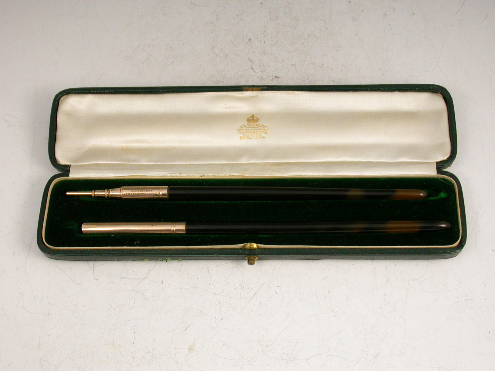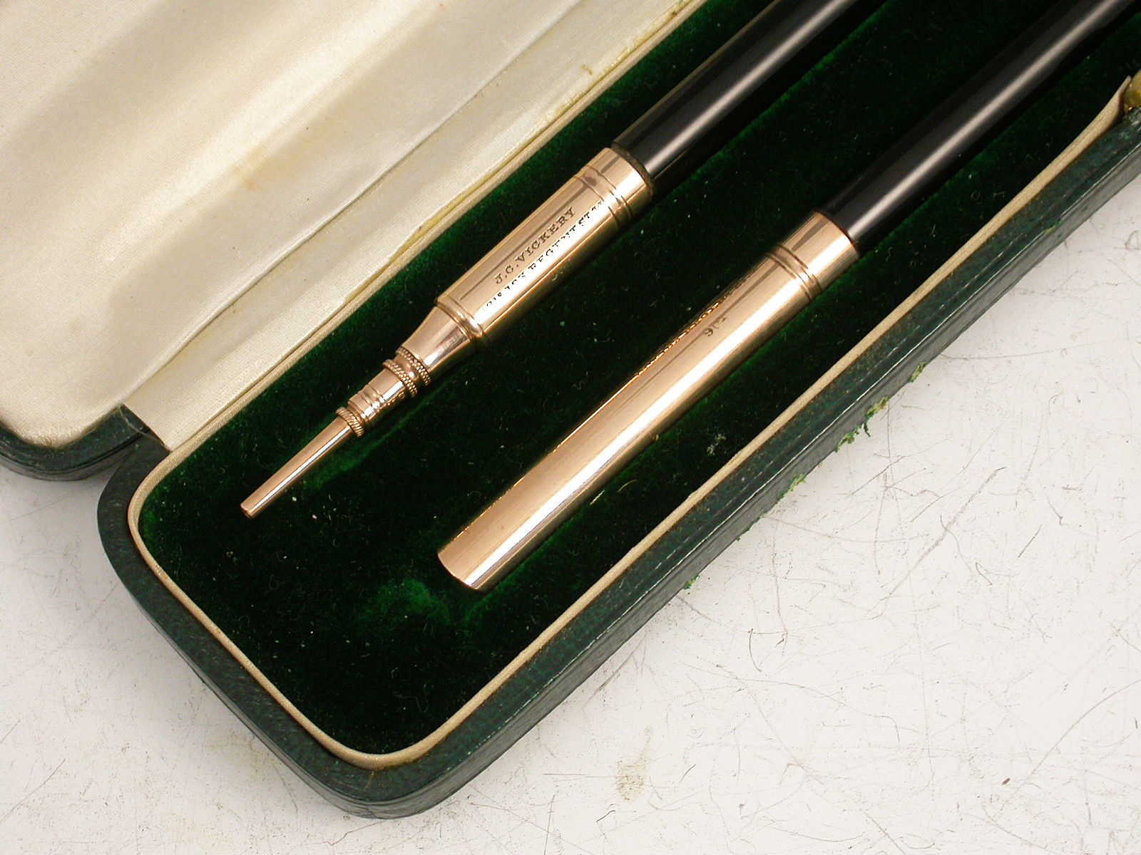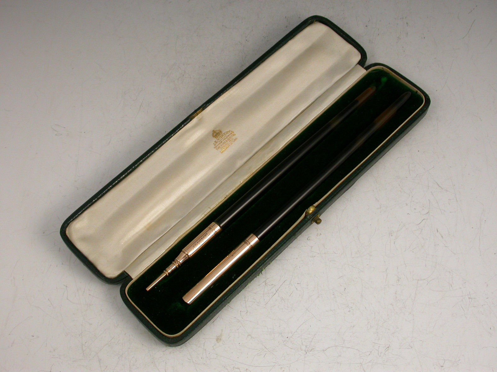 Pair Victorian Cased 9 carat Gold Dip Pen & Propelling Pencil