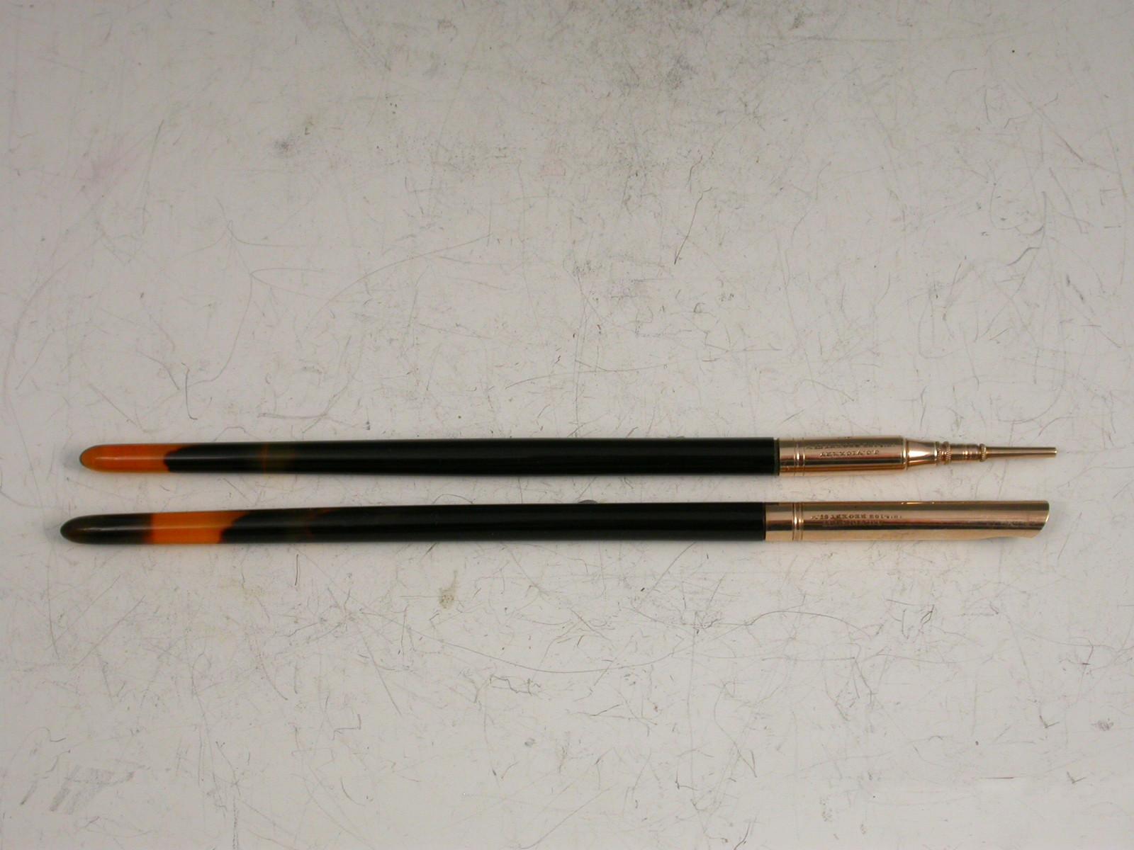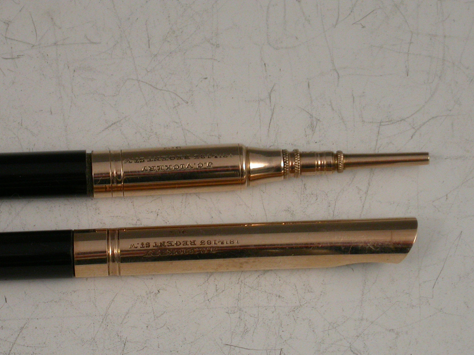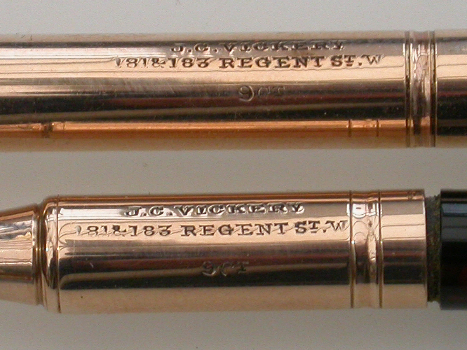 Pair Victorian Cased 9 carat Gold Dip Pen & Propelling Pencil