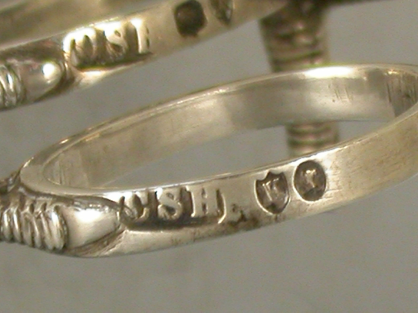 A pair of Victorian cast silver Ribbon Threaders standing on a four claw foot.