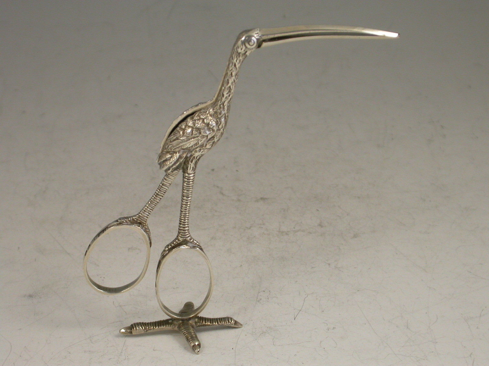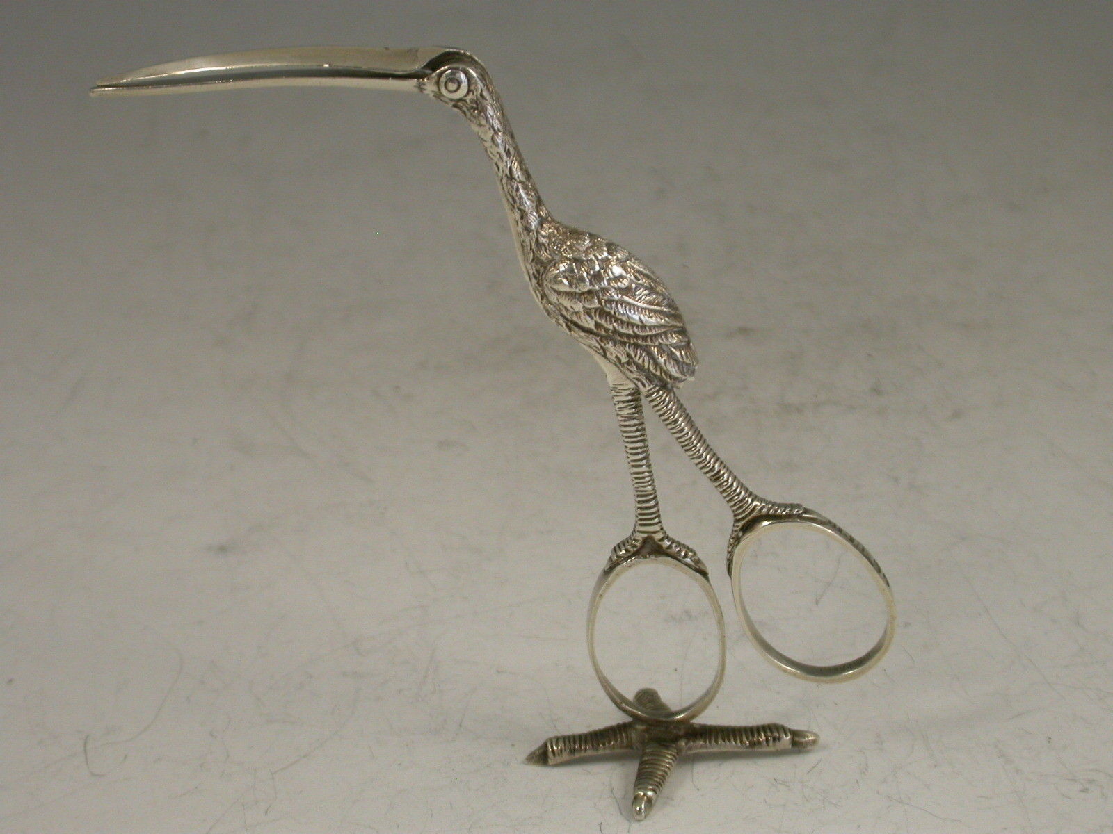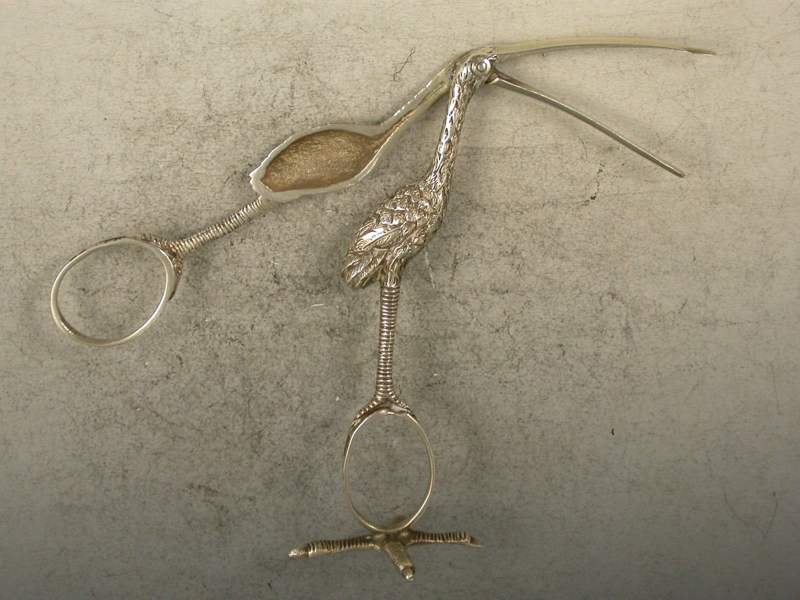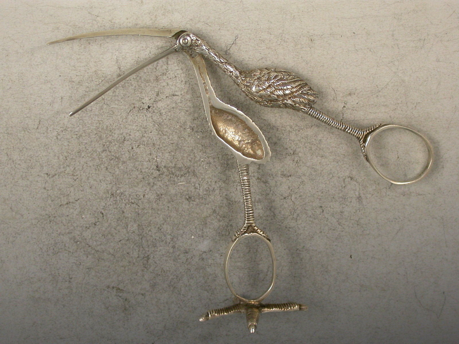 Pair Victorian Cast Antique Silver Stork Ribbon Threaders
