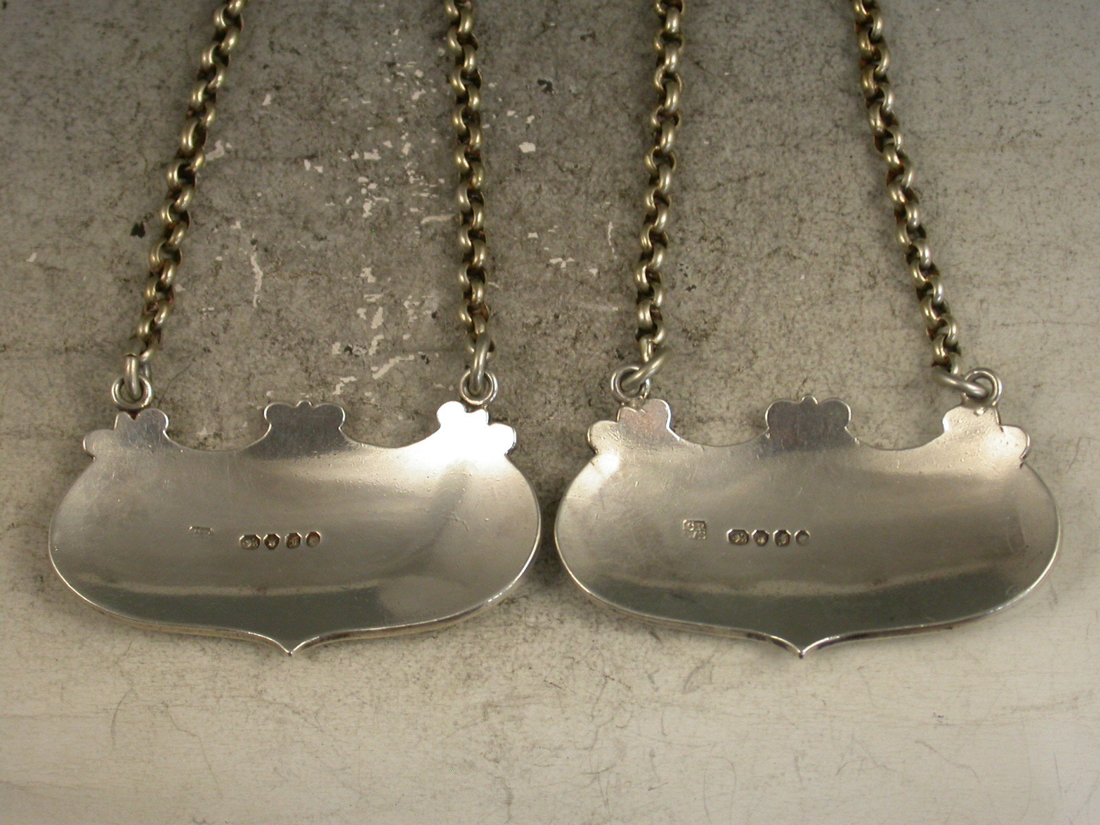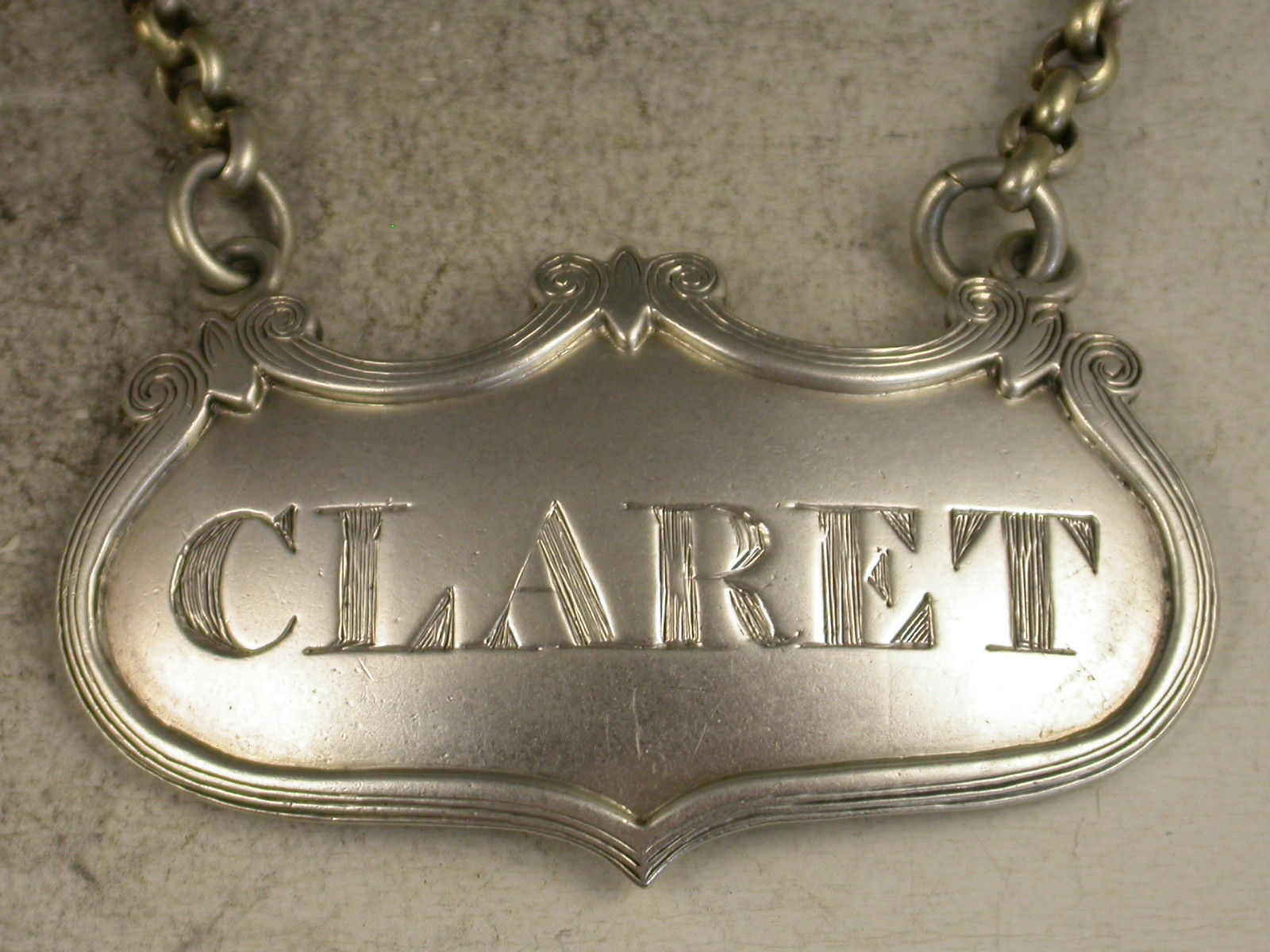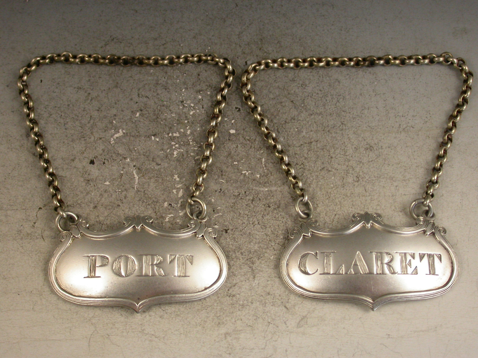 Pair Victorian Elongated Escutcheon Wine Labels 'Claret & Port'
