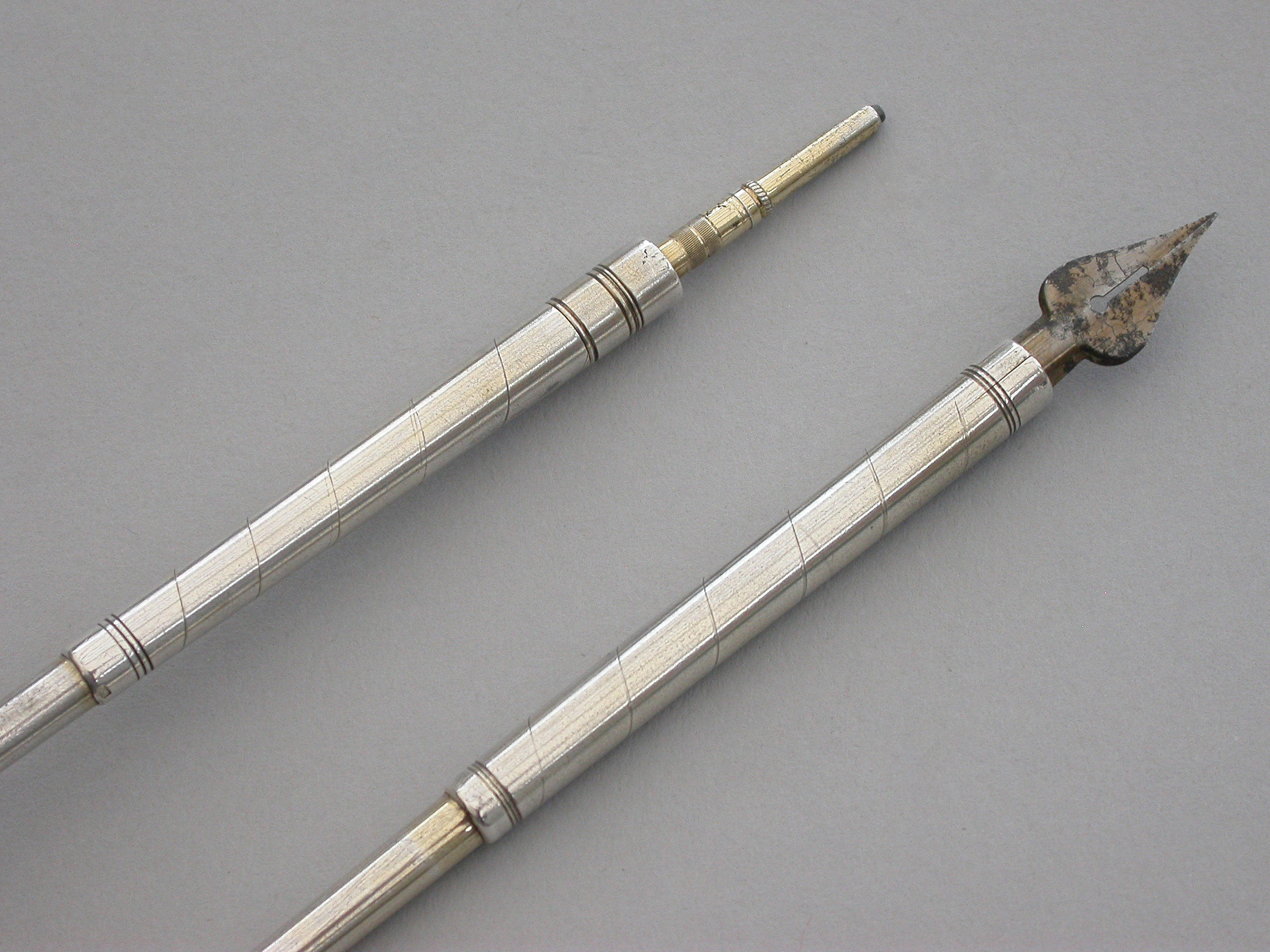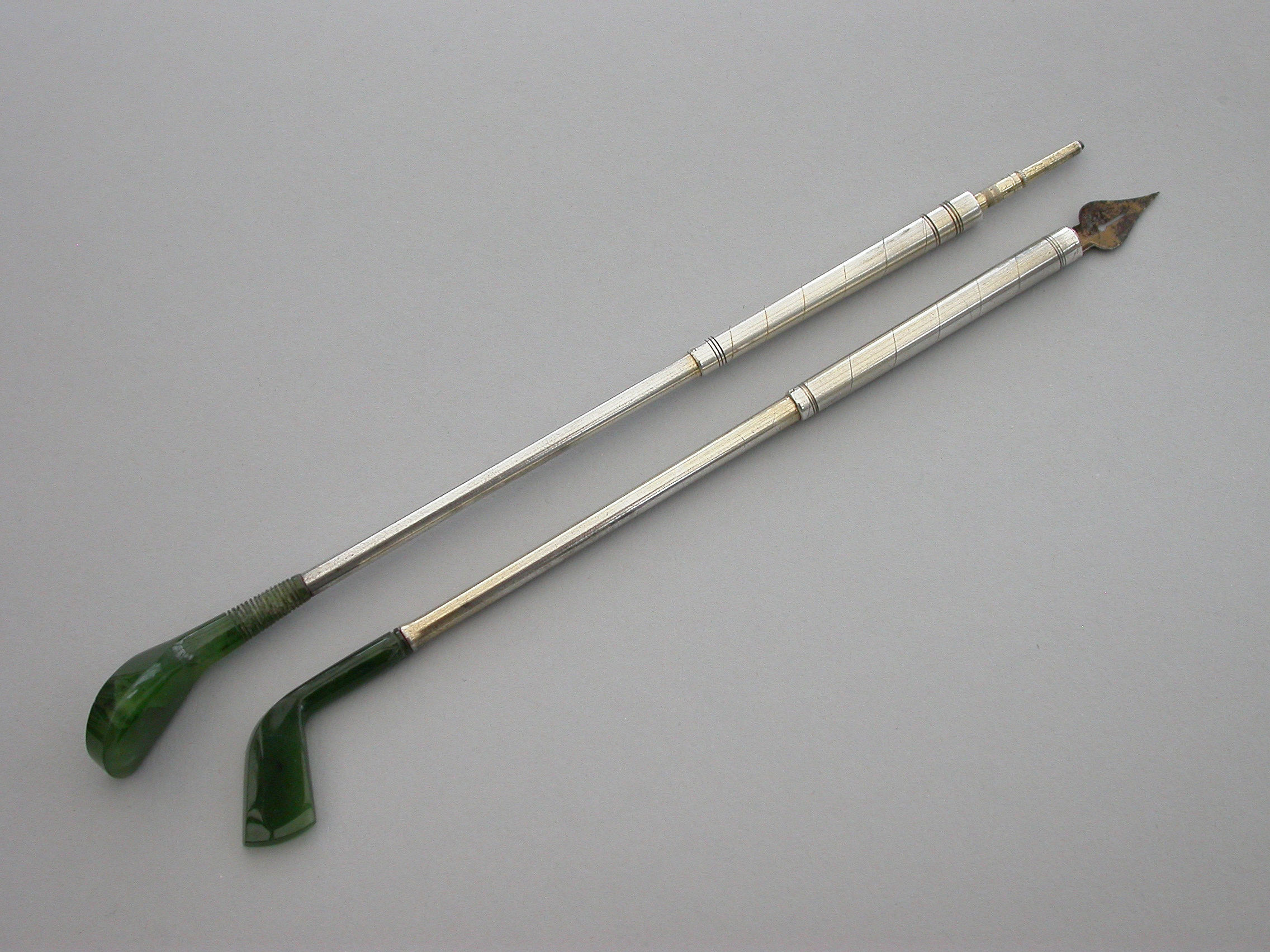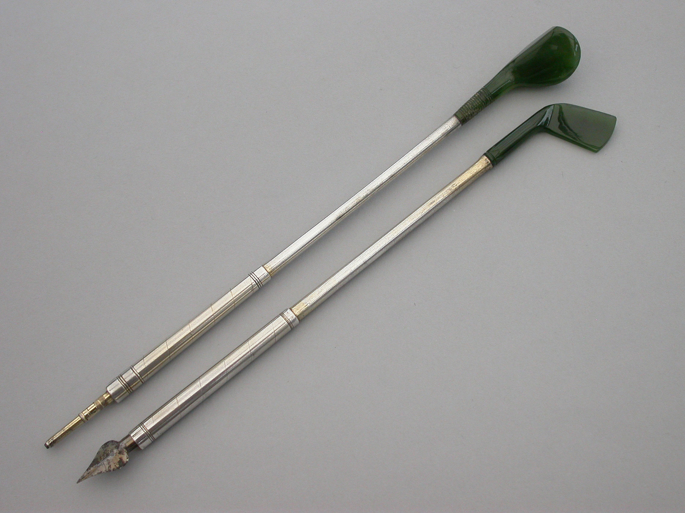 Pair Victorian Novelty Silver & Nephrite Golf Club Propelling Pencil & Dip Pen
