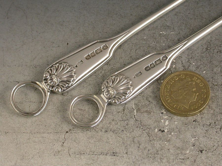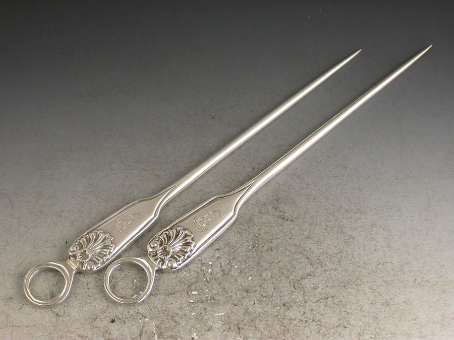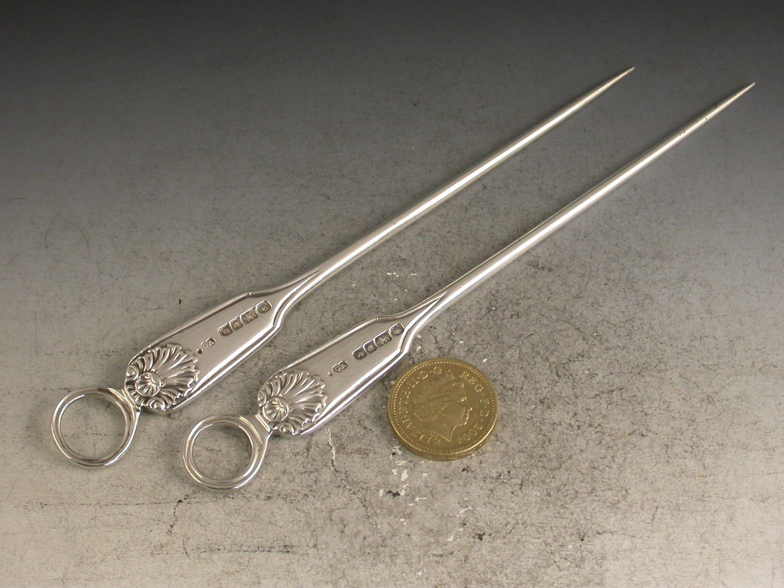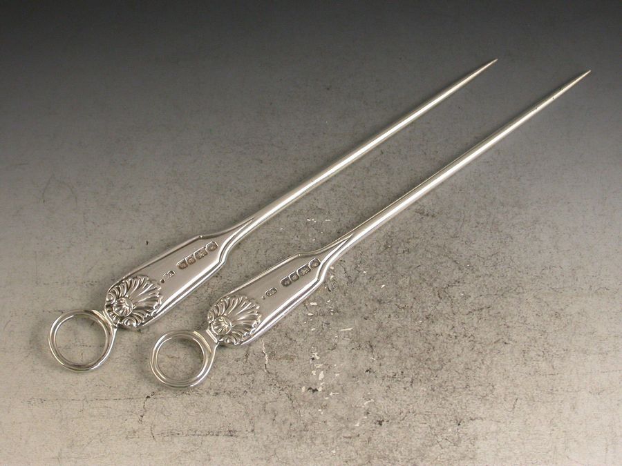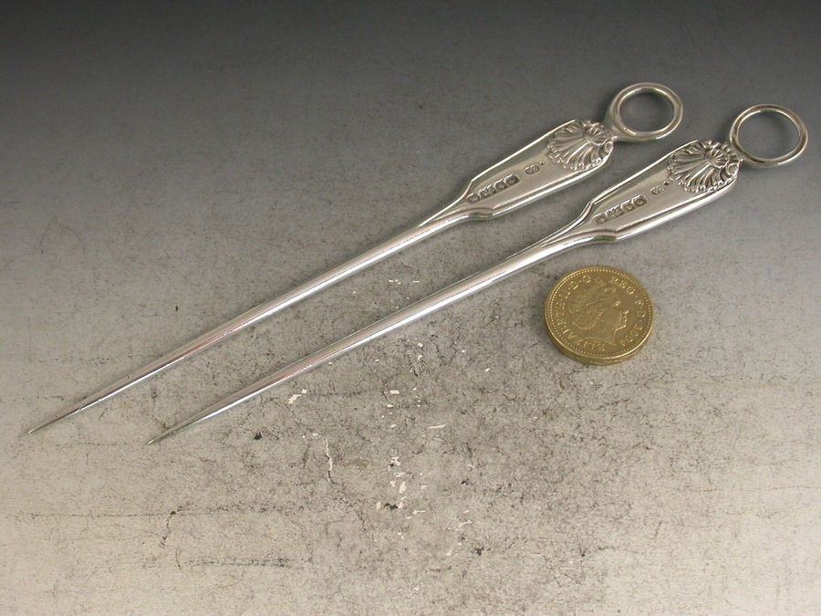 Pair Victorian Silver Fiddle Thread & Husk Pattern Poultry Skewers