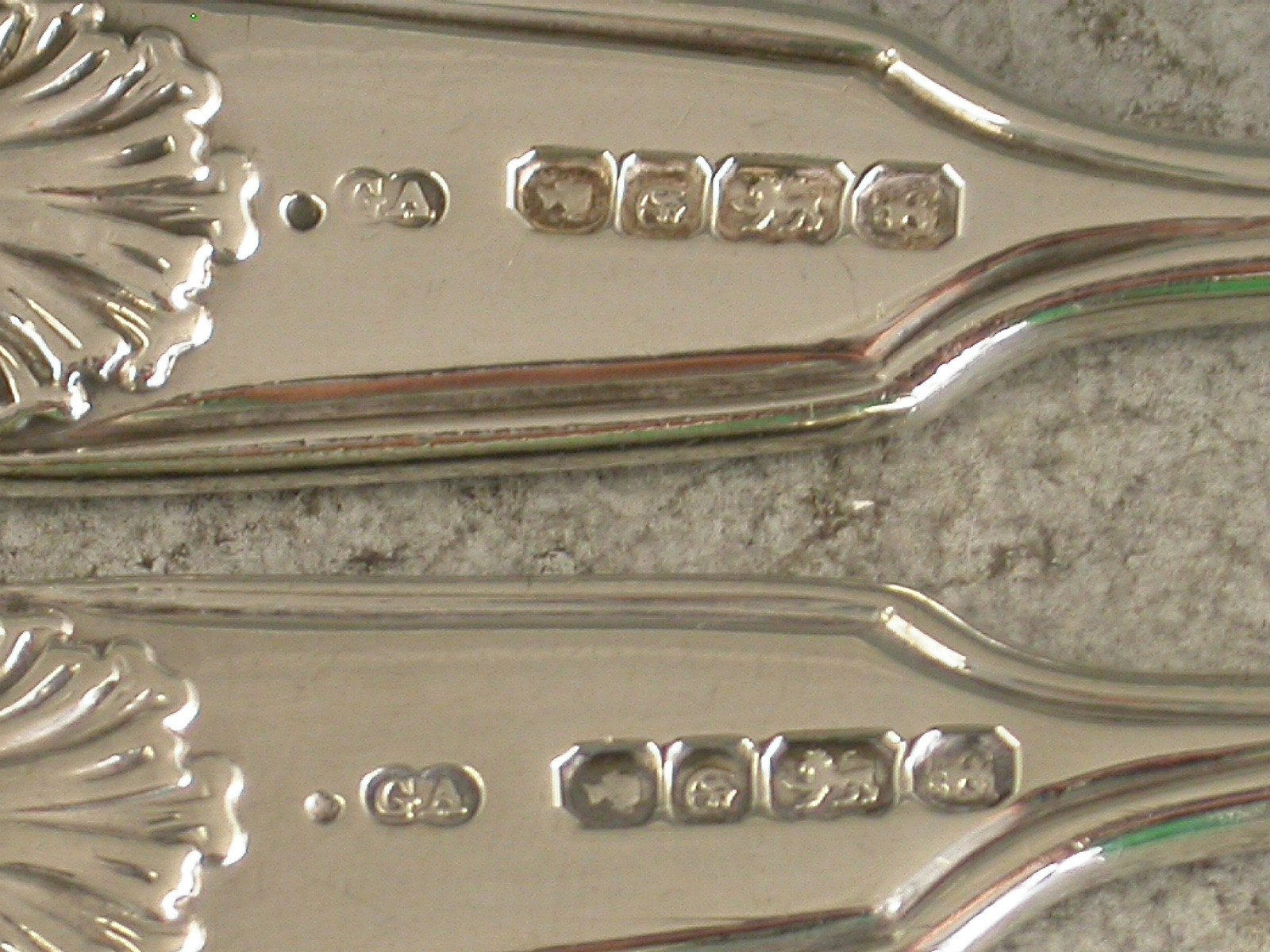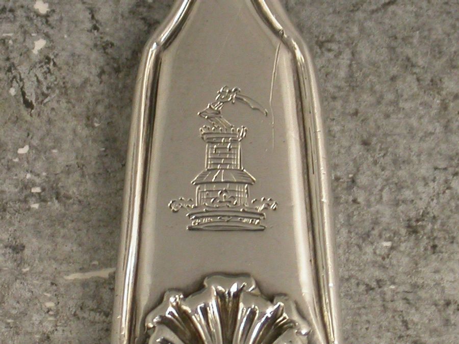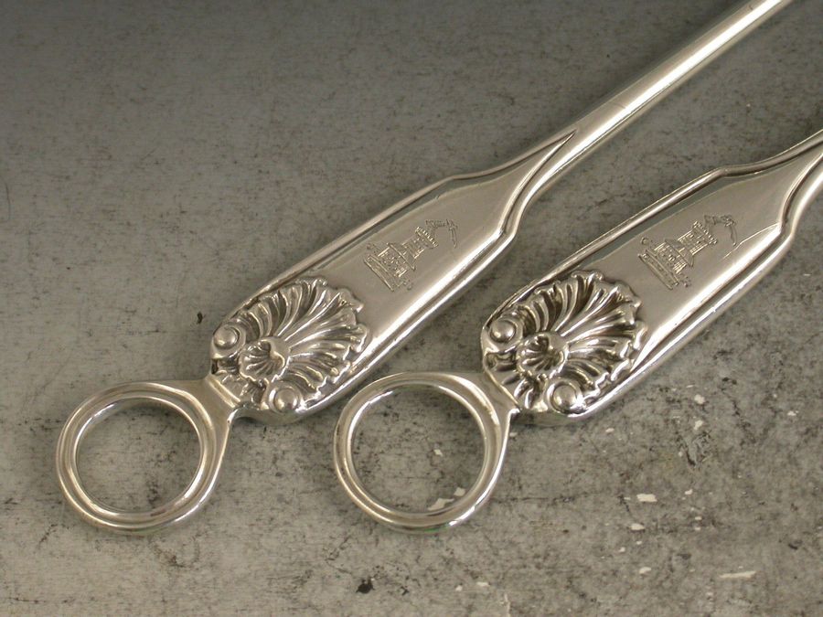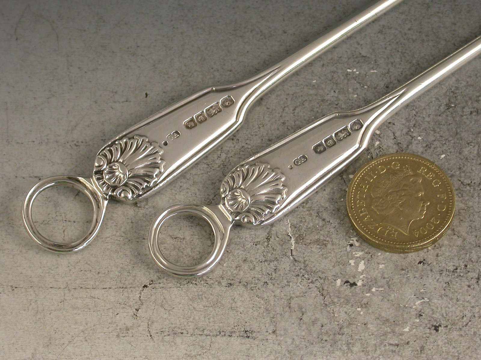 A fine and unusual pair of Victorian silver Poultry Skewers in fiddle thread and husk pattern with reeded ring terminals, the handles engraved with a crest, possibly for Coghlan.