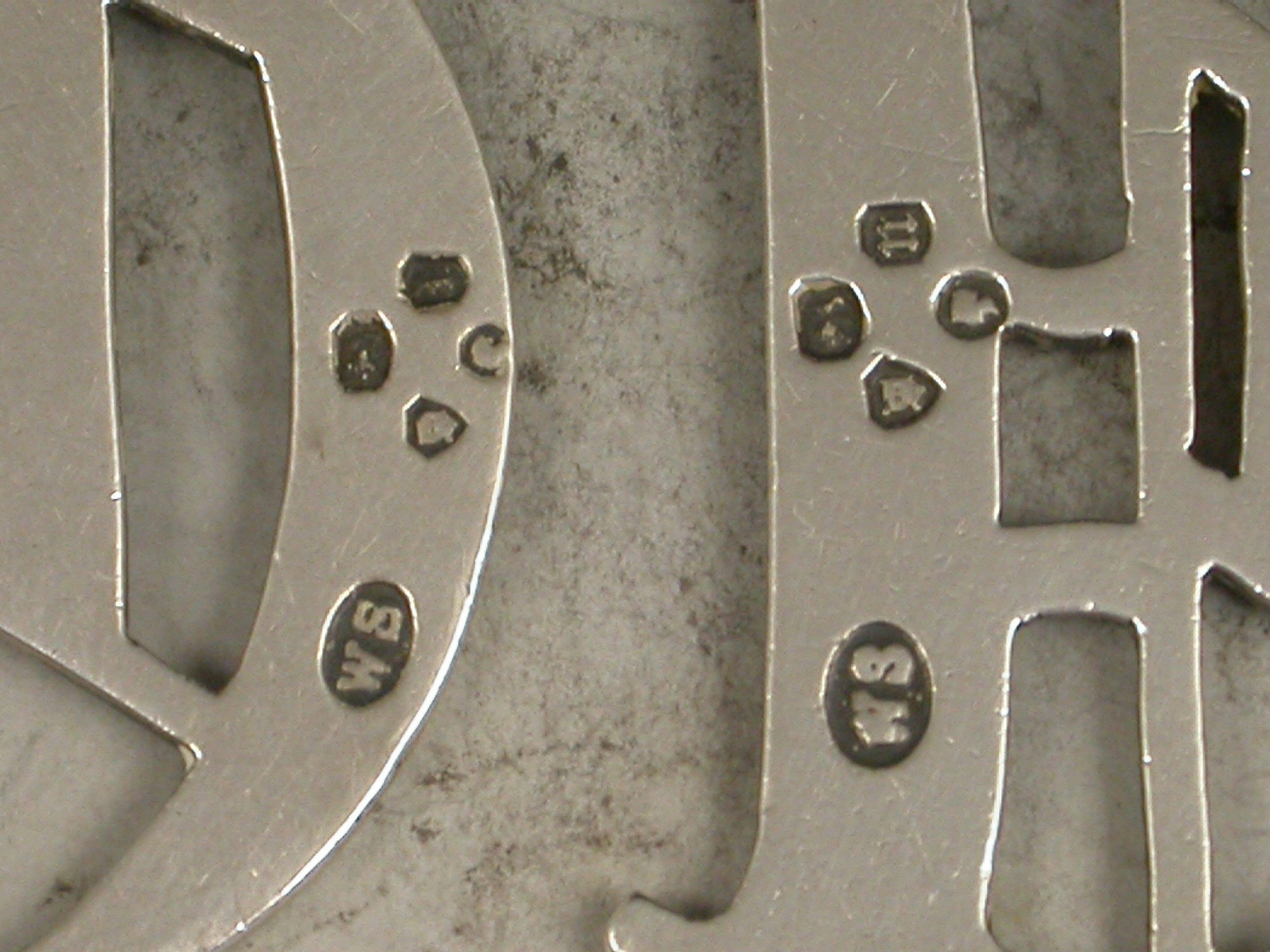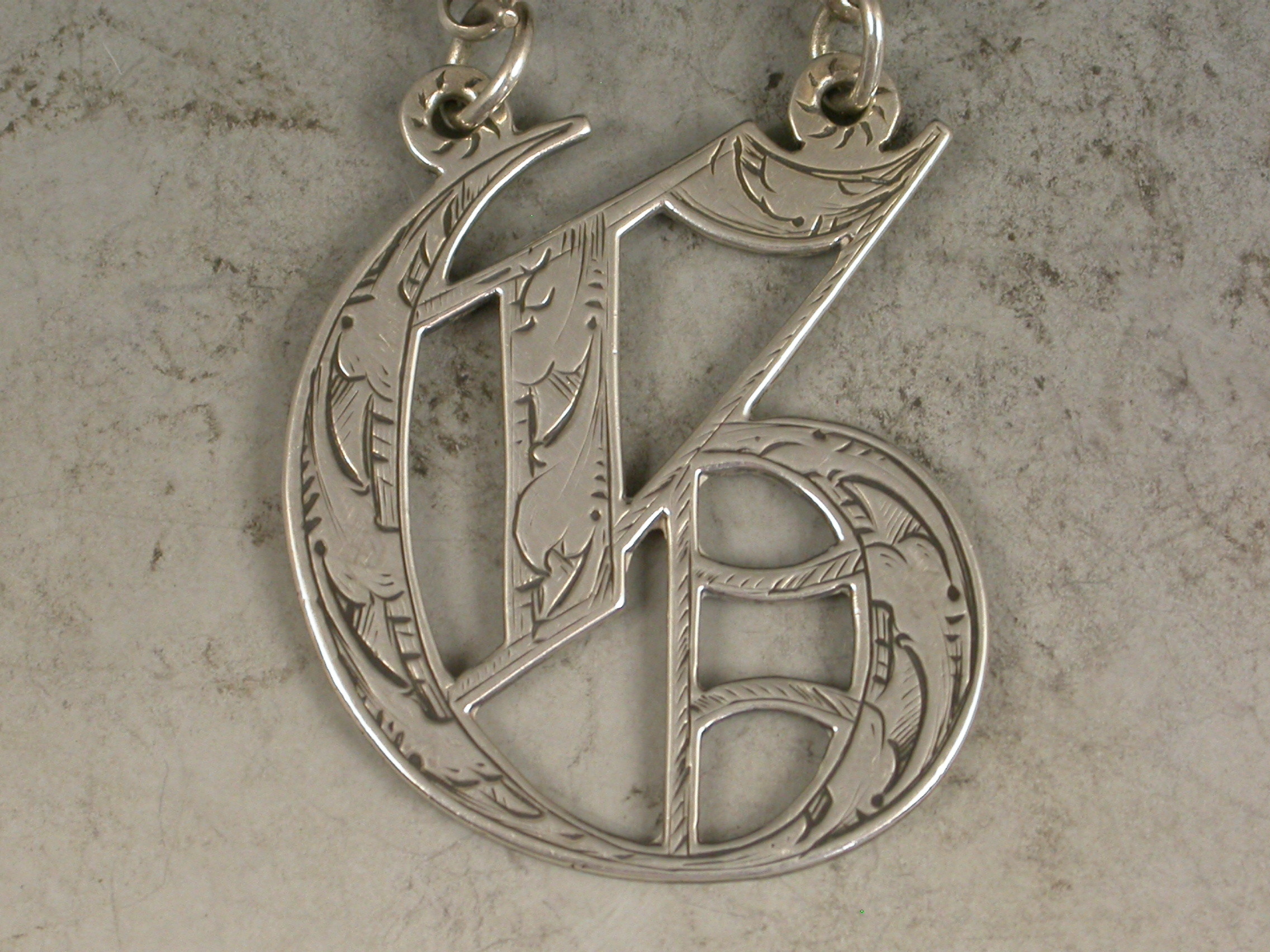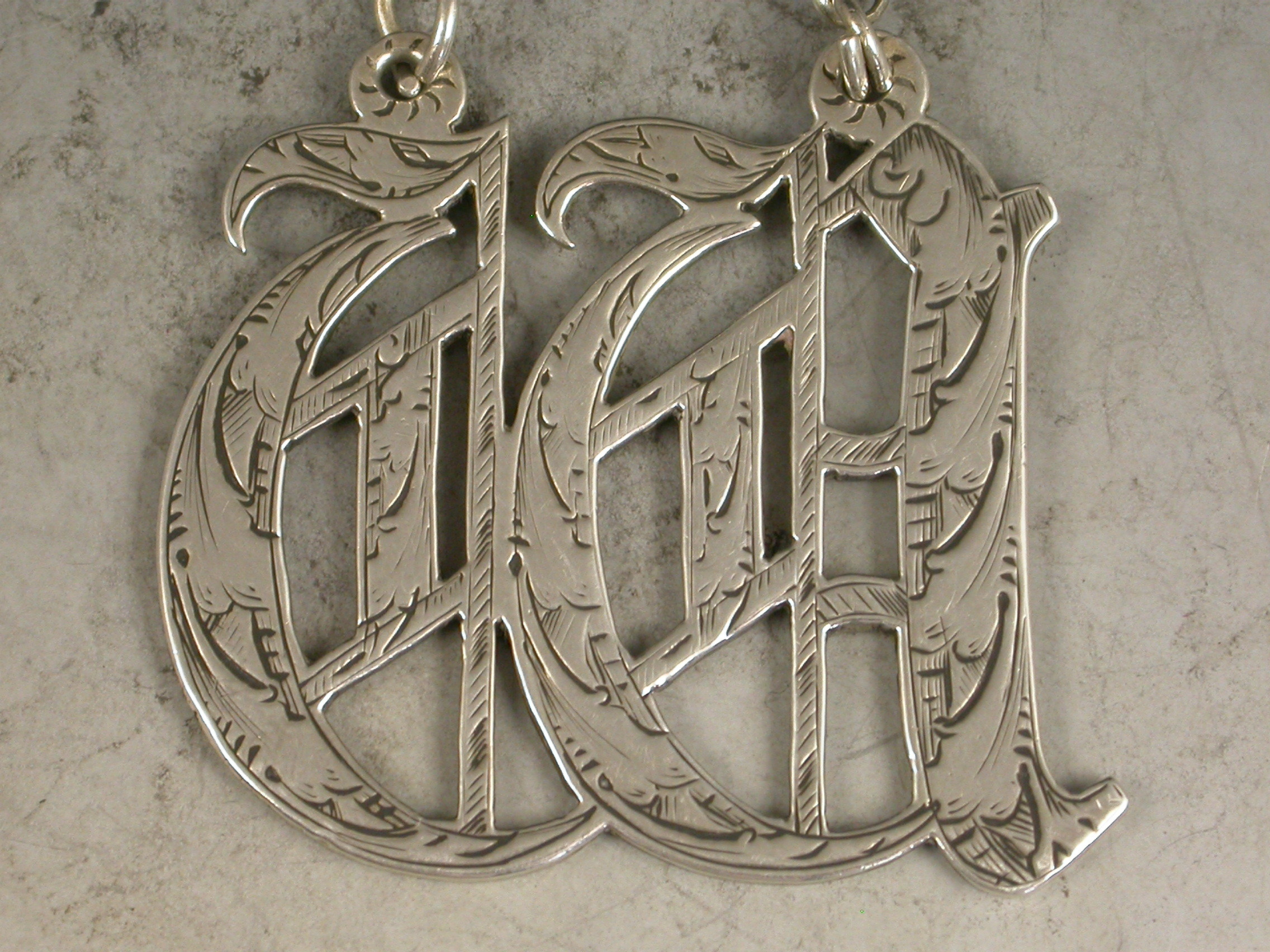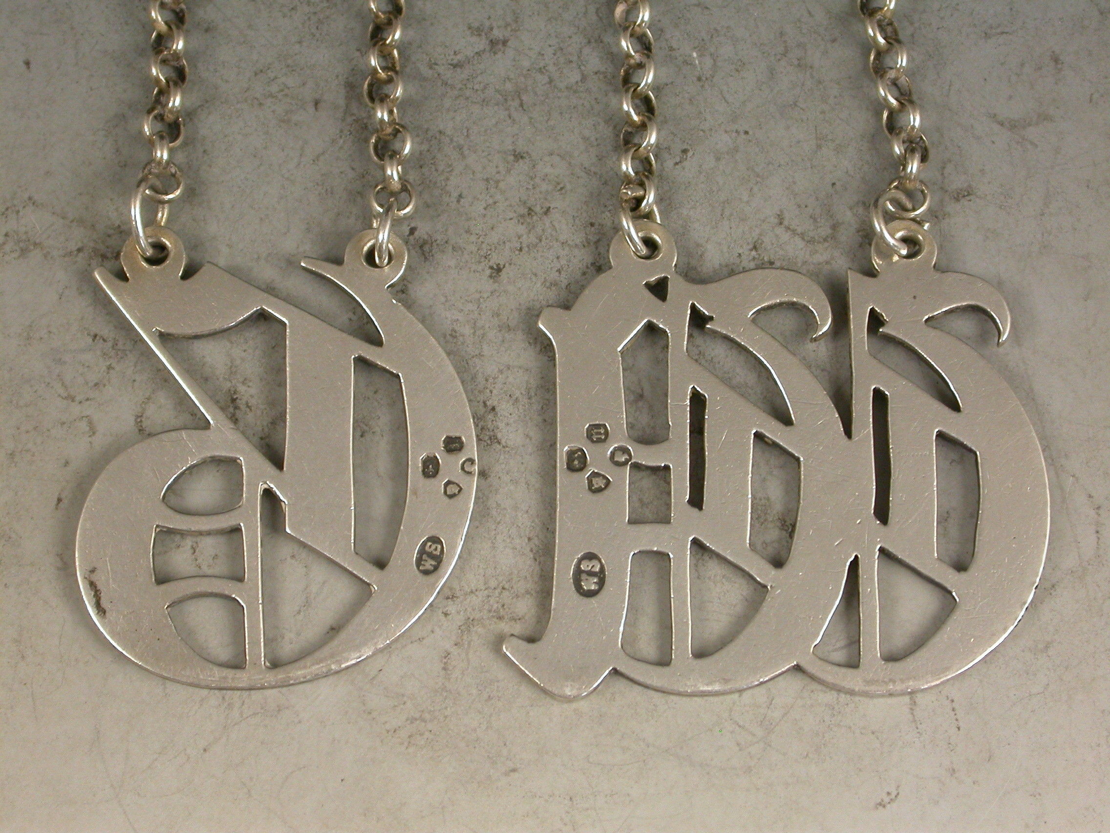 Pair Victorian Silver Gothic Capital Letter Wine Labels 'G & W'